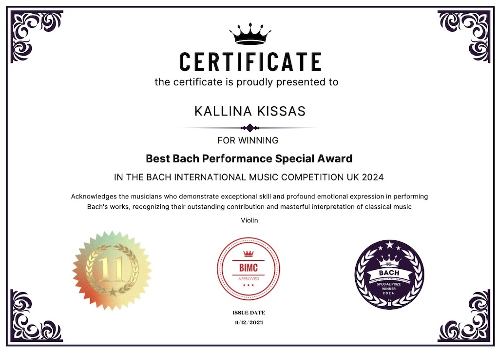 Nagroda Specjalna Best Bach Performance Special Award - Bach International Music Competition UK 2024
