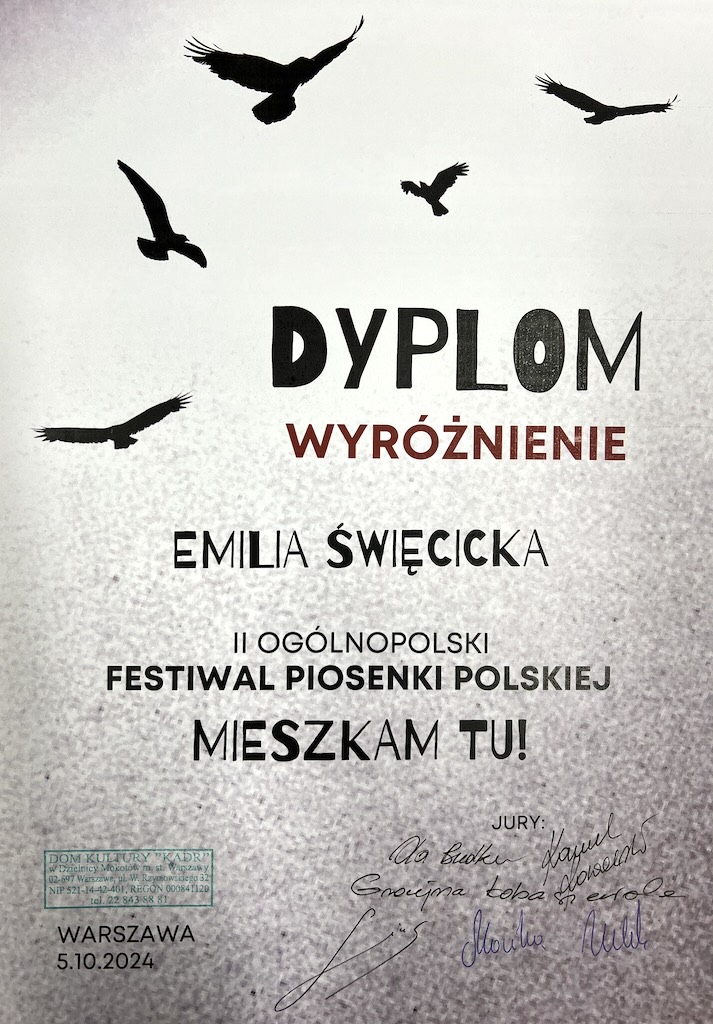 Wyróżnienie - II Ogólnopolski Festiwal Piosenki Polskiej „Mieszkam tu”
