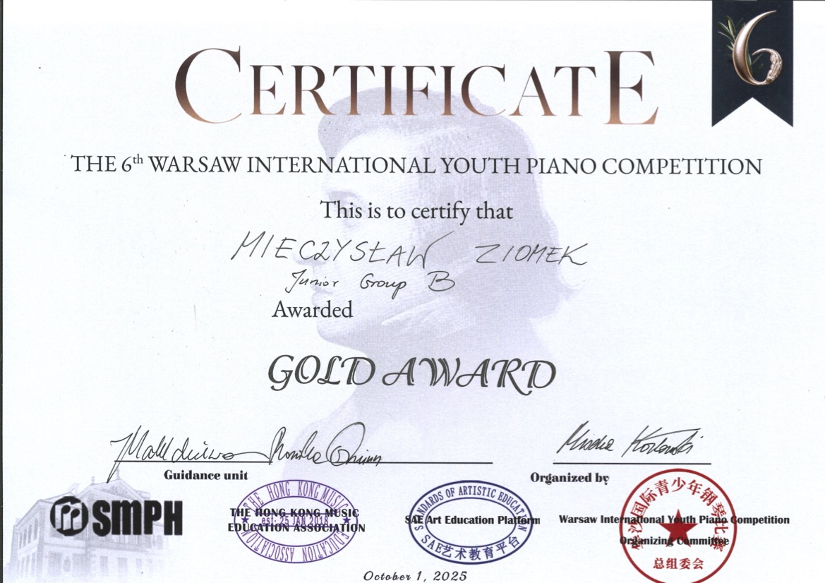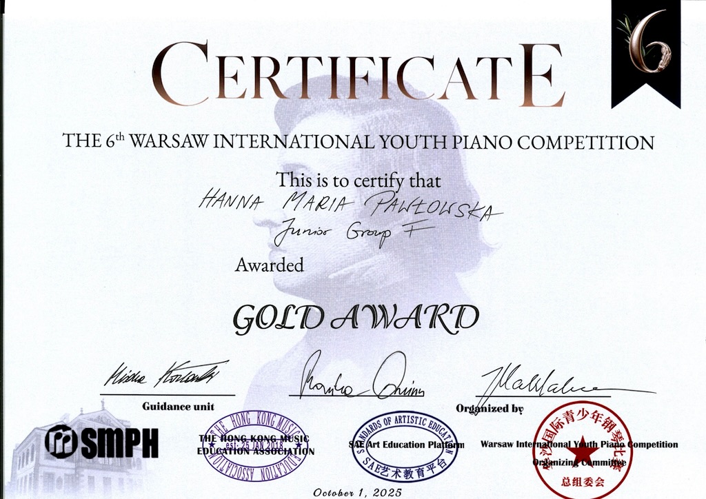 I Nagroda /grupa Junior F/- The 6th International Youth Piano Competition