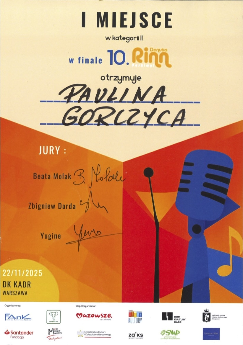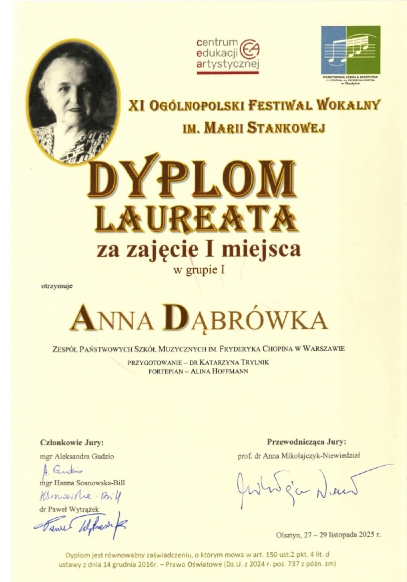 I miejsce w grupie I - XI Ogólnopolski Festiwal Wokalny im. Marii Stankowej