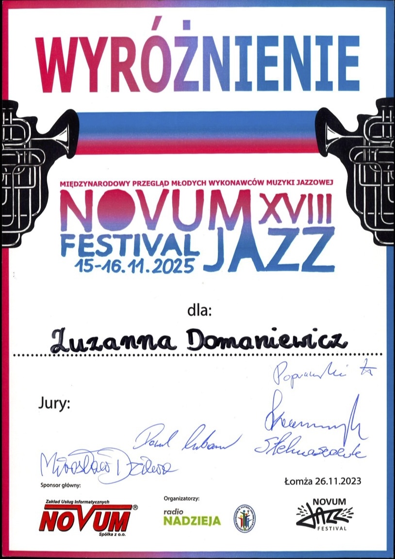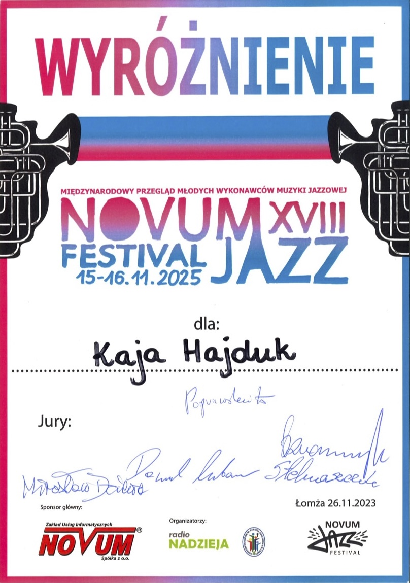 wyróżnienie - XVIII Novum Jazz Festiwal Międzynarodowy Przegląd Młodych Wykonawców Muzyki Jazzowej