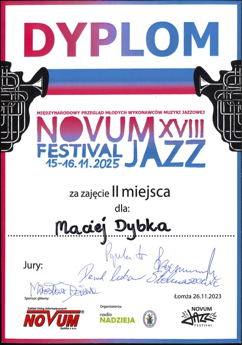 II miejsce - XVIII Novum Jazz Festiwal Międzynarodowy Przegląd Młodych Wykonawców Muzyki Jazzowej