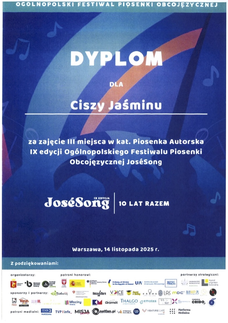 III miejsce z zespołem "Cisza Jaśminu" - IX edycja Ogólnopolskiego Festiwalu Piosenki Obcojęzycznej JoseSong