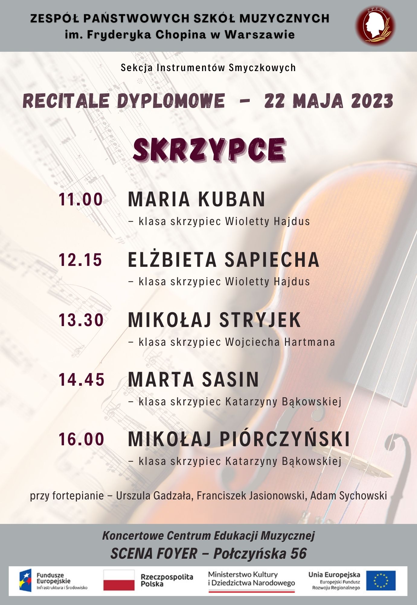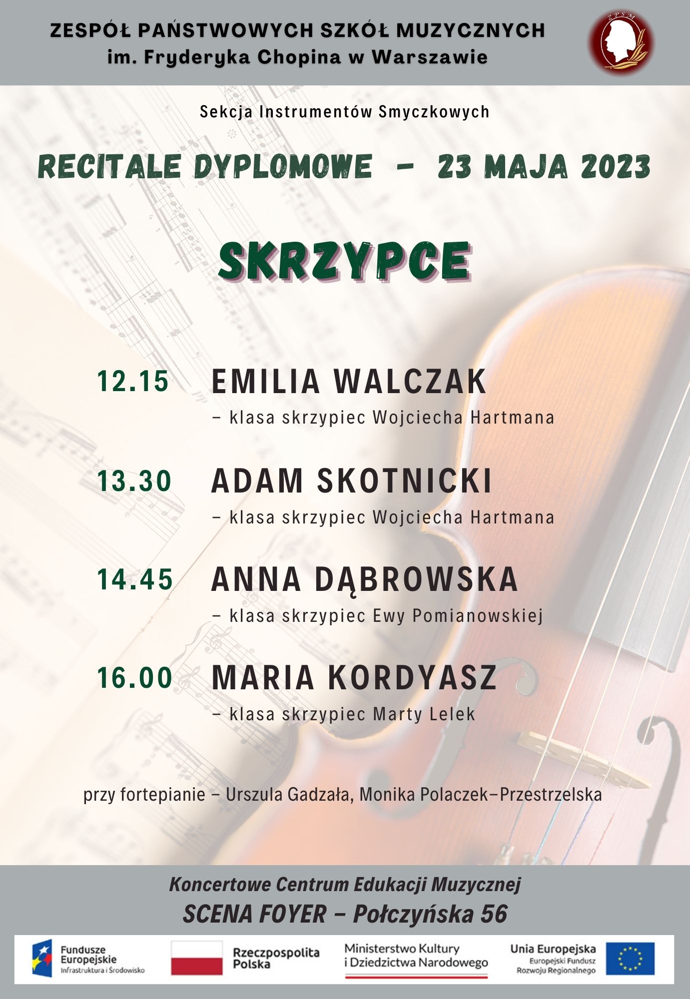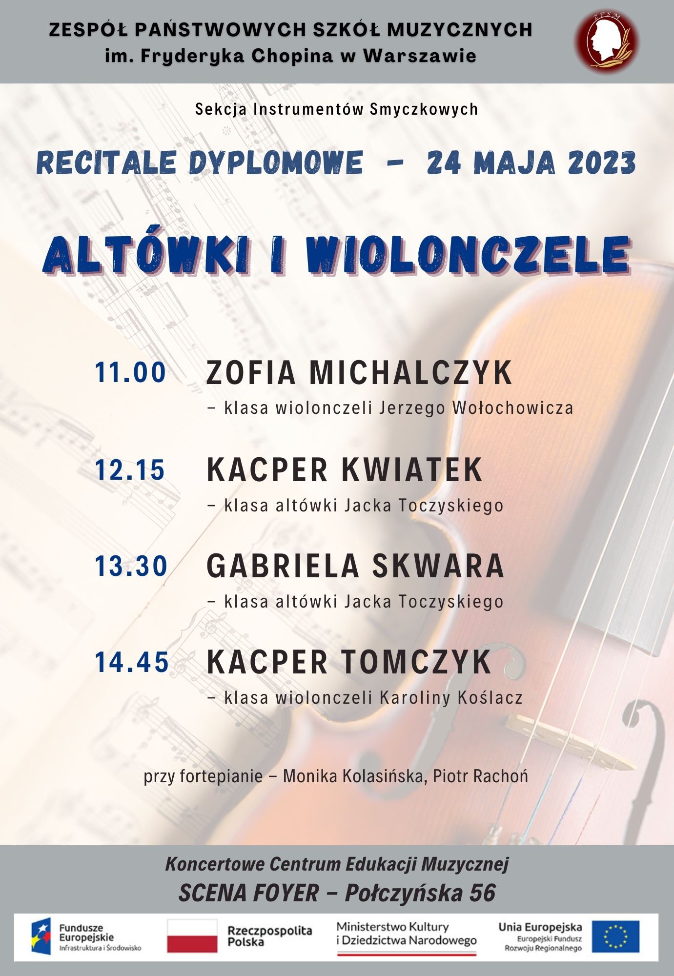 Sekcja Instrumentów Smyczkowych - dyplomy - 22, 23 i 24 maja 2023 r.