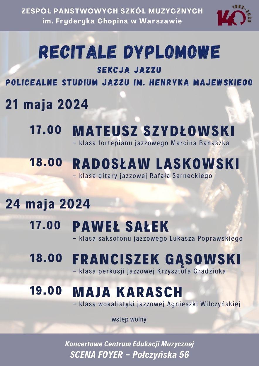 Sekcja Jazzu, Policealne Studium Jazzu - dyplomy - 20, 21 i 24 maja 2024 r.