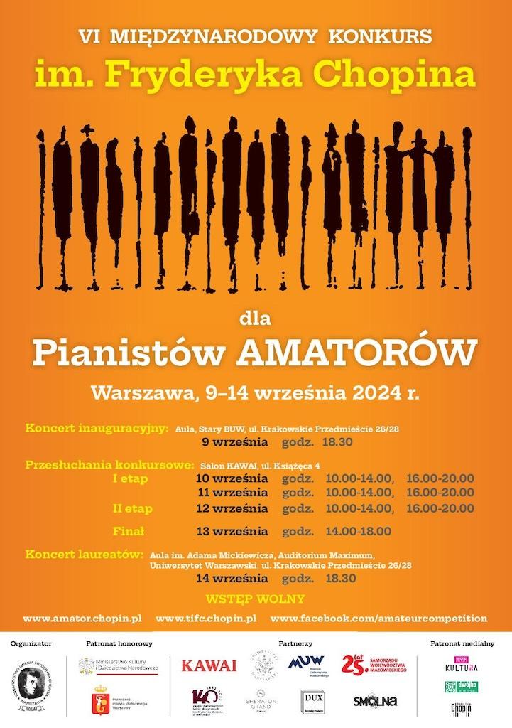 W dniach 9–14 września 2024 r. odbędzie się w Warszawie VI Międzynarodowy Konkurs im. Fryderyka Chopina dla pianistów amatorów, którego organizatorem jest Towarzystwo im. Fryderyka Chopina w Warszawie.