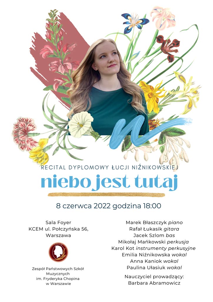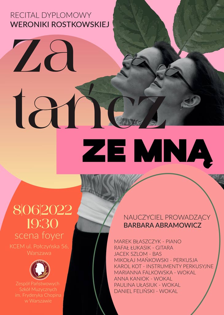Zapraszamy do sali koncertowej przy ul. Połczyńskiej 56 - Scena Foyer na recitale dyplomowe uczniów Sekcji Wokalno-Estradowej.