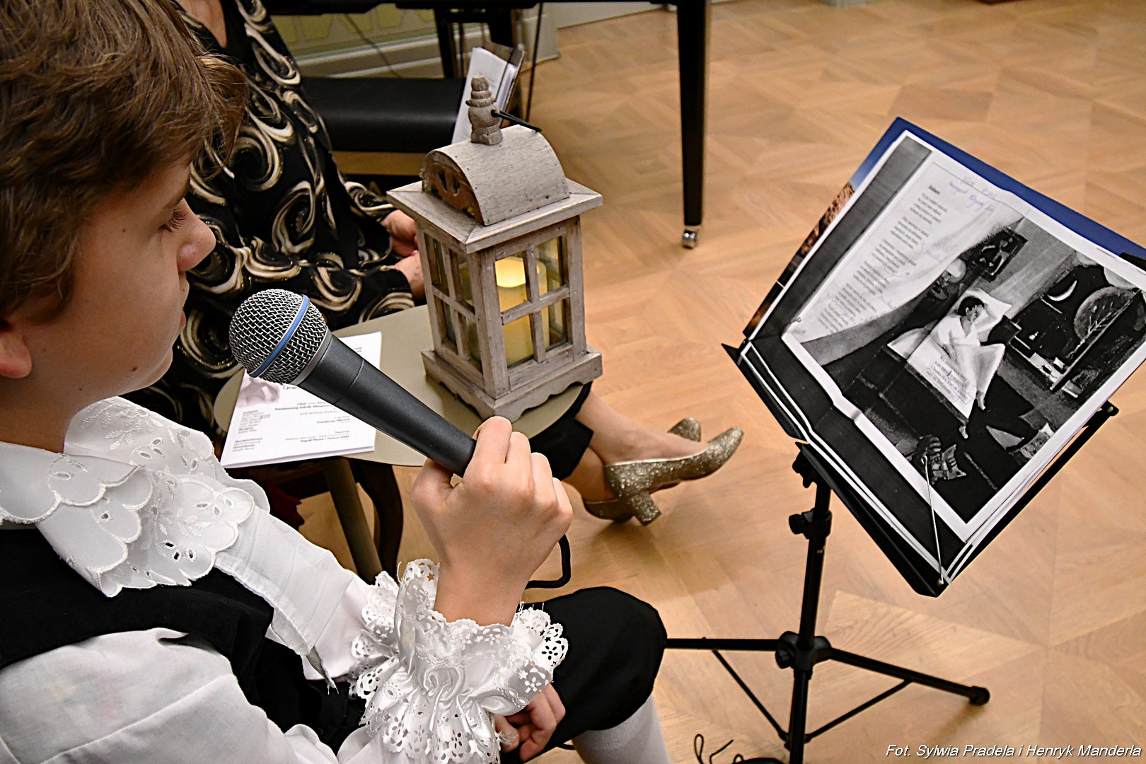 Koncert rozpoczął się w zupełnej ciemności, kiedy do pałacowej sali weszła postać ze starodawną latarenką – mały Chopin, w którego z wielkim wyczuciem wcielił się Igor Porada, uczeń PSM I st. w Żorach. Poszczególne części muzycznego misterium przeplatały dźwięki utworów Chopina w wykonaniu pianistów Zespołu Państwowych Szkół Muzycznych w Żorach.