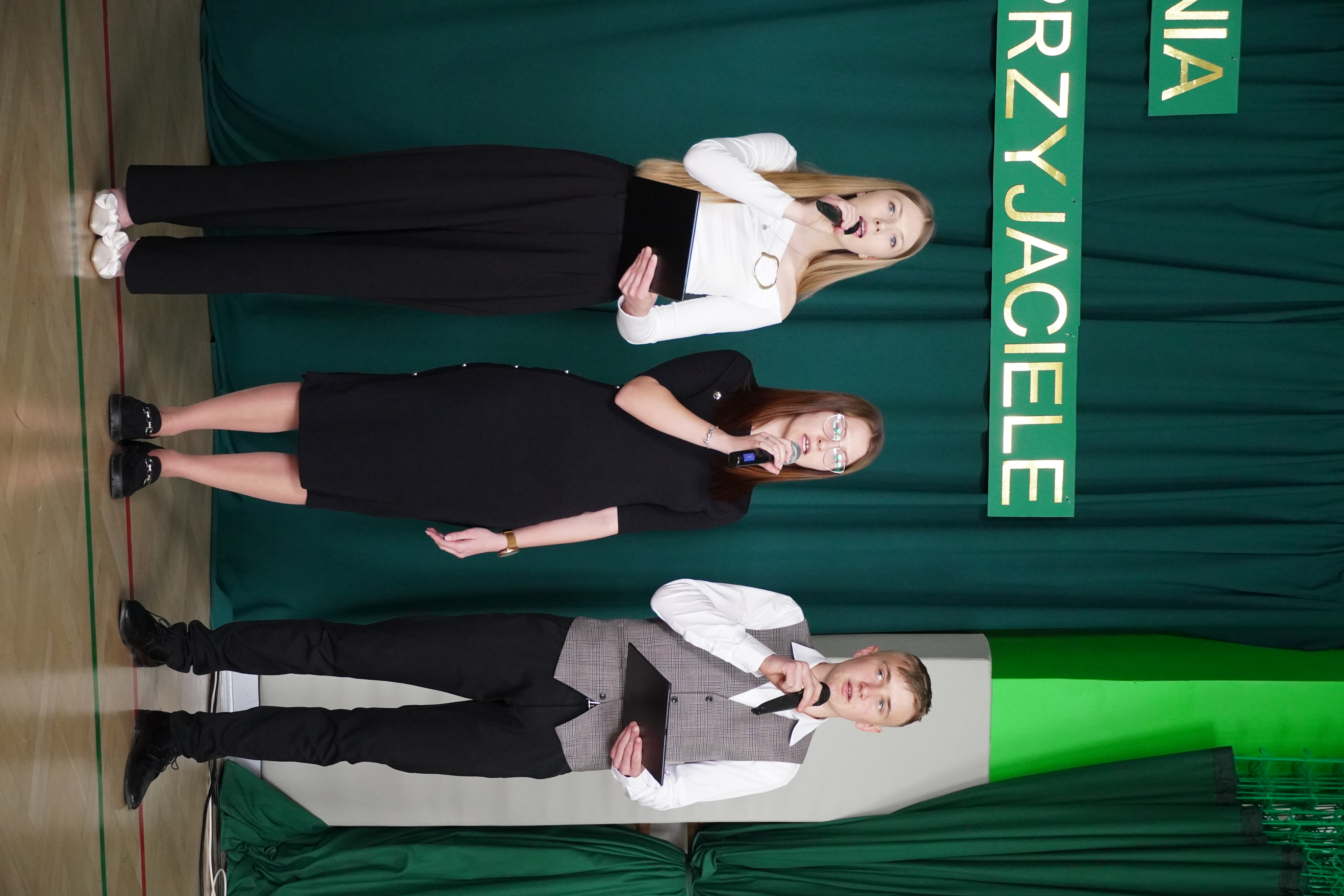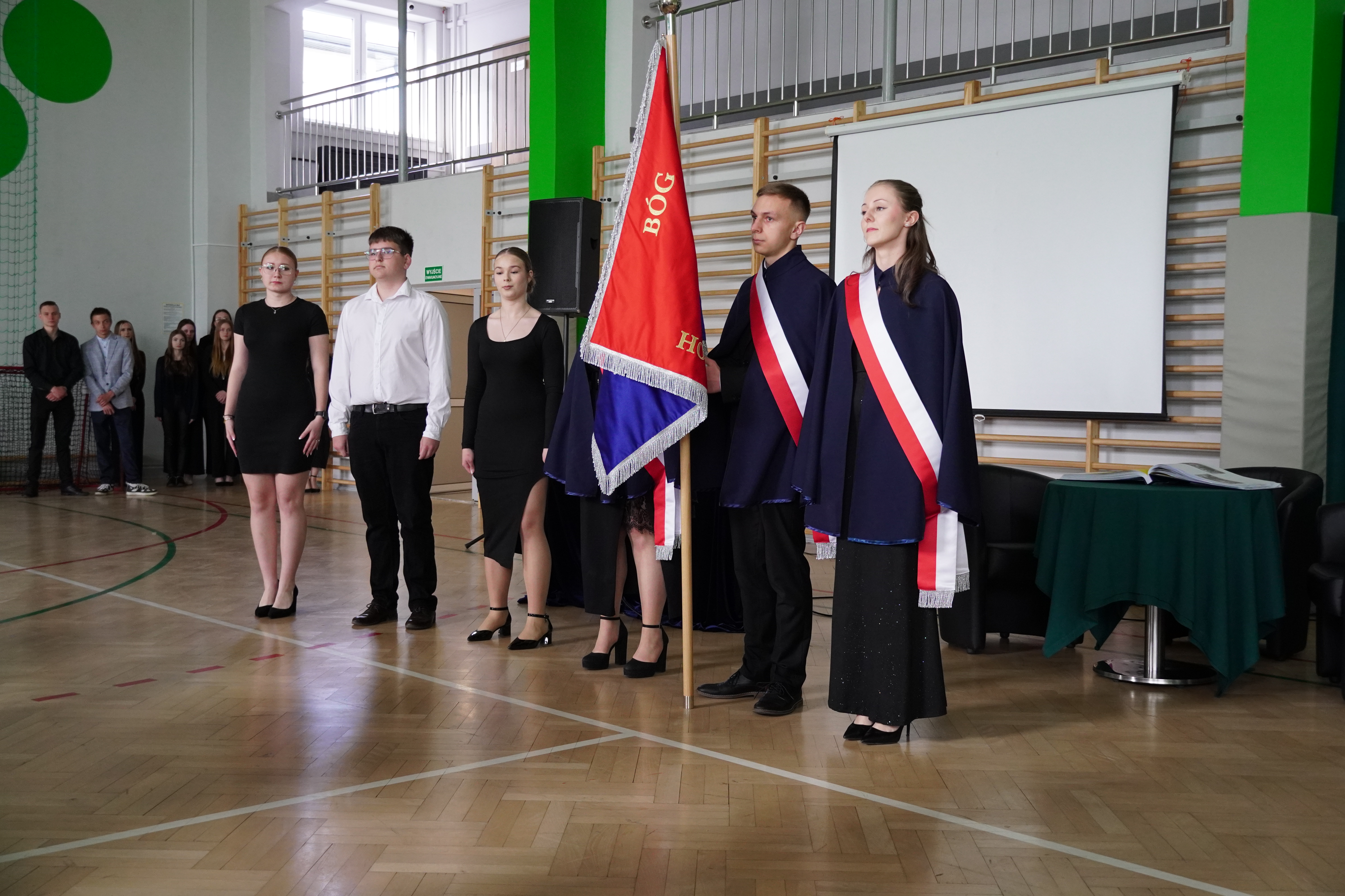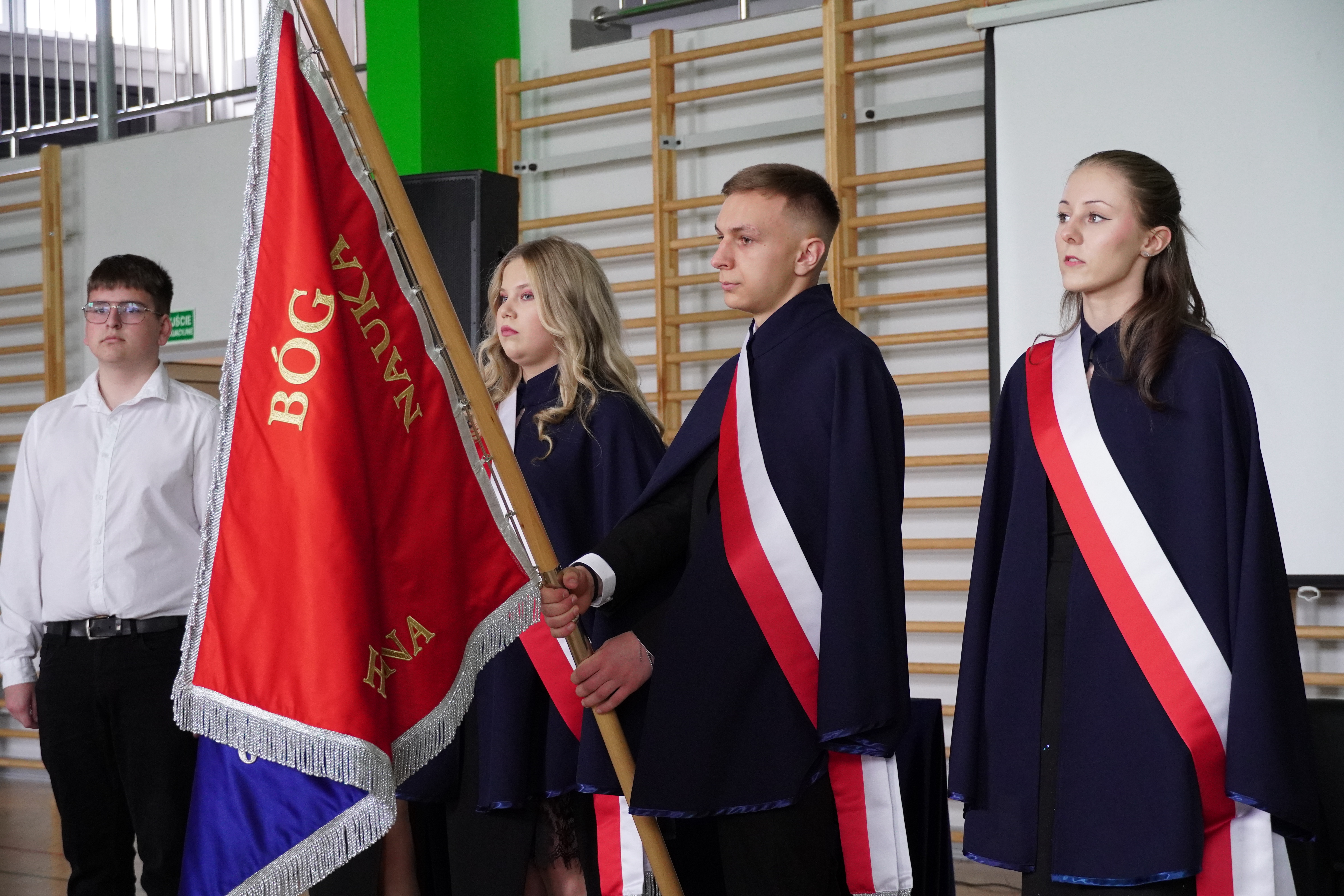Akademia rozpoczęła się podniosłym odśpiewaniem hymnu szkoły, które nadało wydarzeniu uroczysty charakter i wprowadziło wszystkich zgromadzonych w atmosferę refleksji i dumy. Następnie odbyło się symboliczne przekazanie sztandaru szkoły uczniom klas programowo niższych – gest ten podkreślił ciągłość tradycji oraz odpowiedzialność kolejnych roczników za pielęgnowanie wartości szkolnej społeczności.