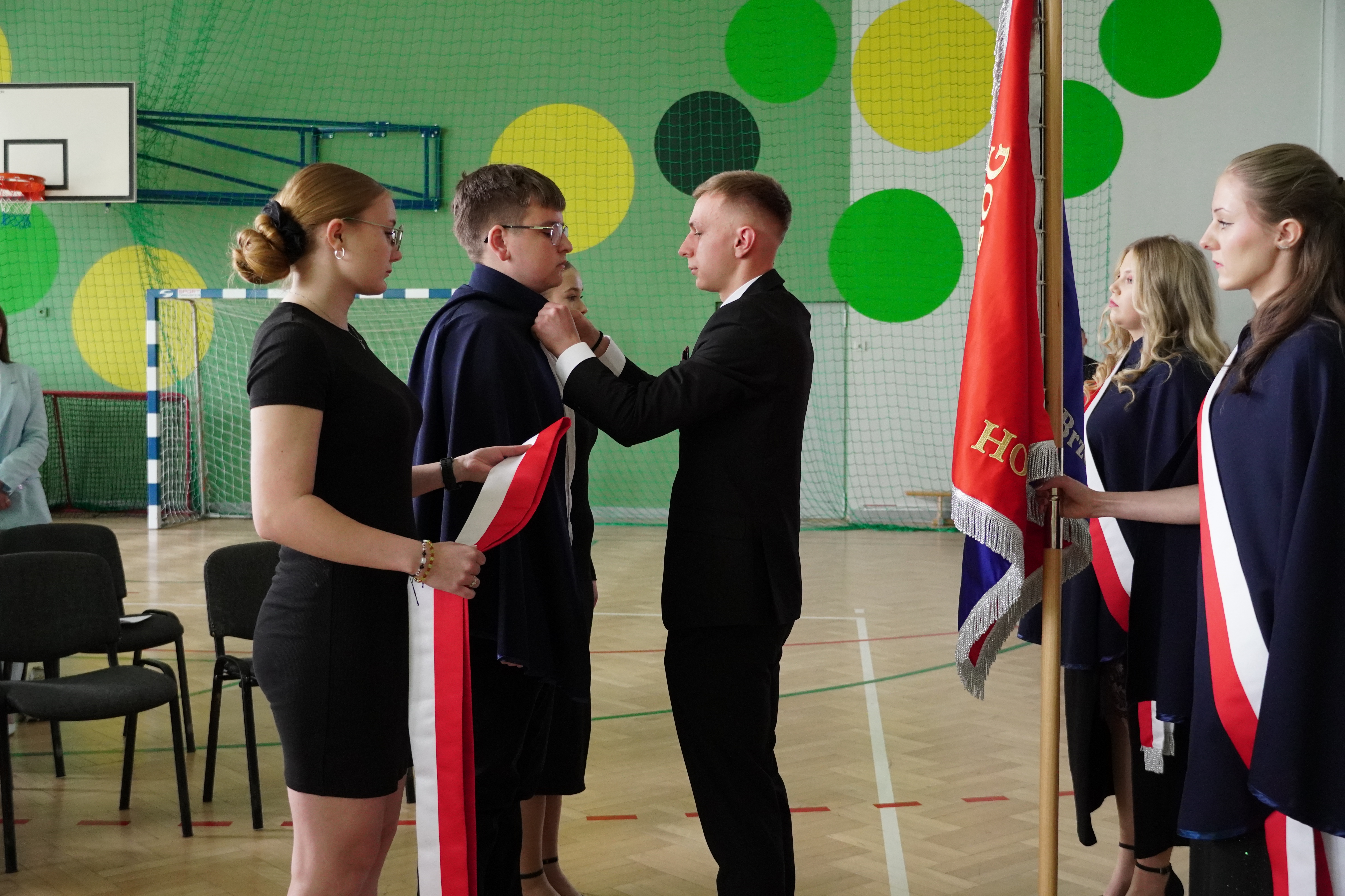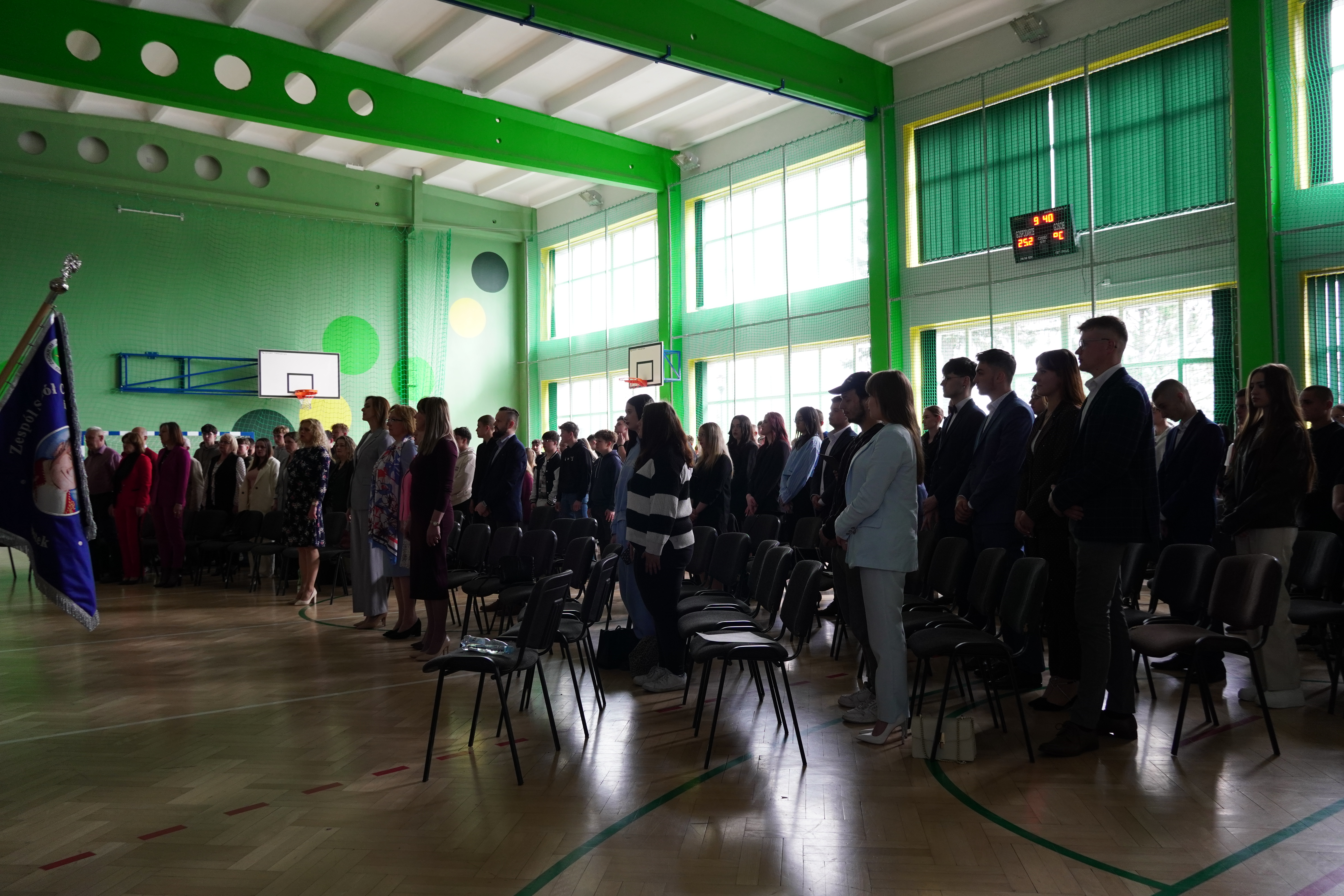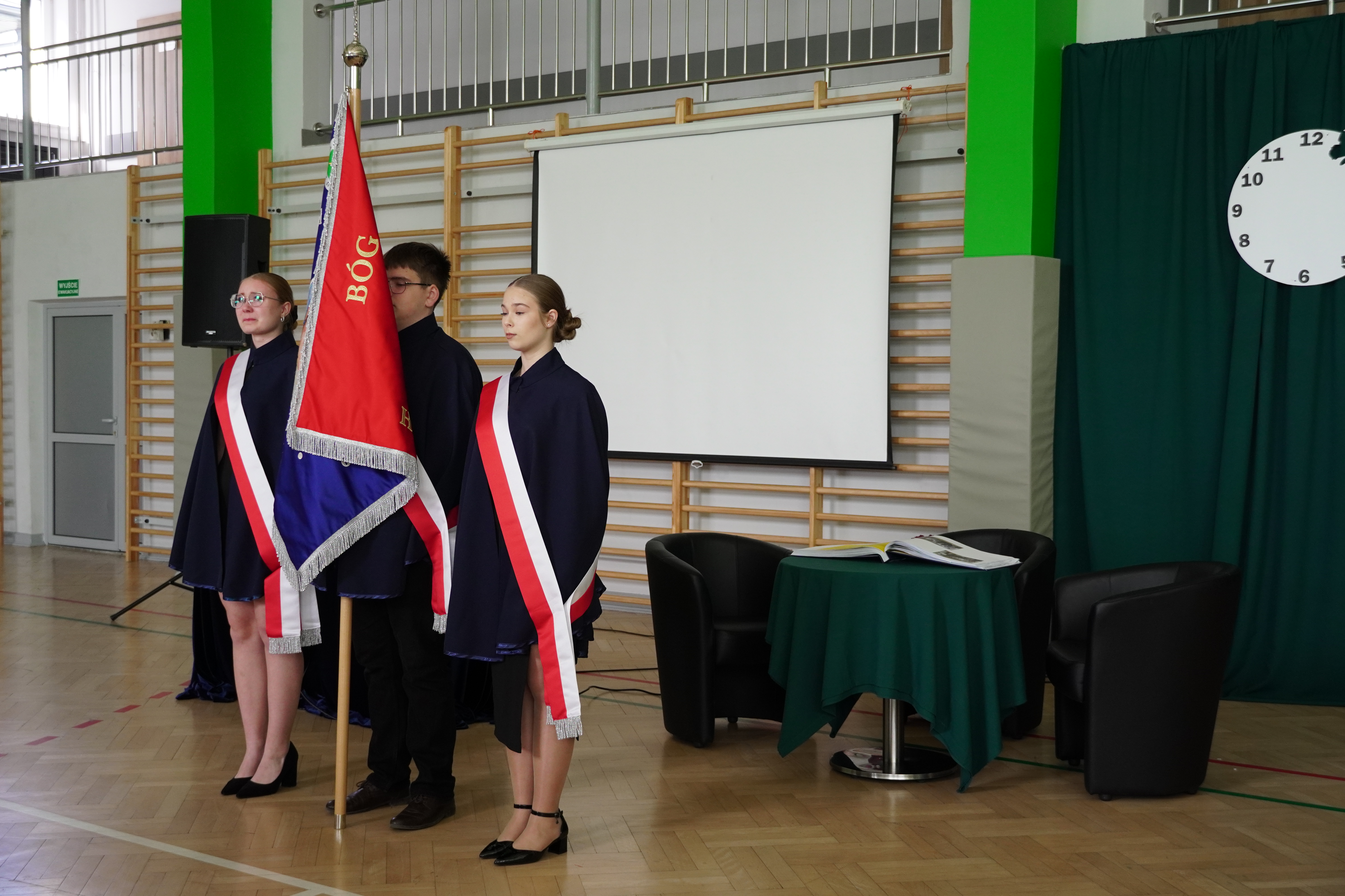 Akademia rozpoczęła się podniosłym odśpiewaniem hymnu szkoły, które nadało wydarzeniu uroczysty charakter i wprowadziło wszystkich zgromadzonych w atmosferę refleksji i dumy. Następnie odbyło się symboliczne przekazanie sztandaru szkoły uczniom klas programowo niższych – gest ten podkreślił ciągłość tradycji oraz odpowiedzialność kolejnych roczników za pielęgnowanie wartości szkolnej społeczności.
