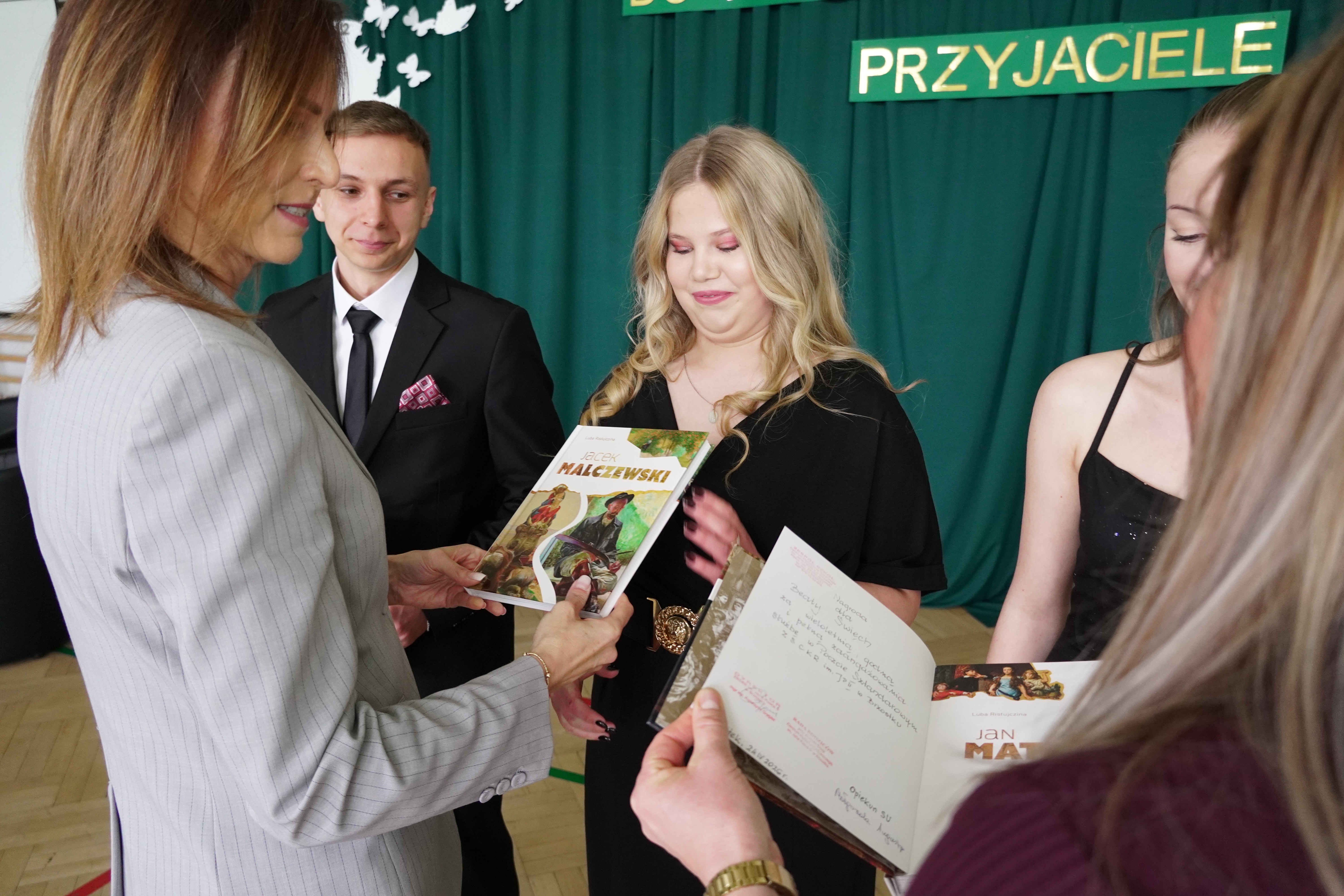 W dalszej części uroczystości nastąpiło wręczenie nagród uczniom, którzy przez pięć lat wyróżniali się nie tylko bardzo dobrymi wynikami w nauce, ale także aktywną działalnością na rzecz społeczności szkolnej. Był to moment szczególnego docenienia ich pracy, pasji i zaangażowania.