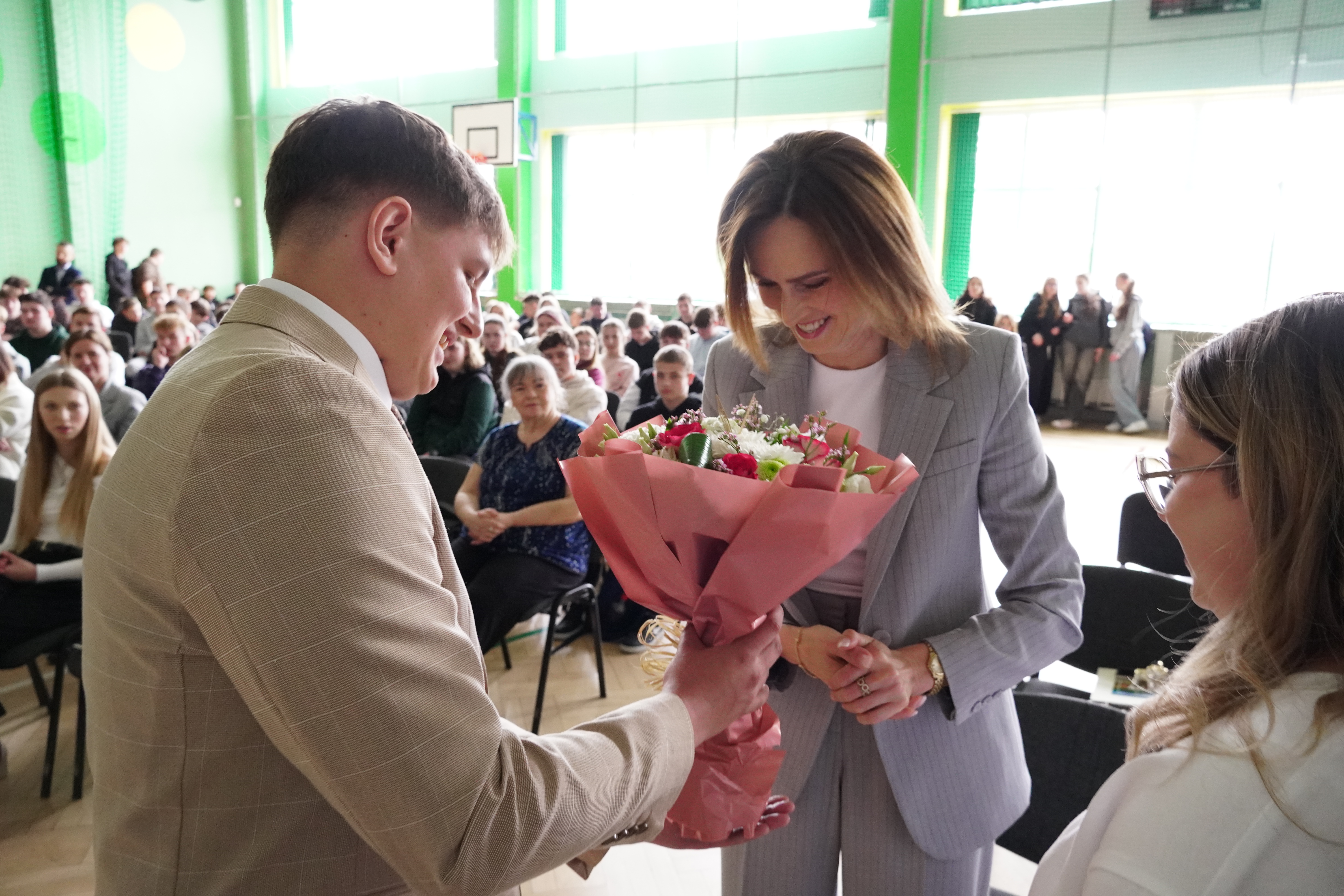 Kolejnym ważnym punktem uroczystości było wystąpienie Pani Dyrektor Katarzyny Grygiel, która skierowała do maturzystów ciepłe słowa uznania, dziękując im za trud oraz wkład w życie szkoły, a także życząc powodzenia na egzaminach maturalnych i w dalszej drodze życiowej. Następnie Pani Dyrektor odczytała list Ministra Rolnictwa i Rozwoju Wsi, w którym zawarto gratulacje dla absolwentów oraz podkreślono znaczenie ich edukacji i przyszłej roli w rozwoju kraju.