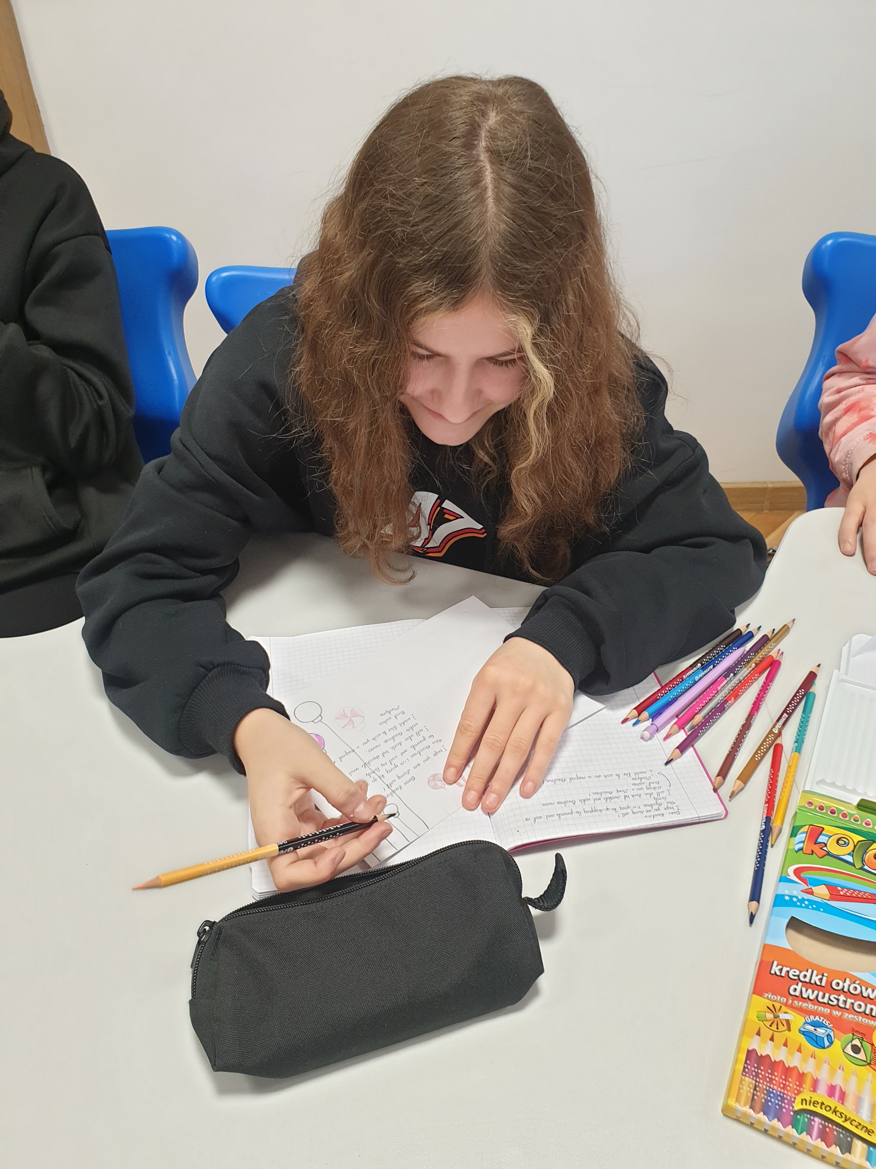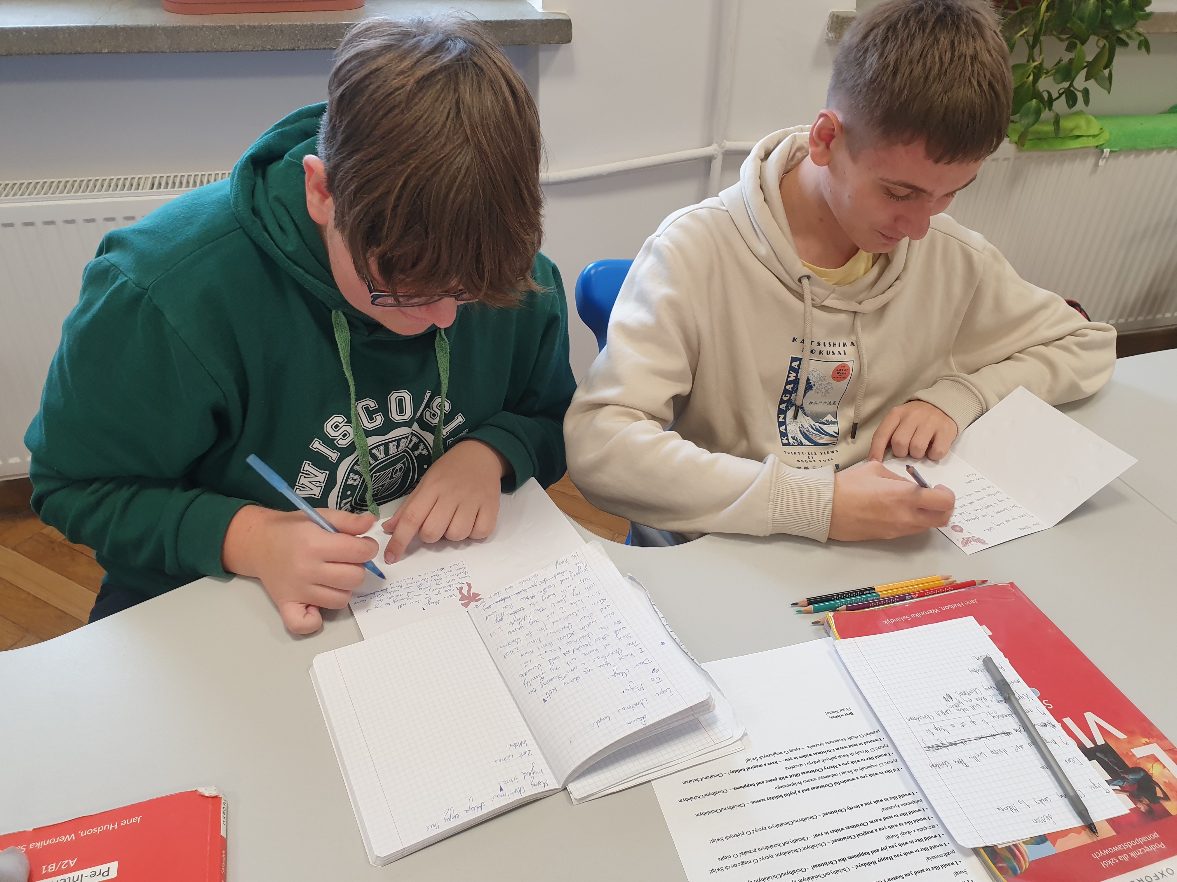Podczas pracy w klasie panowała radosna, przedświąteczna atmosfera. Uczniowie chętnie współpracowali, pomagali sobie nawzajem przy tworzeniu życzeń i sprawdzaniu poprawności językowej a także inspirowali się pomysłami kolegów i koleżanek. Była to wartościowa okazja do praktycznego wykorzystania języka angielskiego. Efektem ich pracy były starannie wykonane, pełne pomysłowości kartki, które z pewnością wywołają uśmiech na twarzach młodszych uczniów.