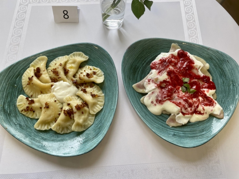 Na trzecim miejscu ex aequo uplasowały się dwie niezwykle utalentowane uczennice: Julia Ramut uczennica klasy I Szkoły Branżowej I stopnia w zawodzie Kucharz oraz Anna Skórska z klasy II Technikum Żywienia i Usług Gastronomicznych, te pierogowe kreacje zdobyły identyczną liczbę punktów, co świadczy o wysokim i wyrównanym poziomie ich umiejętności.