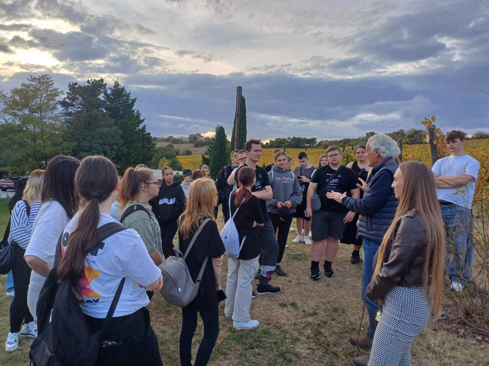 Po południu grupa odwiedziła gospodarstwo rolne Guerrieri, specjalizujące się w uprawie winorośli, zbóż oraz drzewek oliwnych. W trakcie wizyty młodzież miała możliwość zapoznania się z procesami uprawy oraz sposobami przetwarzania surowców rolnych.