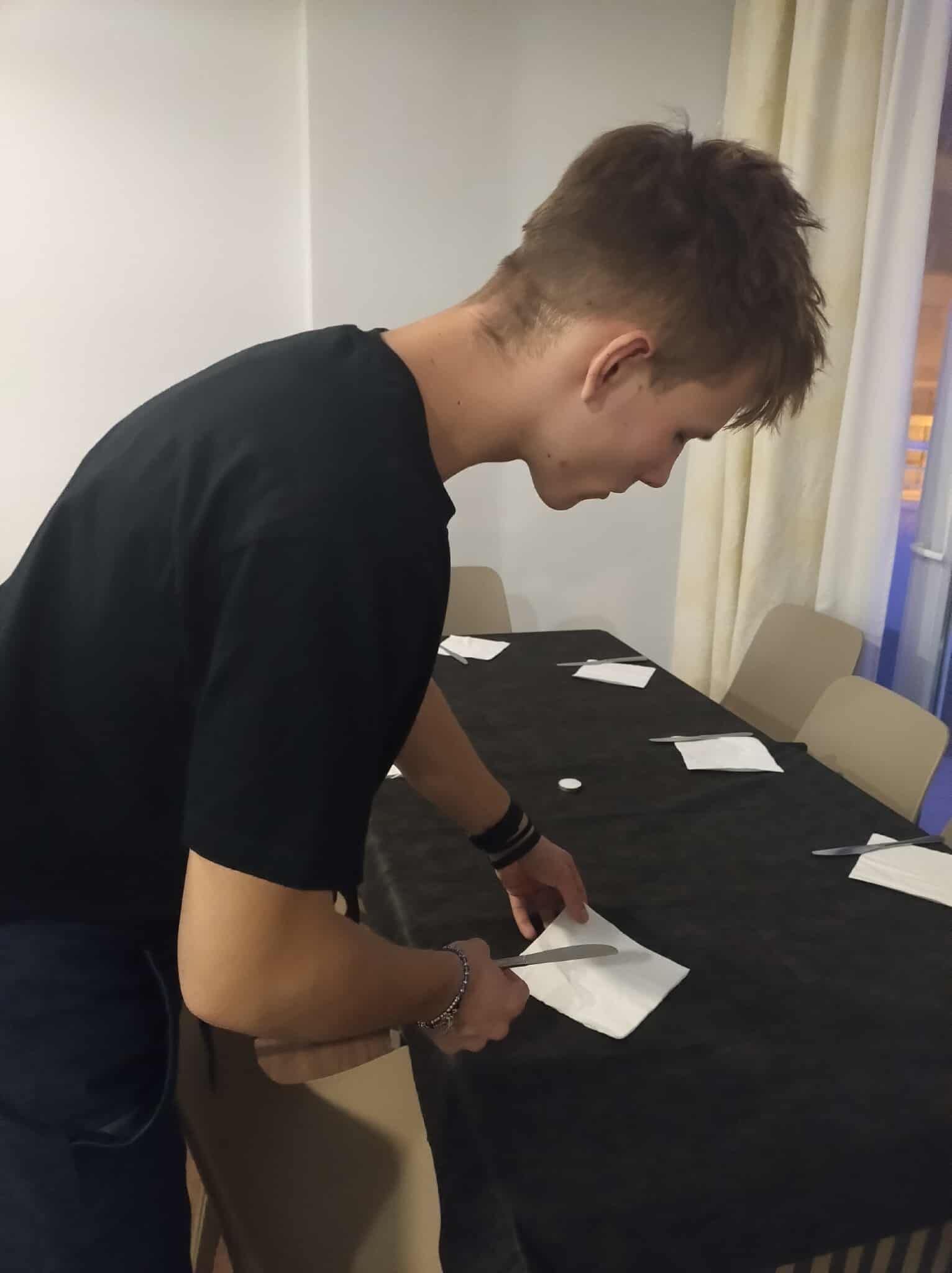 Dziesiątego dnia praktyk młodzież zapoznała się z systemem zamówień i rozliczeń stosowanym w restauracjach. Uczniowie mieli okazję obsługiwać bufety i bary, a także przećwiczyć kompleksową obsługę gości – od momentu powitania aż po końcowe rozliczenie. Dodatkowo uczestnicy przygotowali typowo polskie danie – pierogi, które cieszyły się dużym zainteresowaniem wśród gości.