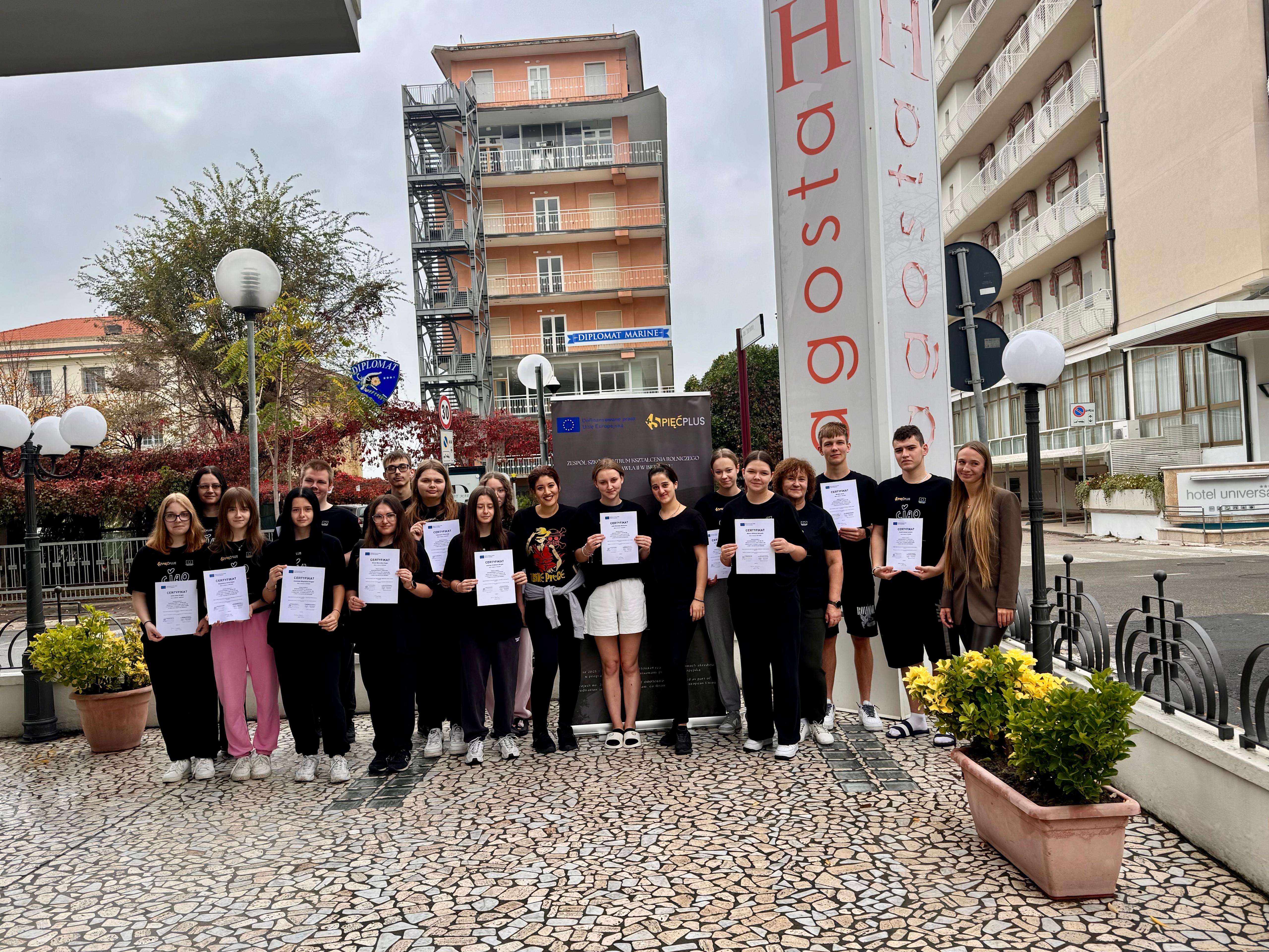 Dzień zakończył się pożegnaniem z Cattolicą, morzem, personelem hotelu oraz nowo poznanymi przyjaciółmi, z którymi uczniowie spędzili niezapomniane chwile. Był to moment pełen wzruszeń, podziękowań i refleksji nad tym, jak wiele doświadczeń zawodowych i życiowych przyniósł ten wyjazd.