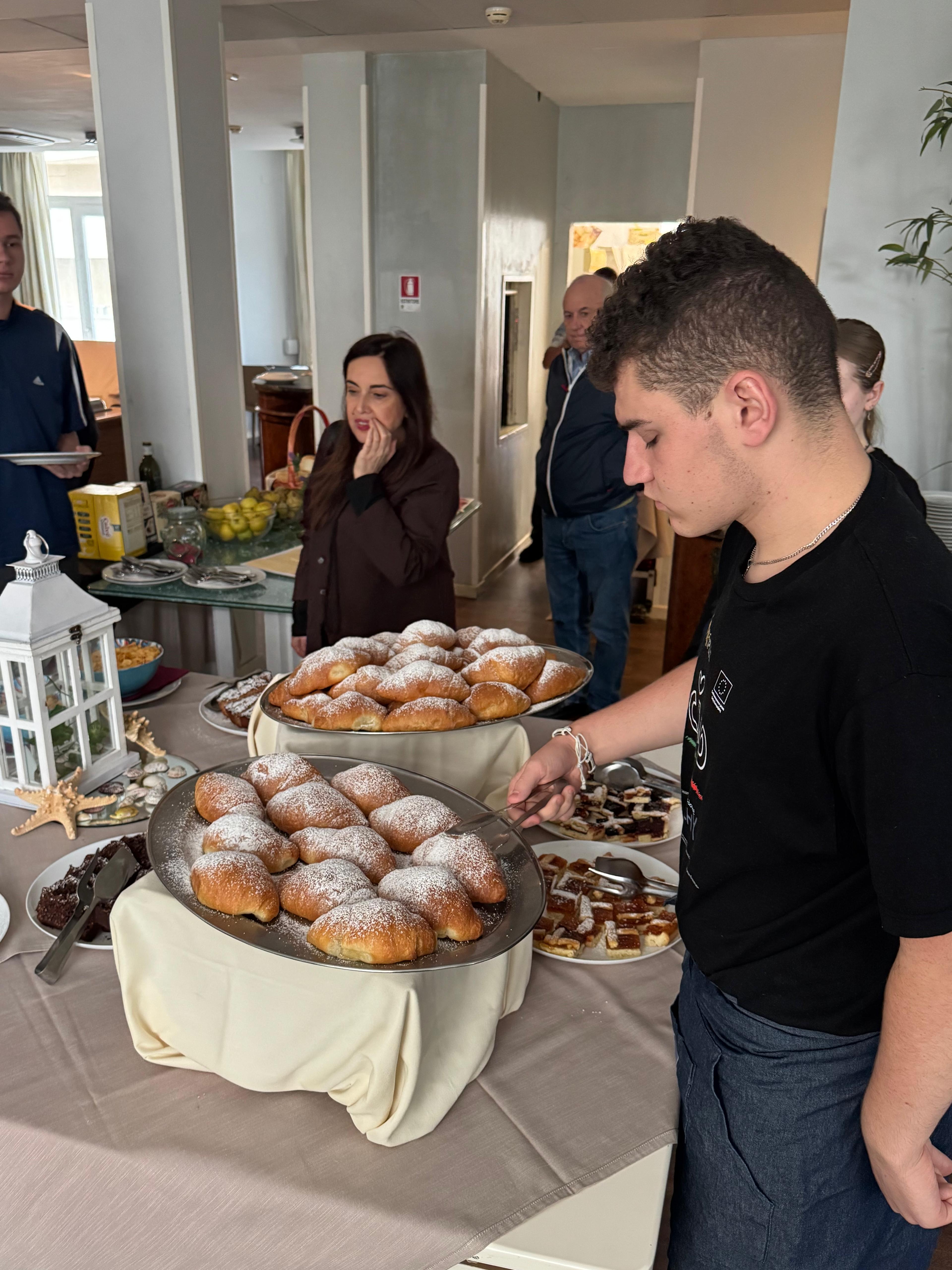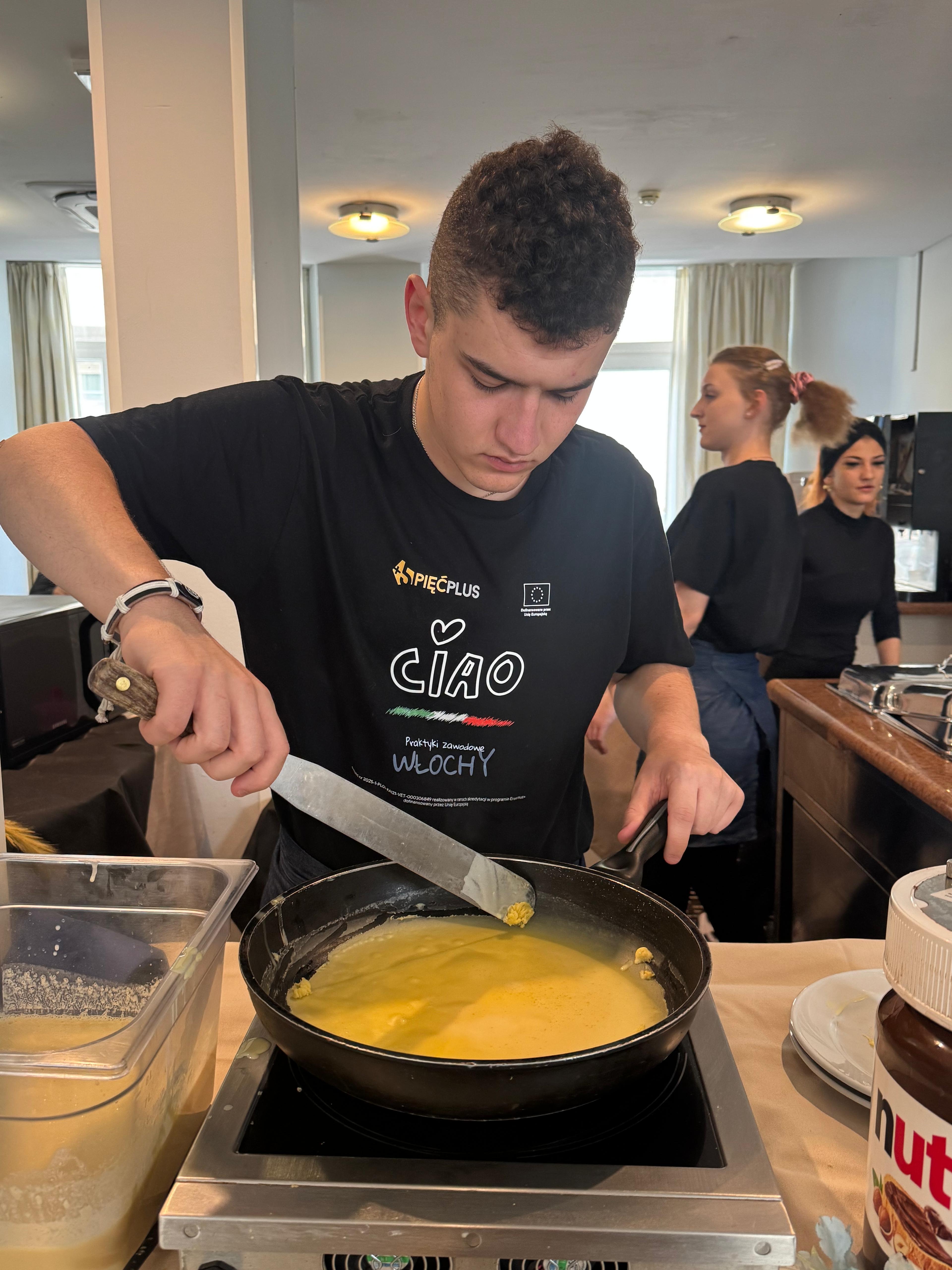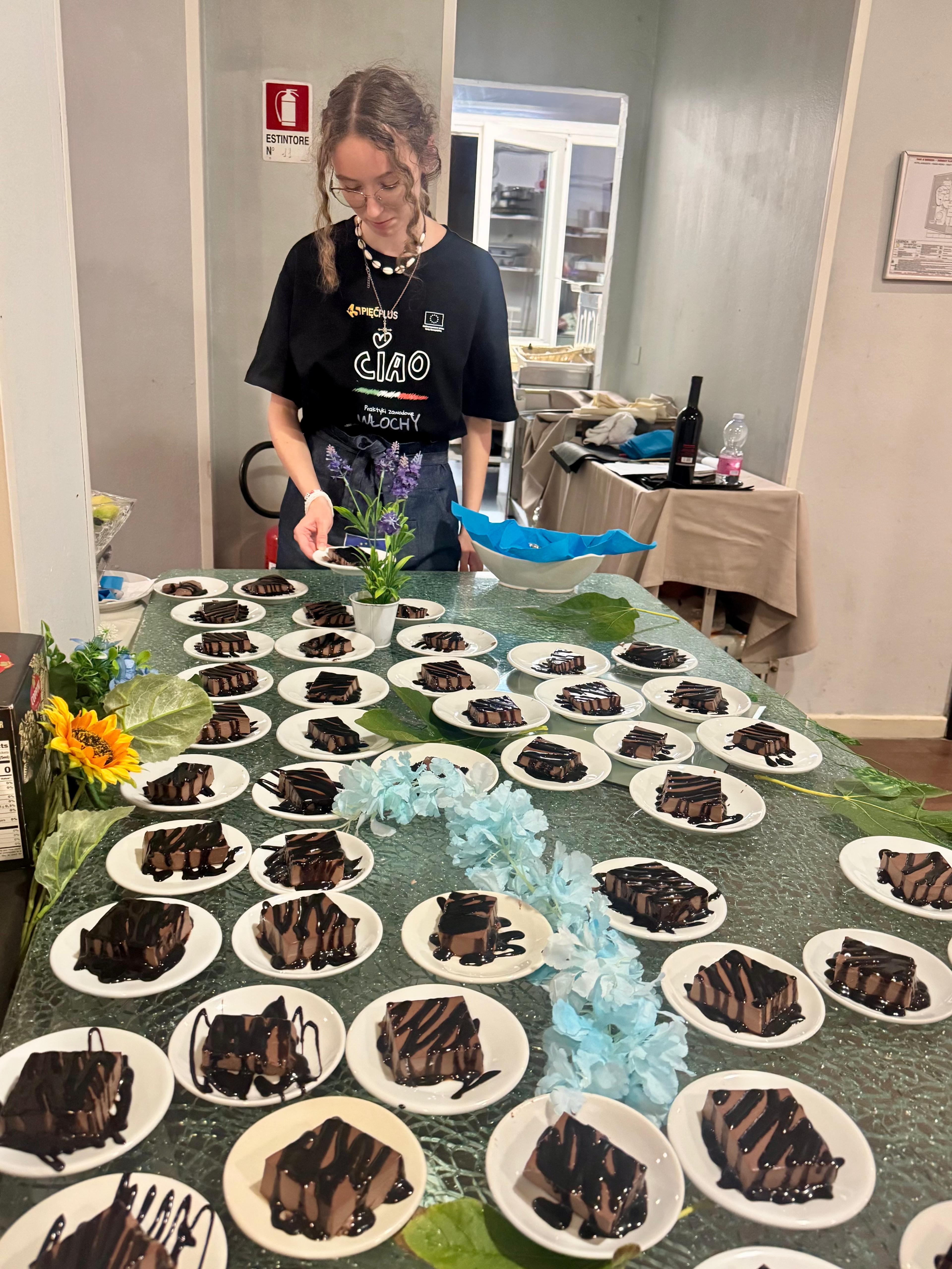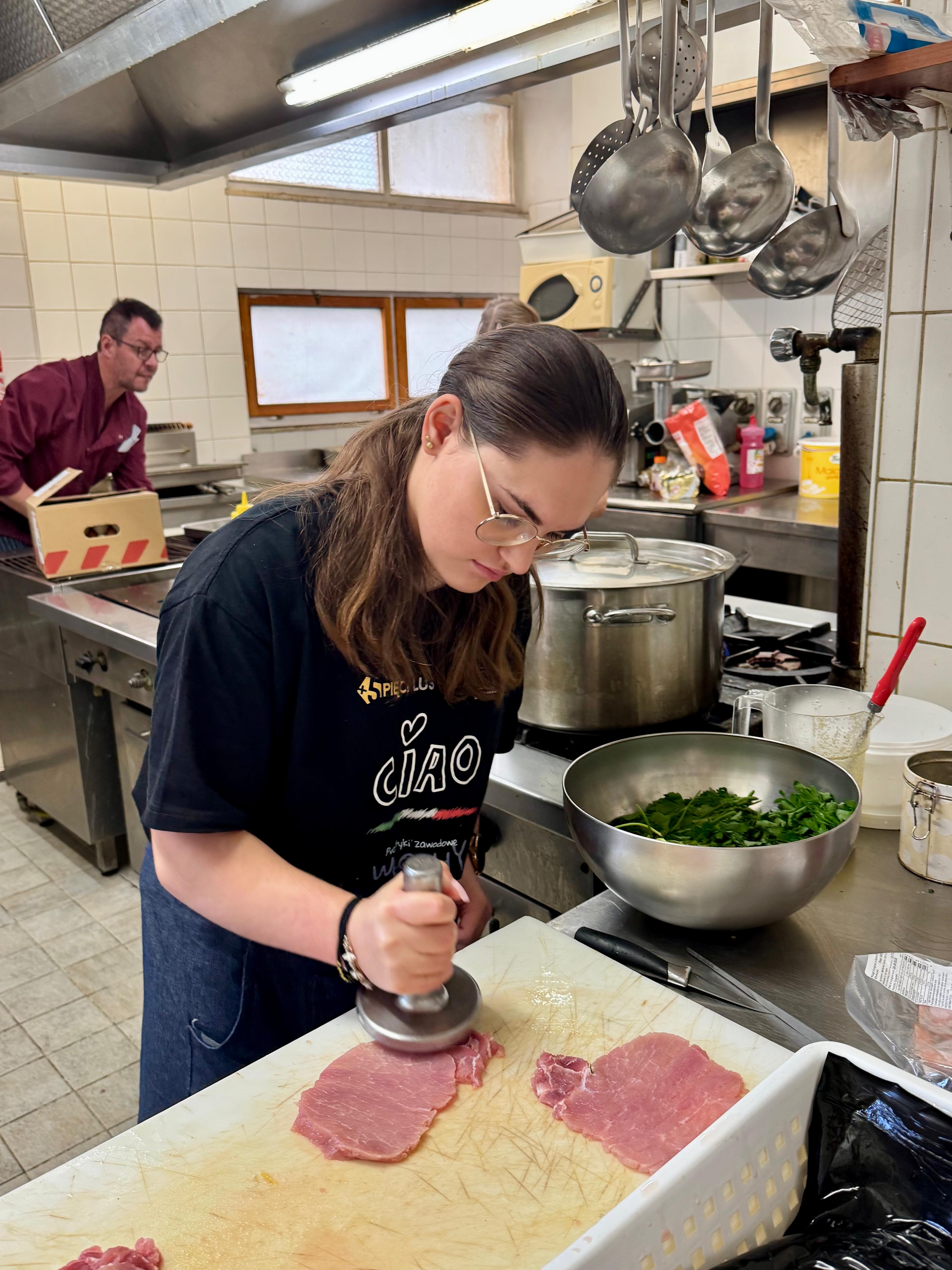 Ostatni dzień praktyk w Cattolice upłynął w wyjątkowej, pełnej emocji atmosferze. Uczniowie po raz ostatni odbyli zajęcia w kuchni hotelowej, gdzie samodzielnie przygotowywali półprodukty i dania, wykazując się dużą sprawnością zawodową oraz umiejętnością pracy w zespole. Była to doskonała okazja, aby podsumować zdobyte doświadczenia i zaprezentować umiejętności nabyte podczas całego pobytu.