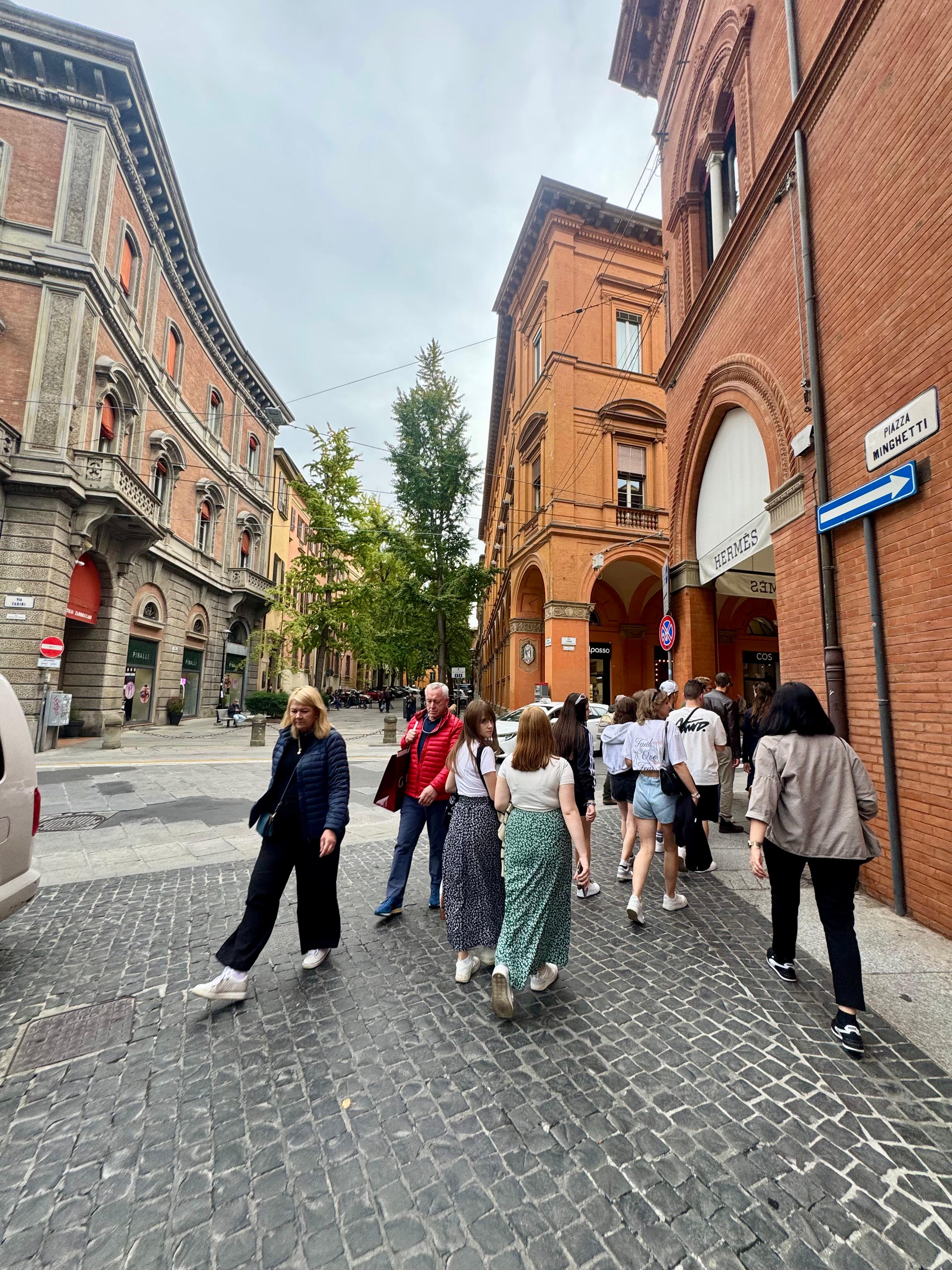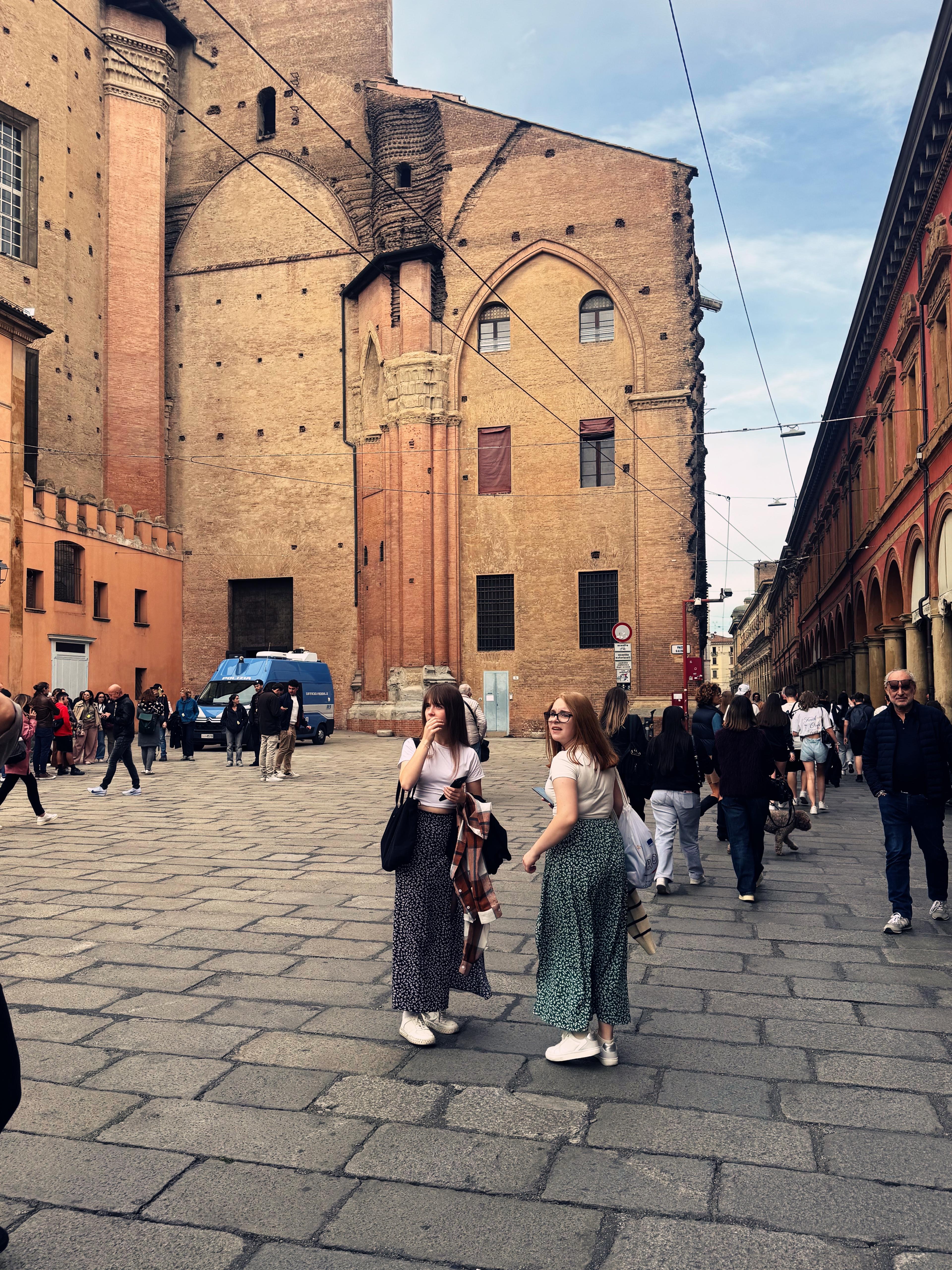 Dzisiejszy dzień poświęcony był poznawaniu kultury i historii miasta Bolonii. Po obiedzie udaliśmy się na wycieczkę do centrum, gdzie mogliśmy podziwiać urokliwe, wąskie uliczki pełne kolorowych kamienic, arkad oraz małych kawiarni. Atmosfera miasta była niezwykle żywa i przyjazna, a na każdym kroku czuć było historię i tradycję.
