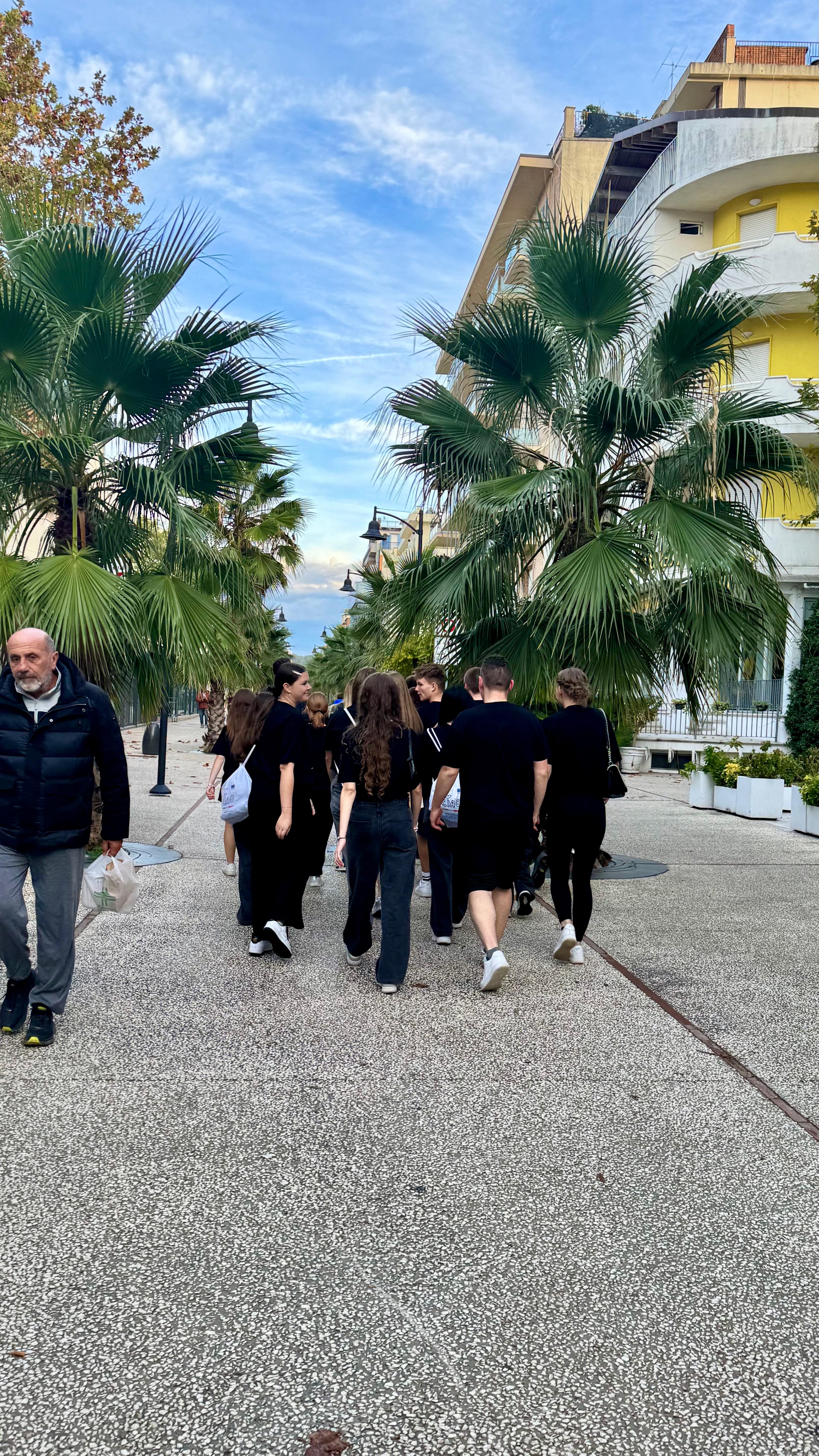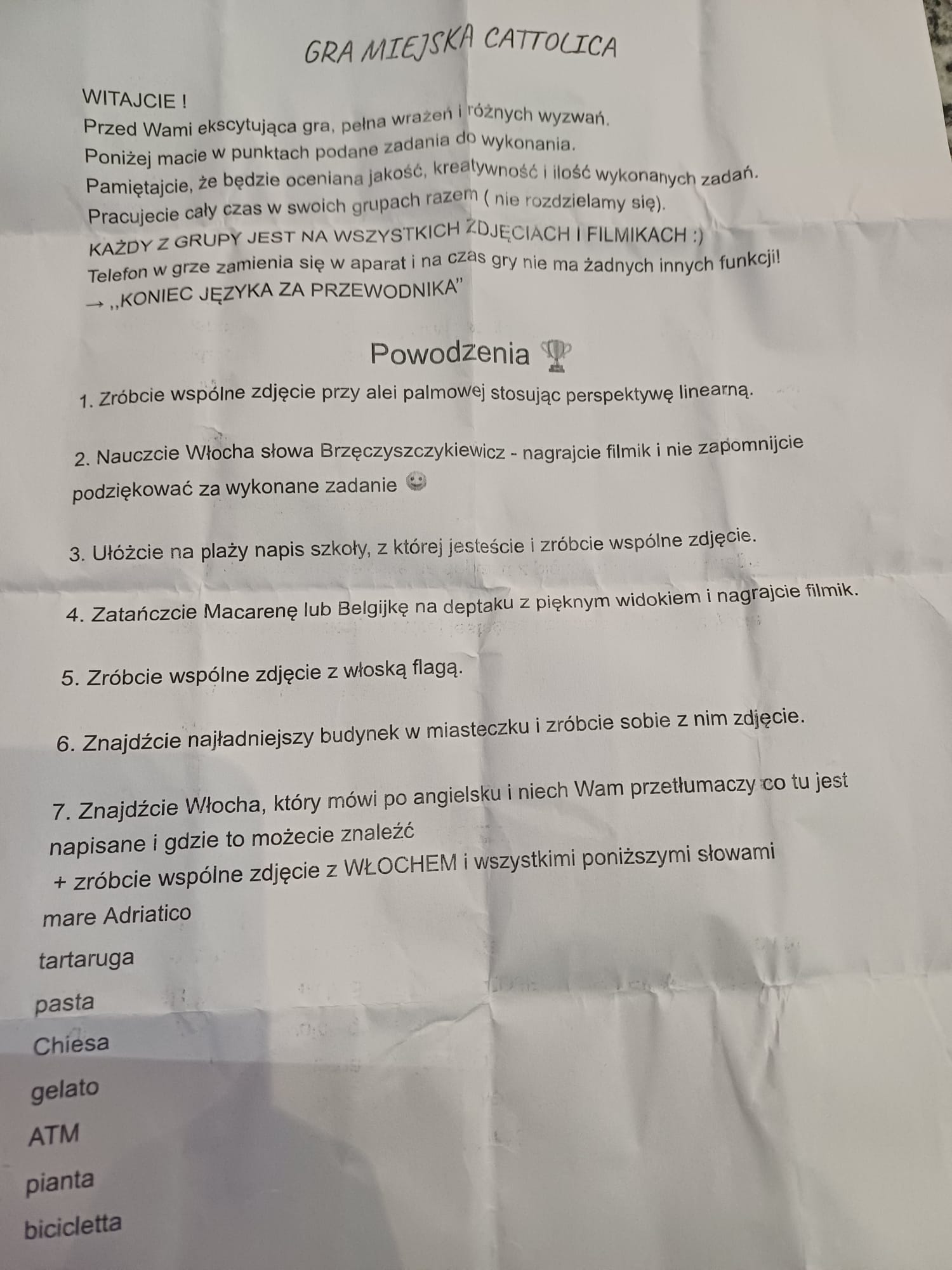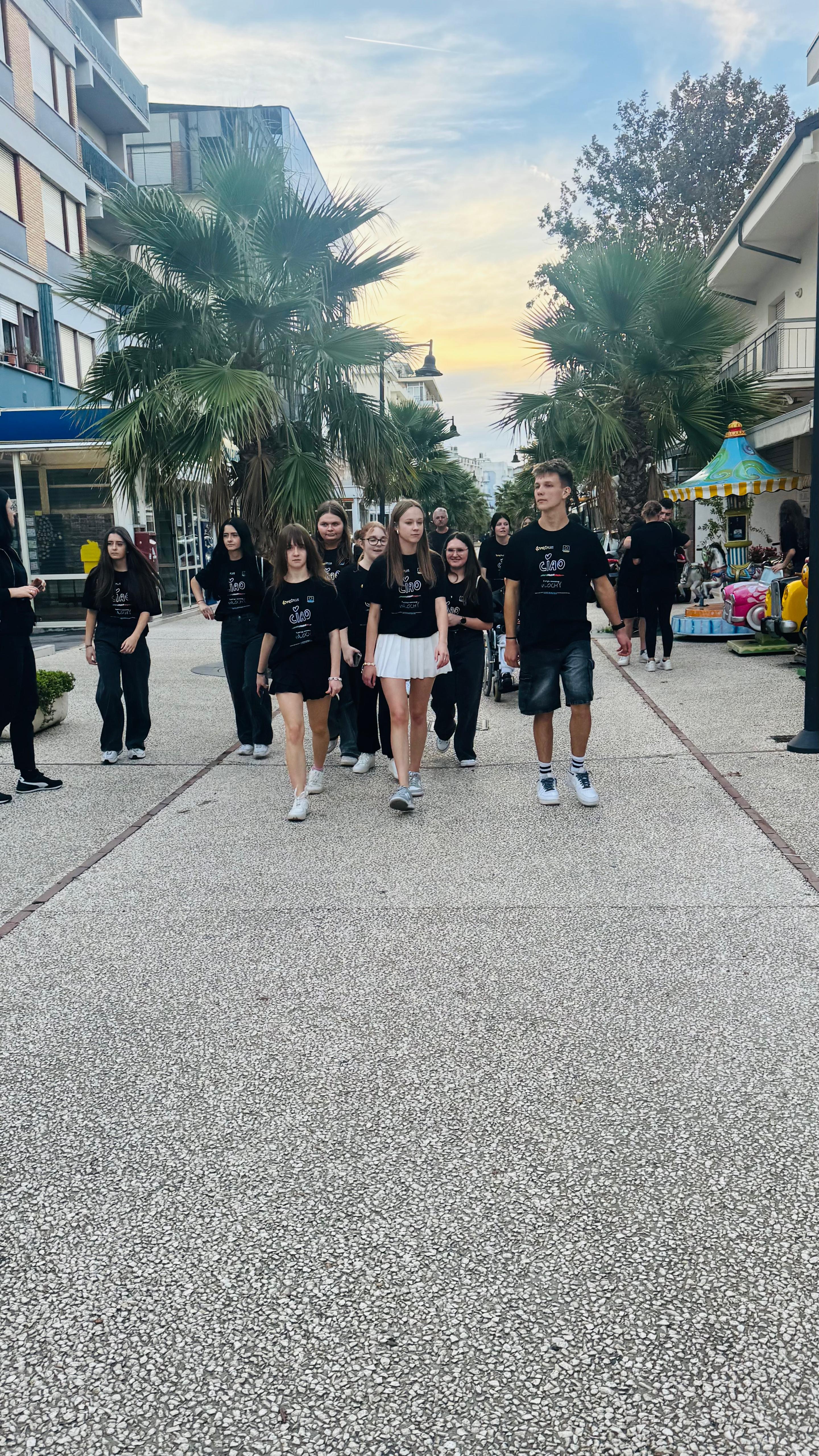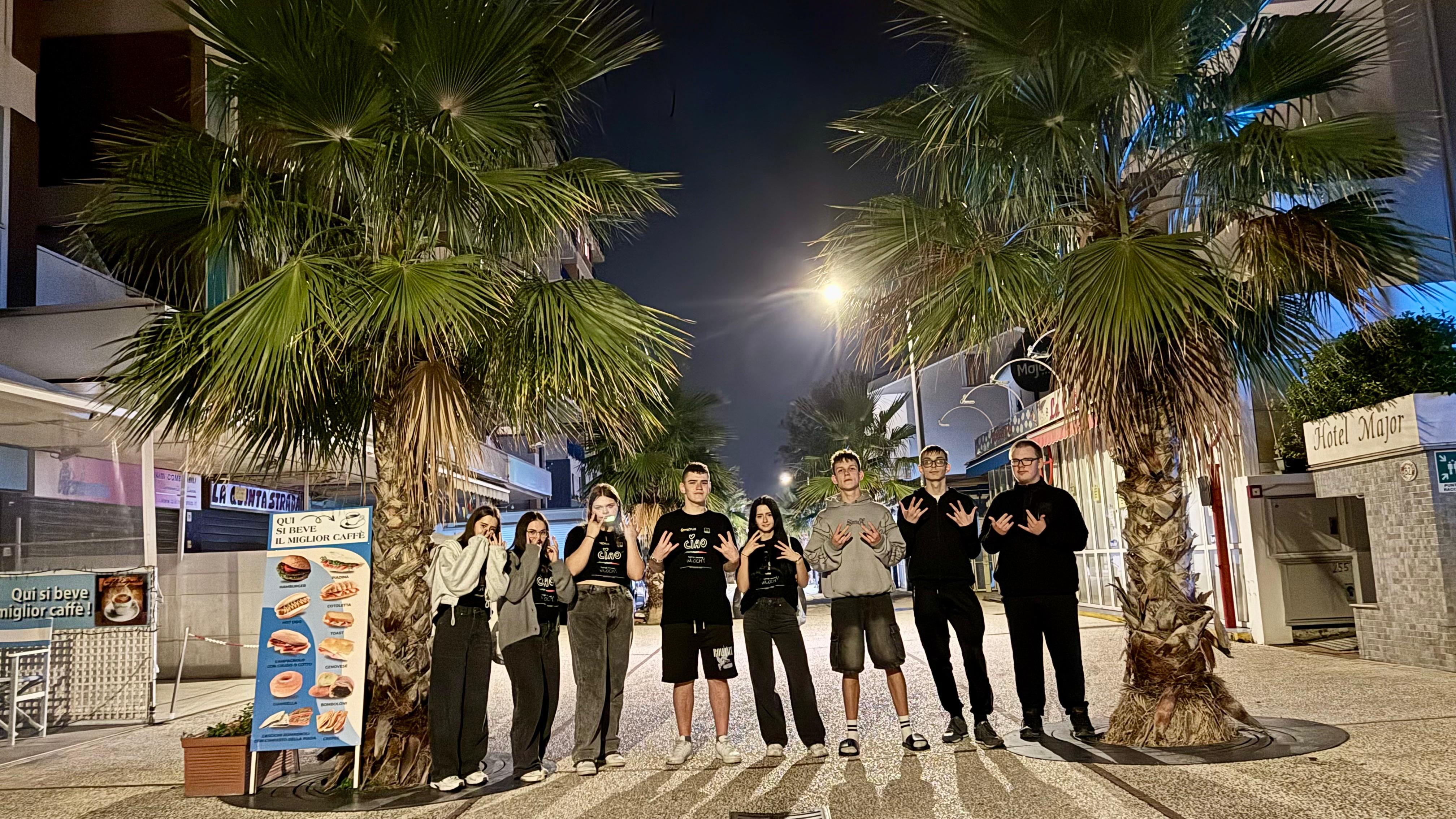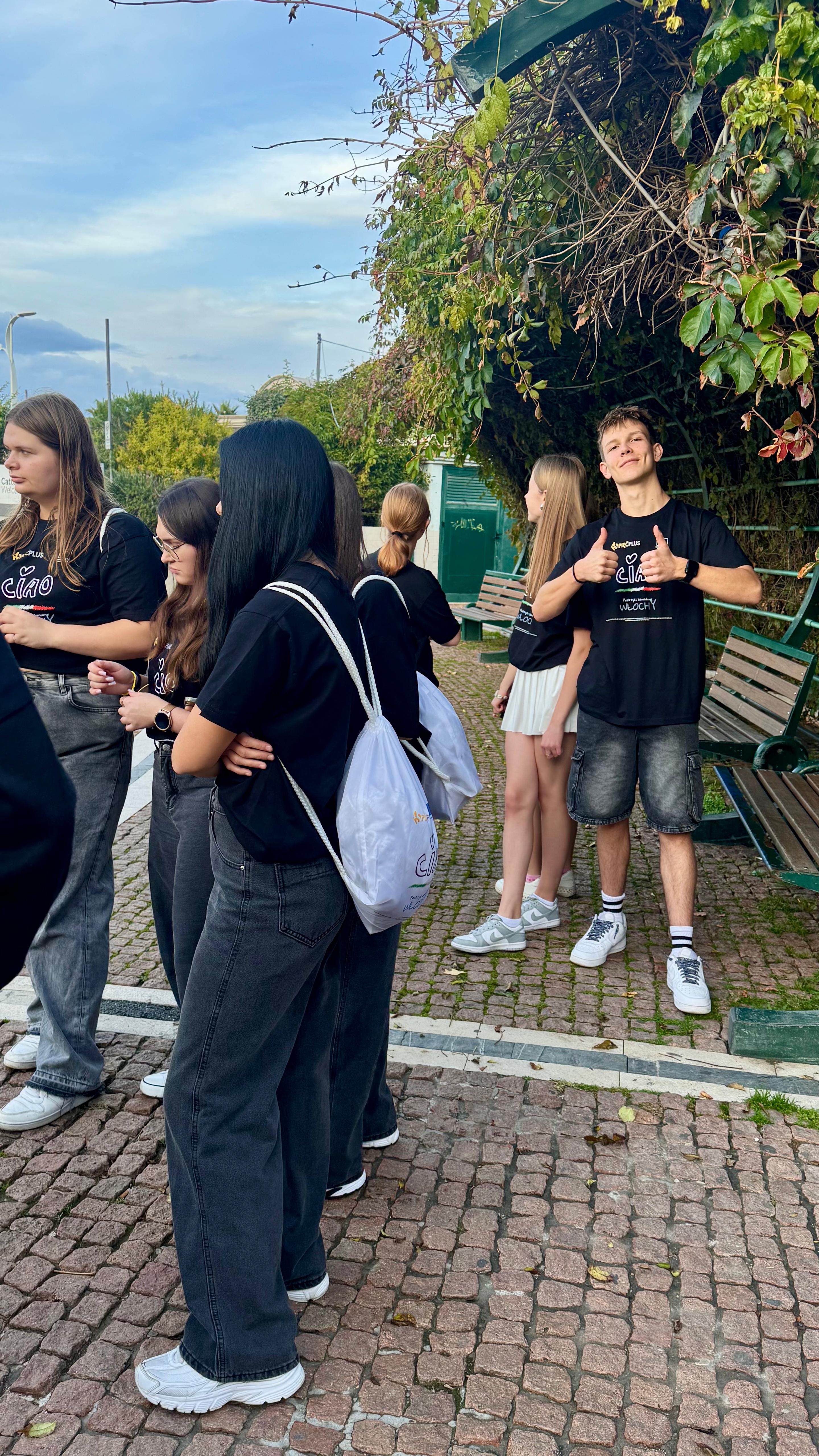 Wieczorem uczniowie wzięli udział w terenowej grze integracyjnej, podczas której wykonywali ciekawe zadania, współpracowali w grupach oraz ćwiczyli komunikację z rówieśnikami z Włoch. Wspólna aktywność sprzyjała integracji, rozwijaniu umiejętności pracy zespołowej i lepszemu poznaniu miasta w niecodzienny, angażujący sposób.