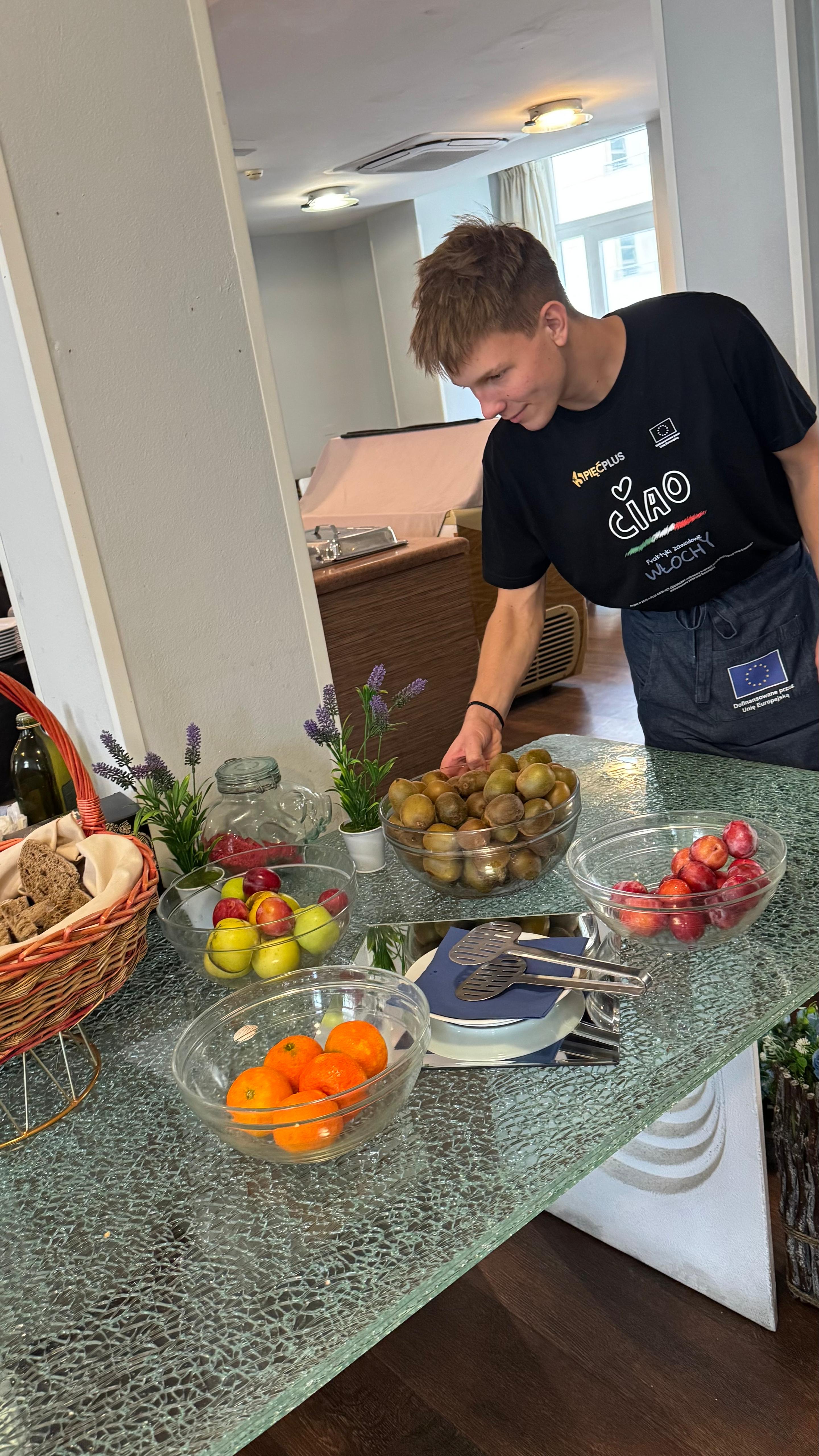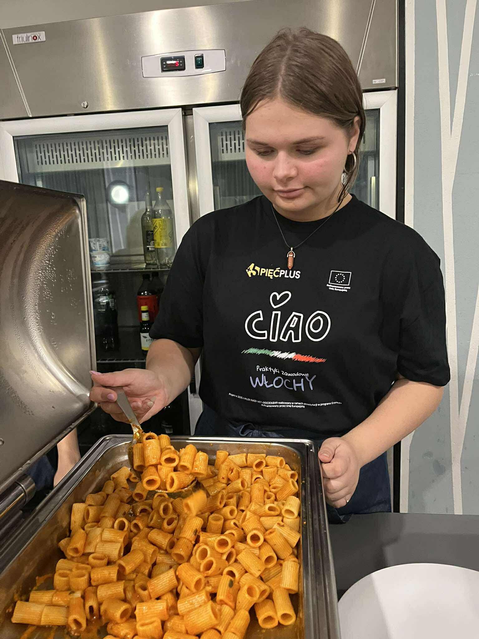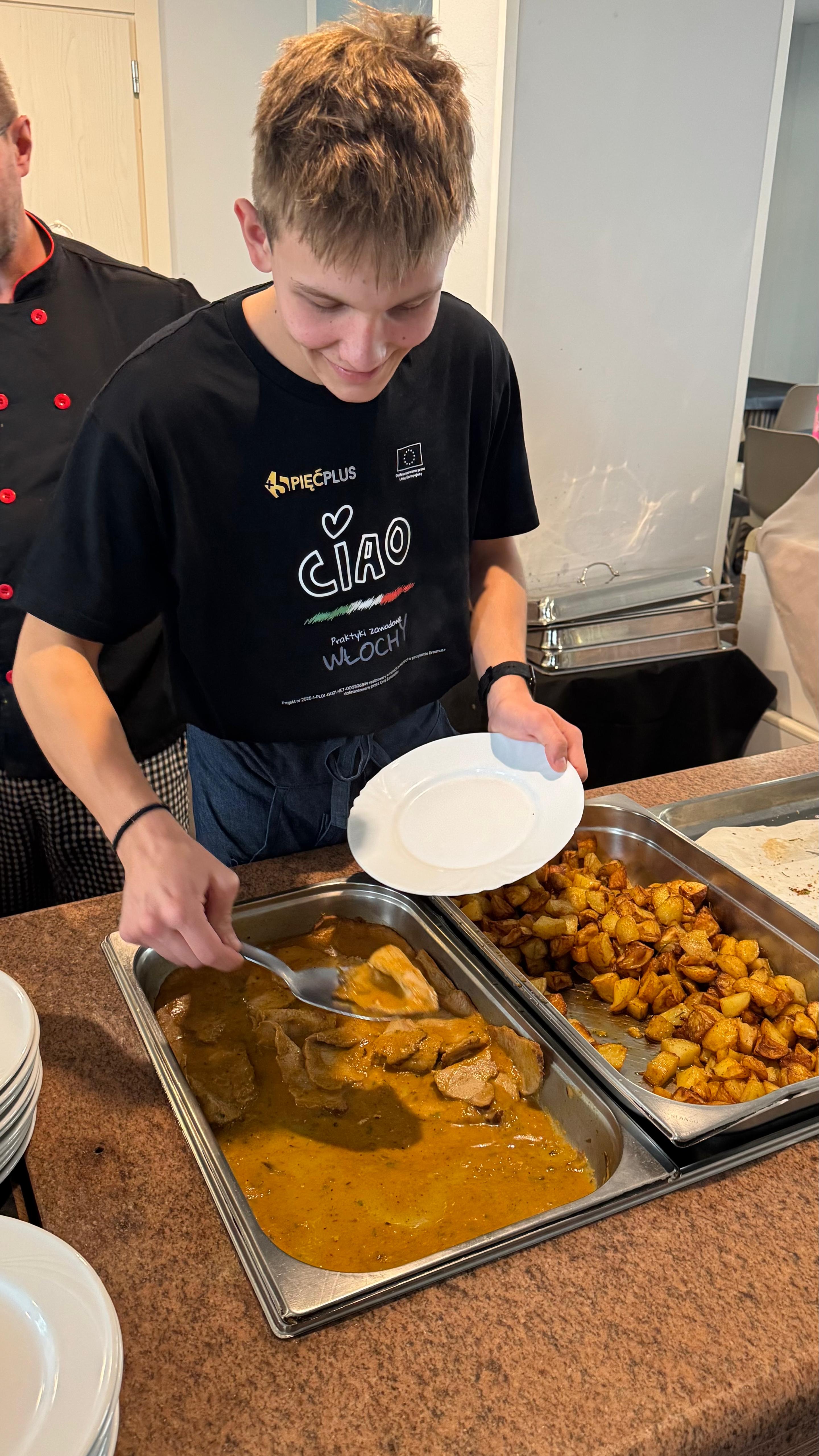 Następnie przeszli do zajęć praktycznych – przygotowywali półprodukty, dania i napoje według lokalnych przepisów, z użyciem tradycyjnych składników. Była to doskonała okazja do nauki regionalnych technik kulinarnych i doskonalenia umiejętności w pracy zespołowej.