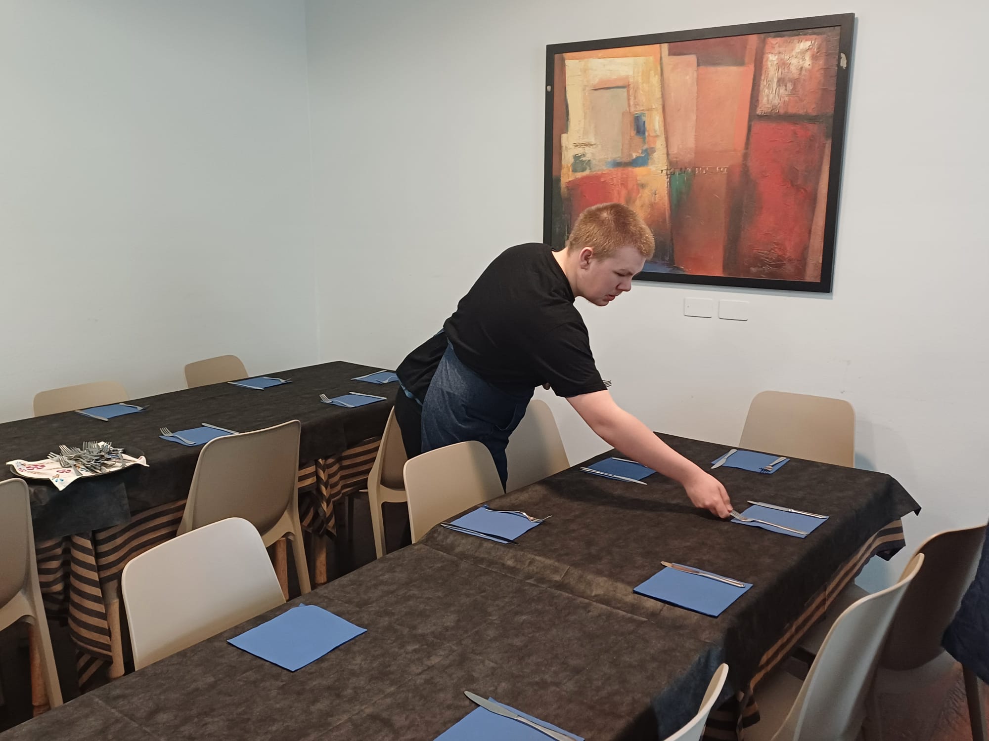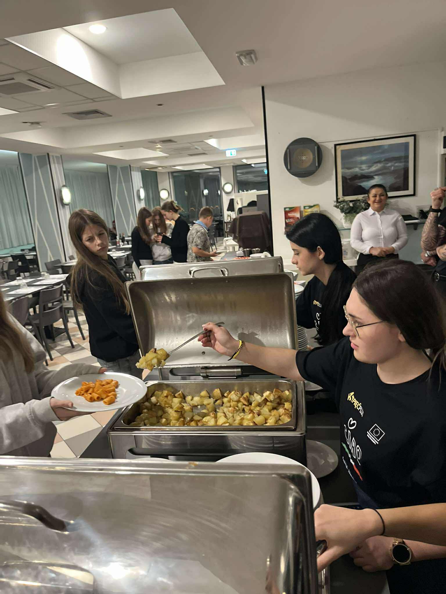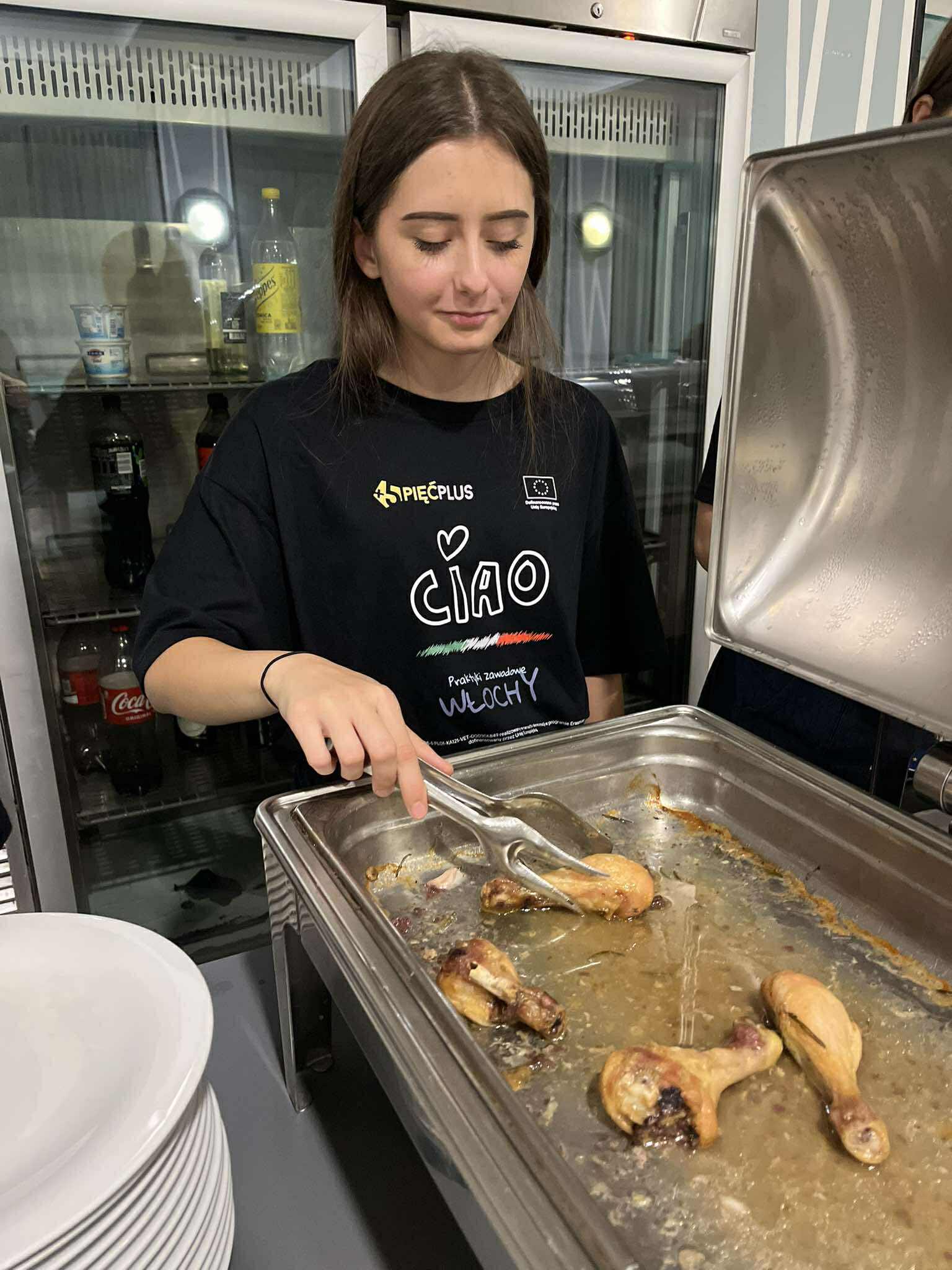 Kolejny dzień praktyk rozpoczął się od części teoretycznej, podczas której uczestnicy opracowywali ofertę usług gastronomicznych, dostosowaną do lokalnych potrzeb i oczekiwań klientów. Poznawali różne strategie marketingowe oraz działania promujące restauracje, takie jak kampanie w mediach społecznościowych, programy lojalnościowe czy promocje sezonowe. Omawiali także sposoby skutecznego reagowania na reklamacje, zwracając szczególną uwagę na profesjonalną obsługę klienta i budowanie pozytywnego wizerunku lokalu.