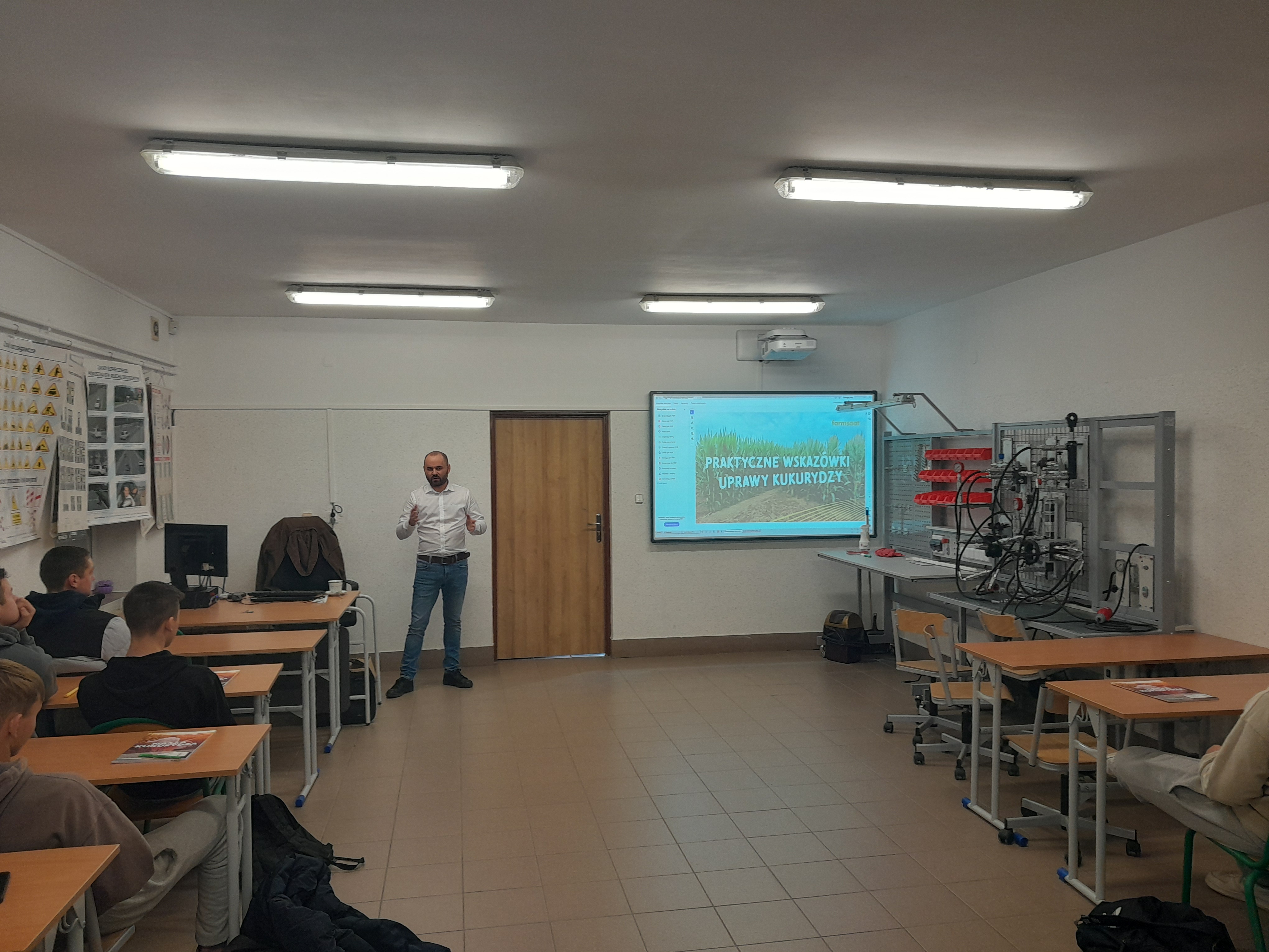 W dniu 16.XII.2025 roku w Zespole Szkół Centrum Kształcenia Rolniczego w Brzostku odbyło się spotkanie Koła Mechanizacyjnego z Kierownikiem Regionalnym firmy FARMSAAT, panem Łukaszem Lechem. Spotkanie miało charakter szkoleniowo-informacyjny i było skierowane do uczniów, nauczycieli oraz członków koła zainteresowanych tematyką produkcji roślinnej, w szczególności uprawą kukurydzy.