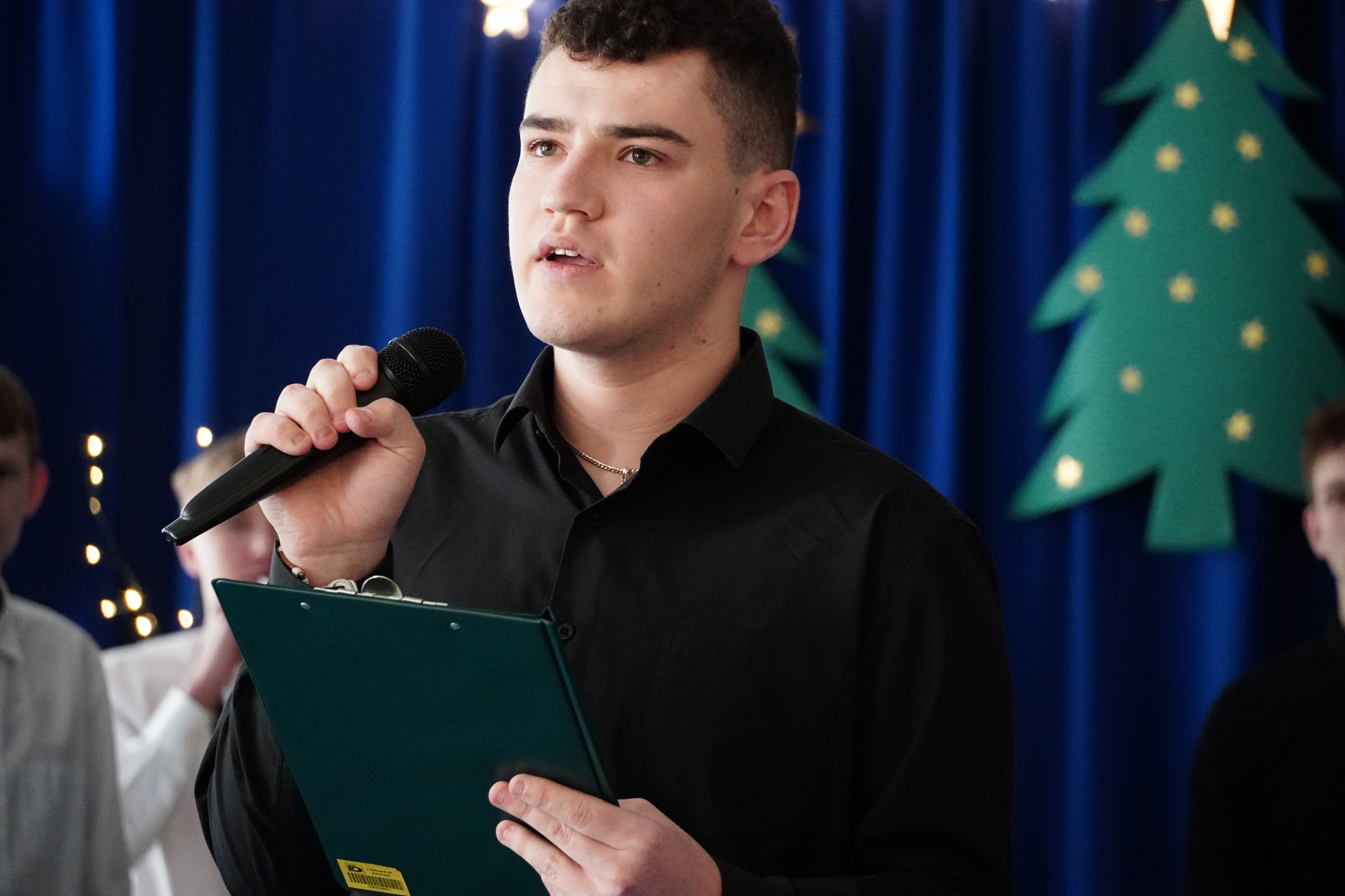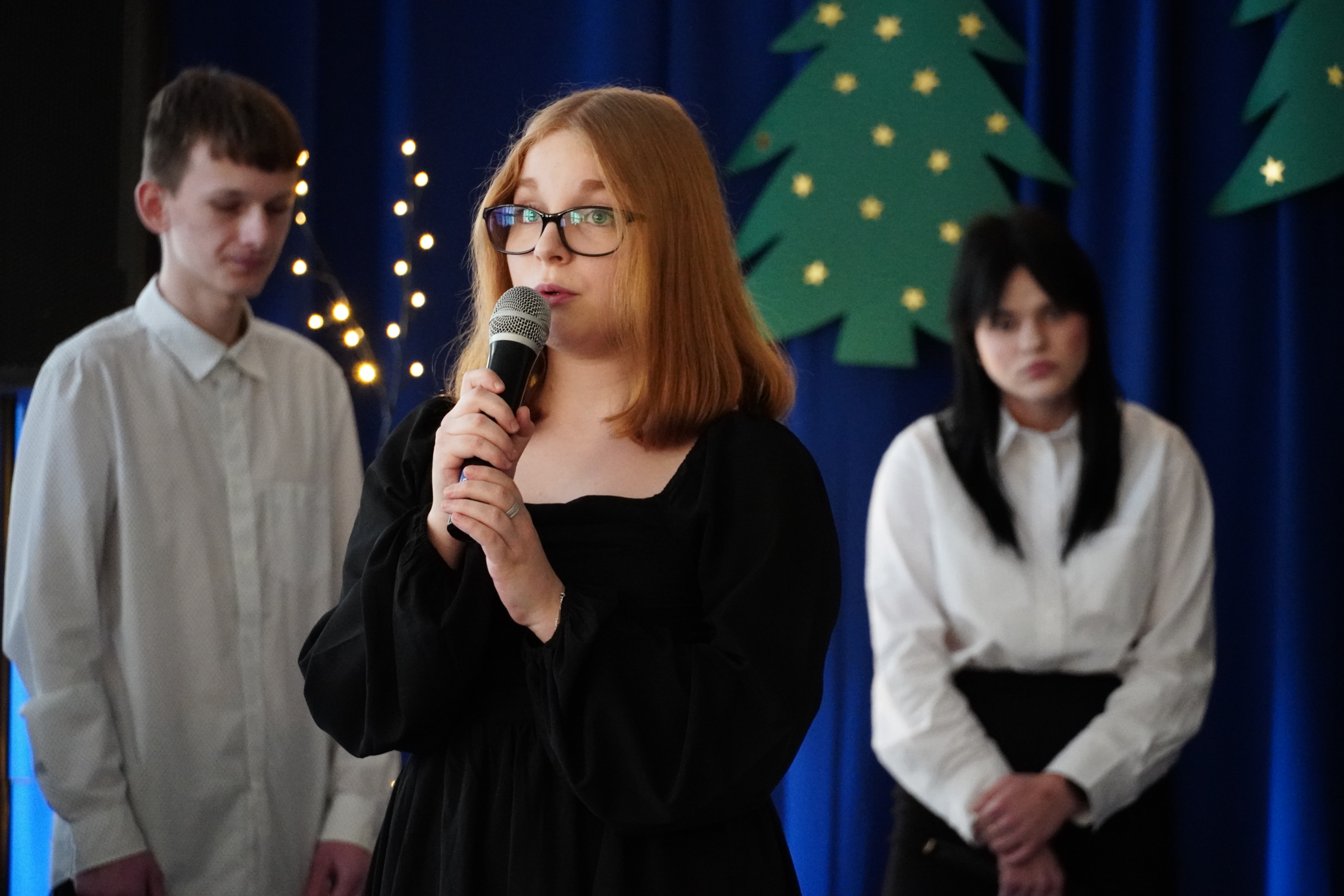 W świąteczny nastrój zgromadzonych wprowadził występ młodzieży z klasy III TŻ, do którego dołączyli przedstawiciele klas: I TŻ, I TAK, I TW, III ZK oraz IV TM. Przygotowany montaż słowno – muzyczny był pełen zadumy i refleksji nad tajemnicą Bożego Narodzenia.