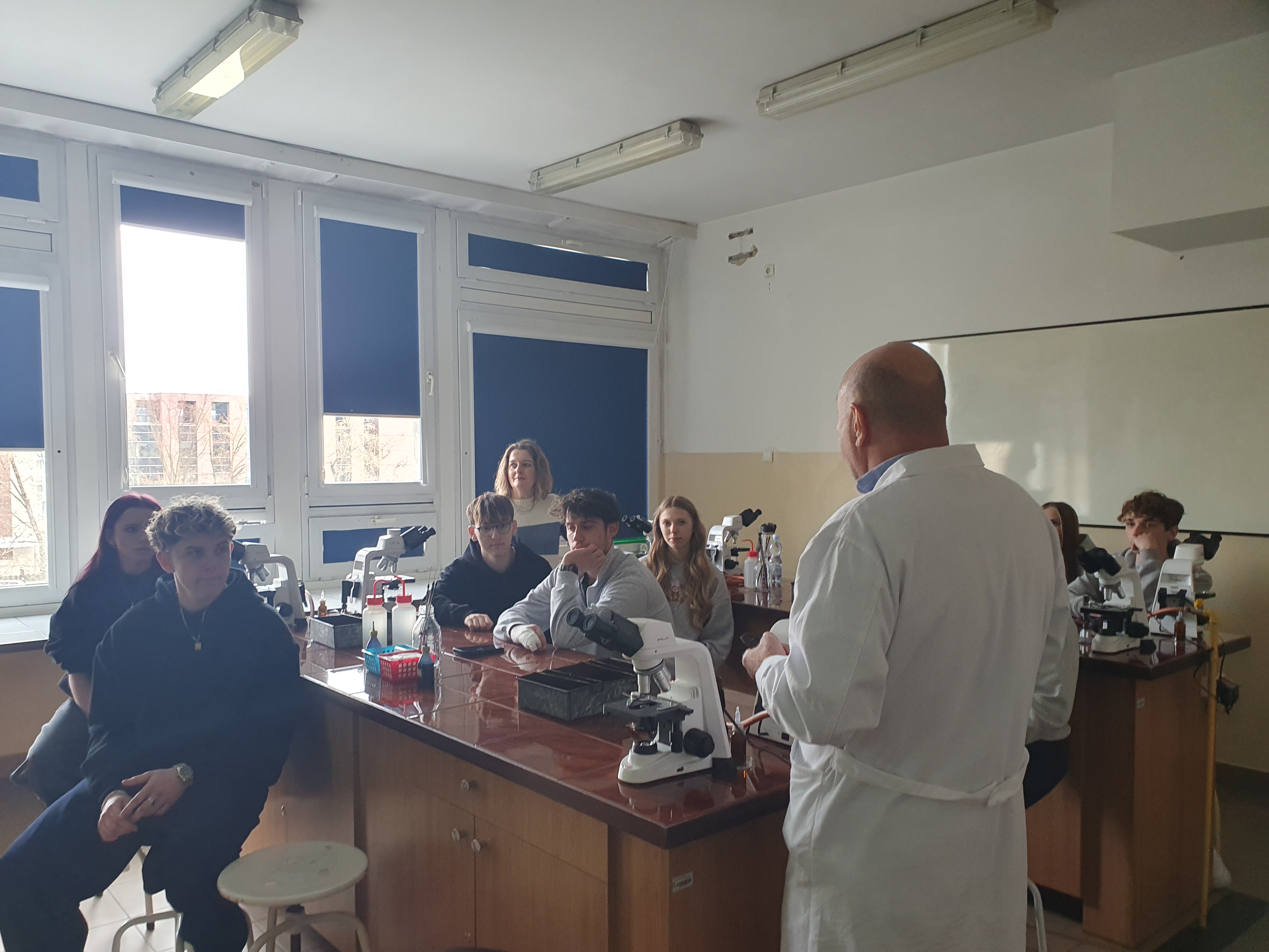 Podczas części laboratoryjnej uczniowie mieli okazję samodzielnie przygotować preparaty różnych kultur bakterii mlekowych, a następnie obserwować je pod mikroskopem. Było to niezwykle ciekawe doświadczenie, które pozwoliło poszerzyć wiedzę zdobytą na lekcjach oraz rozwinąć umiejętności praktyczne.