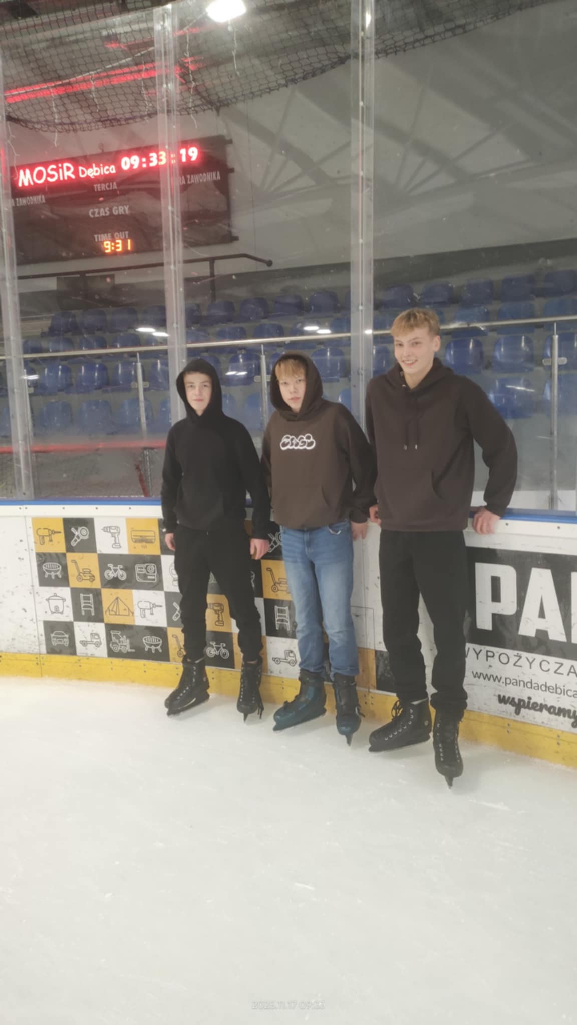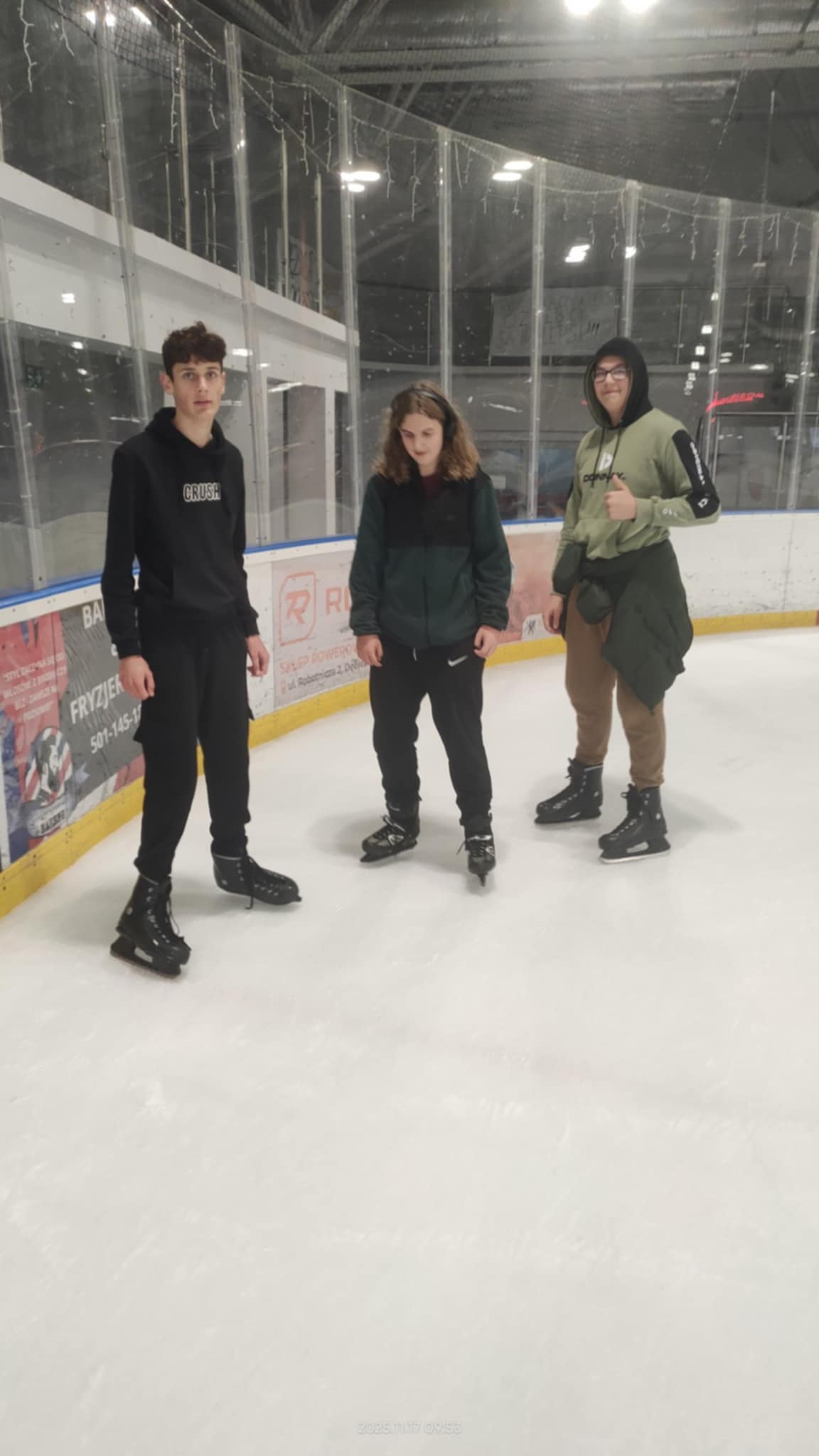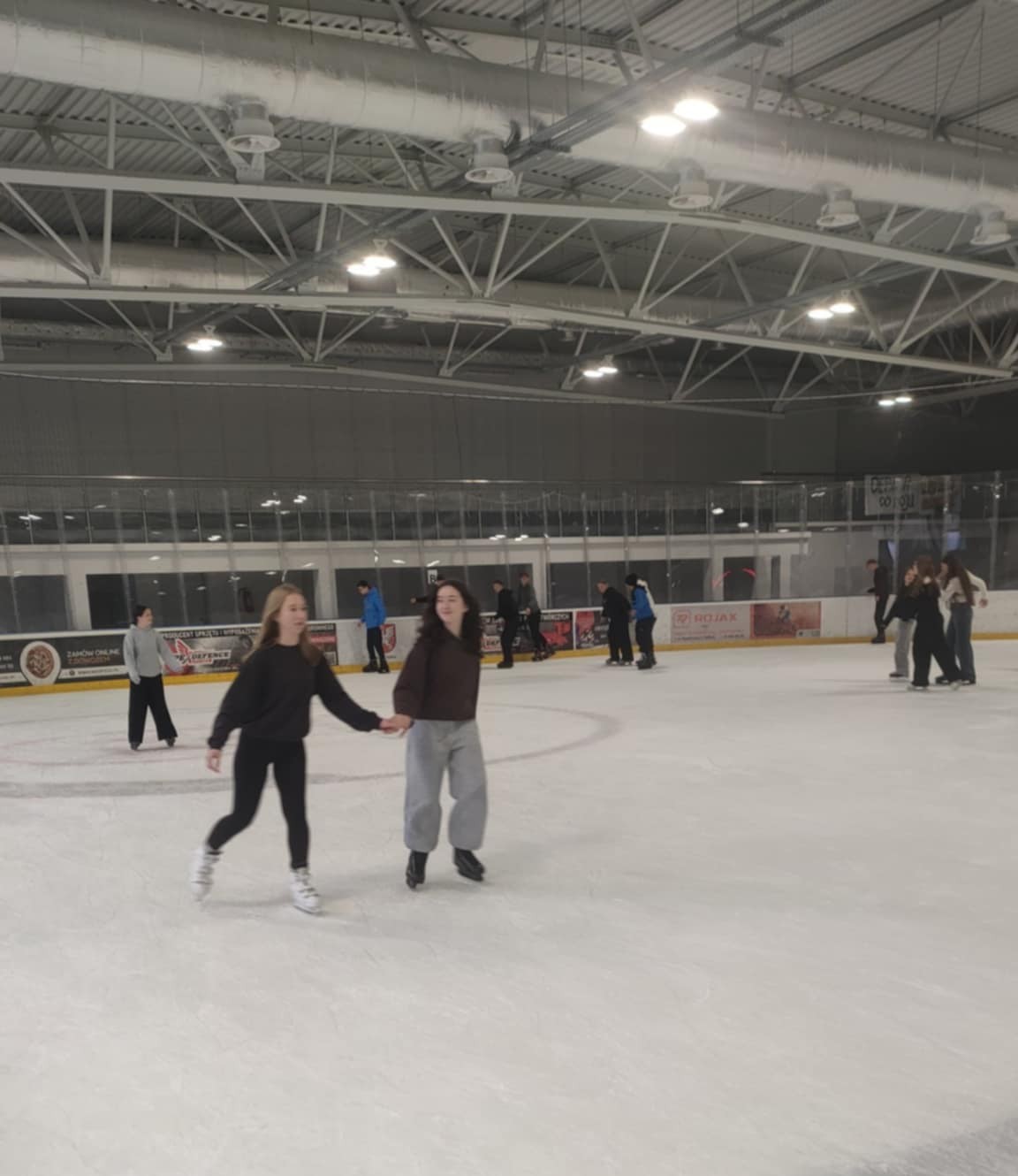 Zbiórka w szkole odbyła się o godzinie 8:00, a następnie udaliśmy się do autobusu gdzie, została sprawdzona lista obecności i wyruszyliśmy w drogę na lodowisko. Po przyjeździe na miejsce kupiliśmy zbiorowy bilet i wypożyczyliśmy łyżwy. I właśnie wtedy zaczęła się przednia zabawa, która z czasem nabierała tempa, również wtedy zaczęły się wygłupy na łyżwach. Mogliśmy obserwować wzloty i upadki nowicjuszy, a także wspaniałą i jednocześnie brawurową jazdę zaawansowanych łyżwiarzy. Niektórzy wjeżdżali na taflę odważnie, a inni z bojaźnią i strachem w oczach trzymając się bandy, stawiali pierwsze kroki na lodzie, aby mieć się czego chwycić w najgorszym momencie.