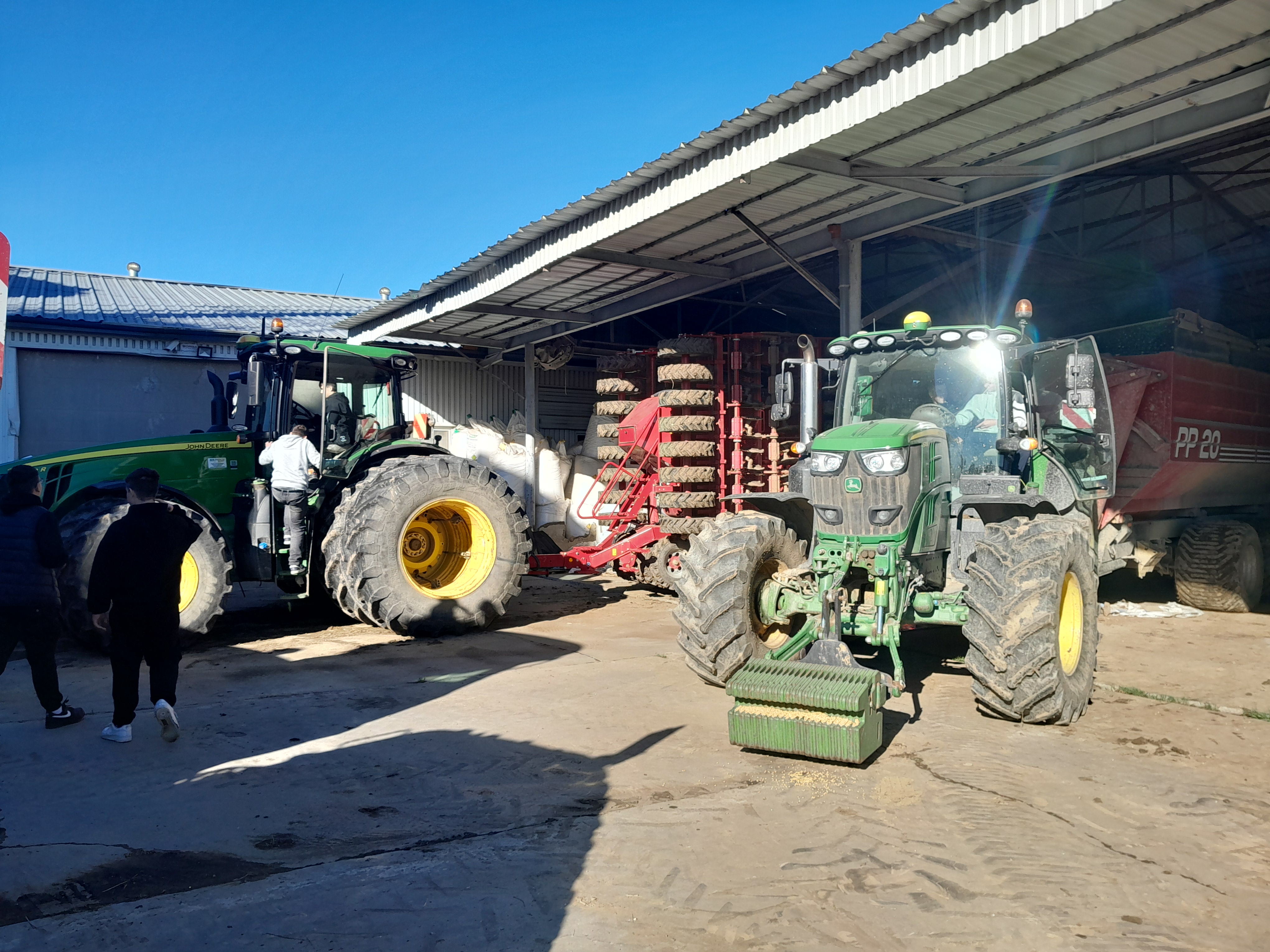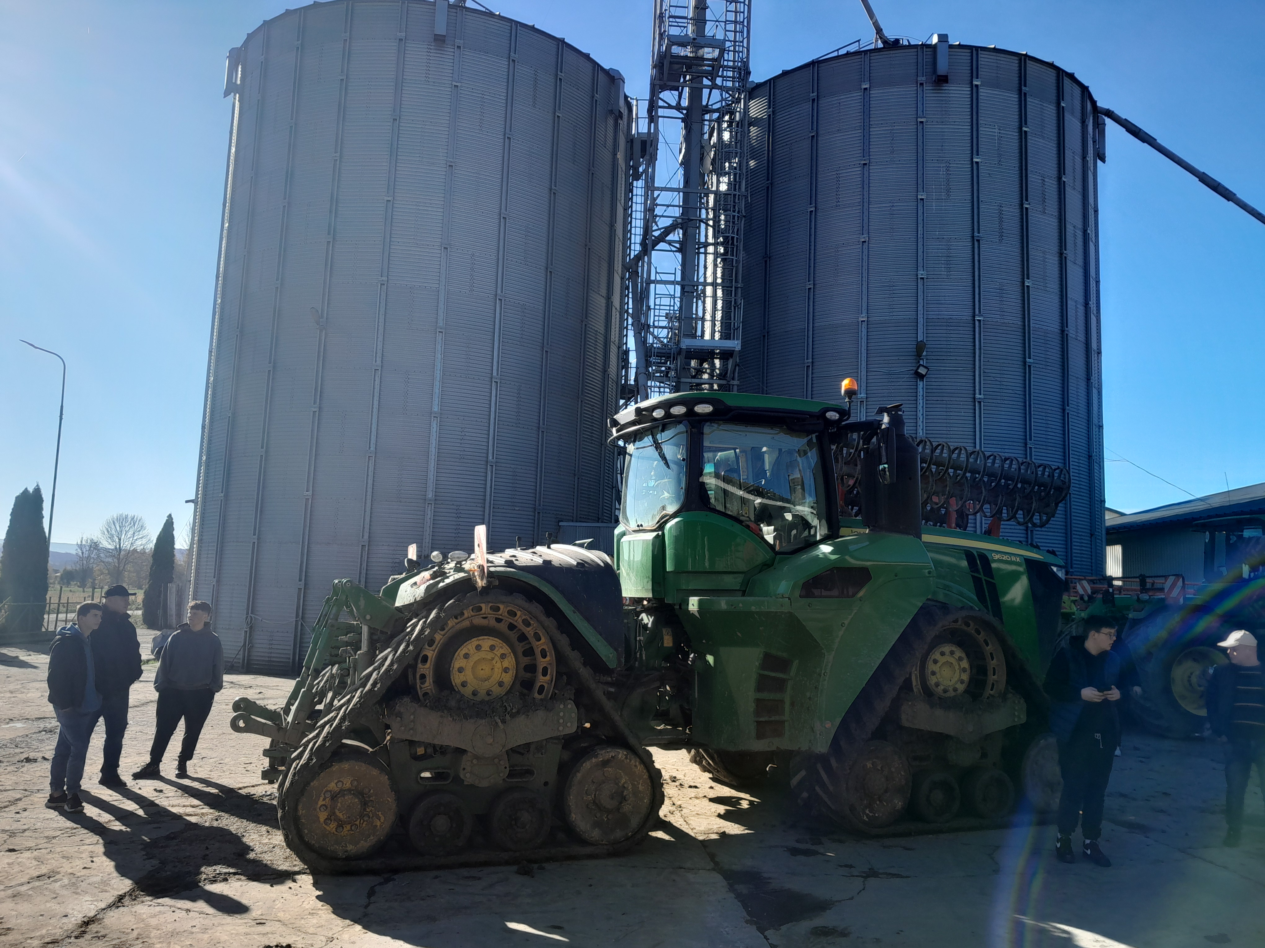 Bardzo duże zainteresowanie wzbudził również park maszynowy, który jest jednym z najbardziej nowoczesnych w Polsce. Główną wyróżniającą się marką w gospodarstwie jest John Deere. Uczniowie mieli możliwość obejrzenia z bliska imponującego modelu ciągnika John Deere 9620 RX – jest to bardzo zaawansowana konstrukcja na gąsienicach, przeznaczona do najcięższych prac polowych.