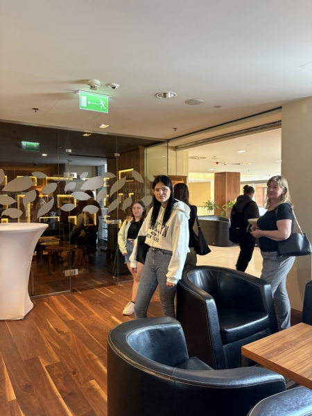 W dniu 10 czerwca 2025 uczniowie 2ZK odwiedzili Hotel Hilton Garden w Rzeszowie w ramach wycieczki zawodowej. Celem wizyty było poznanie funkcjonowania nowoczesnego obiektu hotelowego oraz pogłębienie wiedzy praktycznej związanej z zawodem. Uczniowie mieli okazję poznać warunki pracy na różnych stanowiskach w hotelu i sali restauracyjnej oraz zasady funkcjonowania baru oraz roli i odpowiedzialności menadżera gastronomii i szefa kuchni. Uczniowie dowiedzieli się jak ważna jest logistyka, elastyczność i profesjonalizm w obsłudze gości biznesowych przy organizacji eventów i konferencji. Składamy serdeczne podziękowania Pani Ani Lipiec - menadżerowi ds. gastronomii za życzliwość oraz profesjonalne wprowadzenie uczniów w tajniki pracy menażerskiej. Podziękowania składamy również Panu Kamilowi - szefowi kuchni.