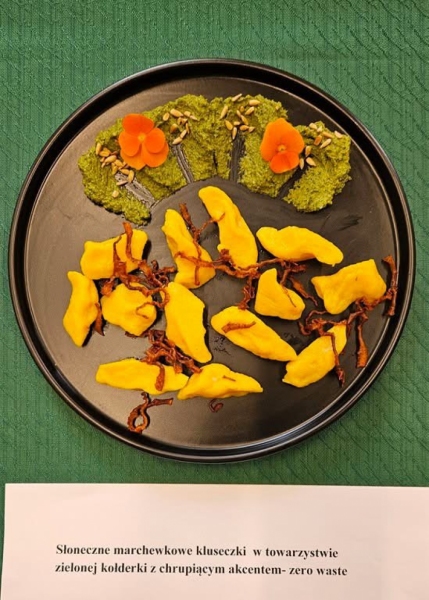 Nasze konkursowe przygotowanie do: „Słoneczne marchewkowe kluseczki w działaniu zielone koładerki z chrupiącym akcentem-zero waste”. Nasz został wyróżniony przez jury! Ogromna radość i potężna konsekwencja do dalszych działań!