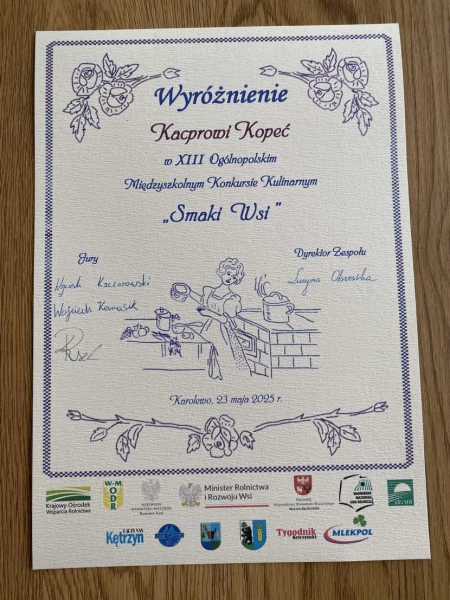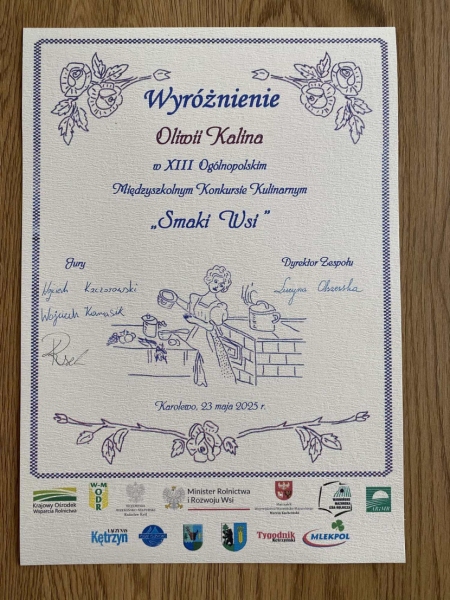 W piątek 23.05.2025 roku przeżyliśmy wskazówkę kulinarną i nie tylko! Wzięliśmy udział w XIII edycji konkursu „Smaki Wsi” w ZSCKR w Karolewie, a motywem przewodnim było super ważne „Zero Waste”!