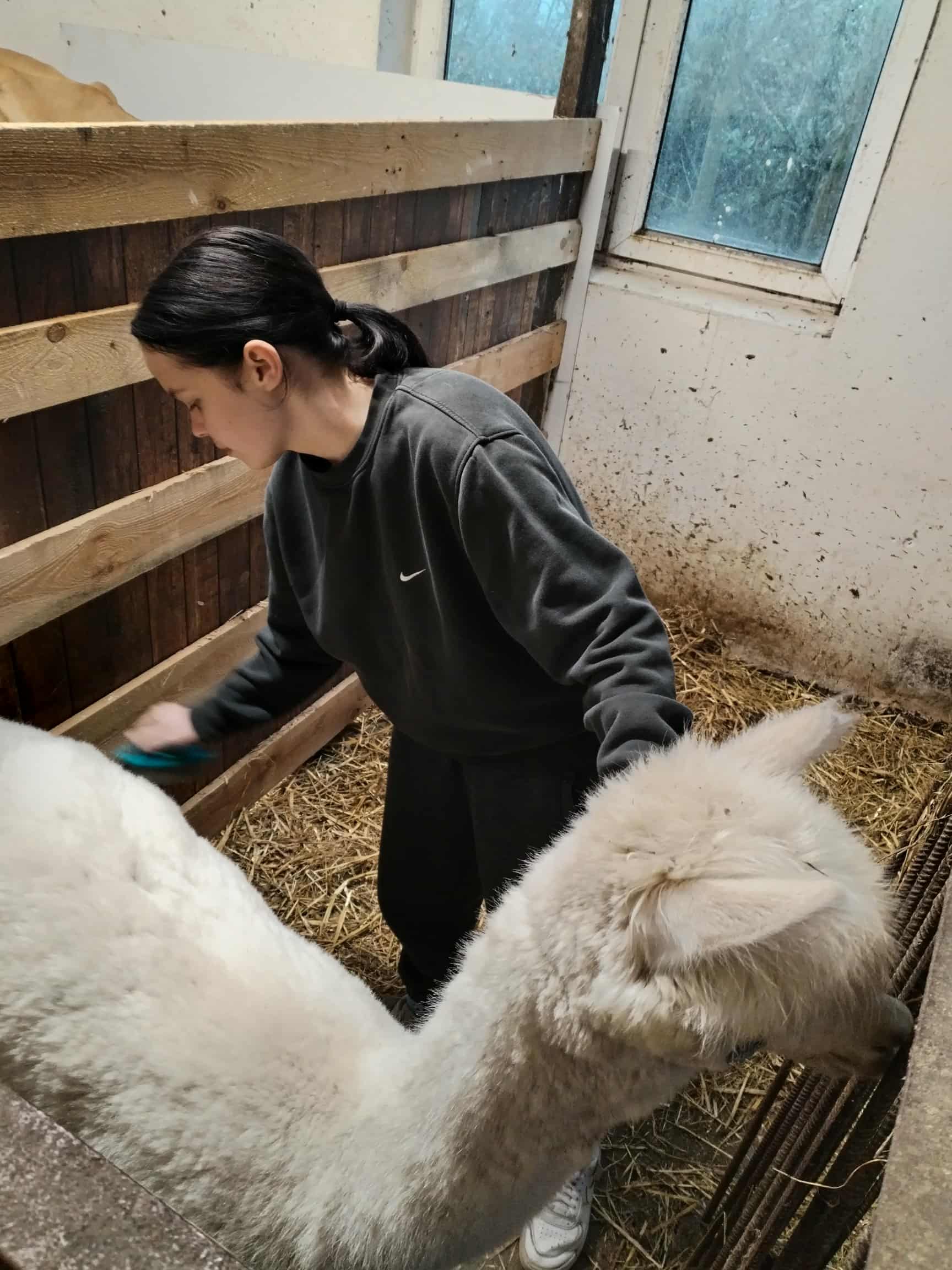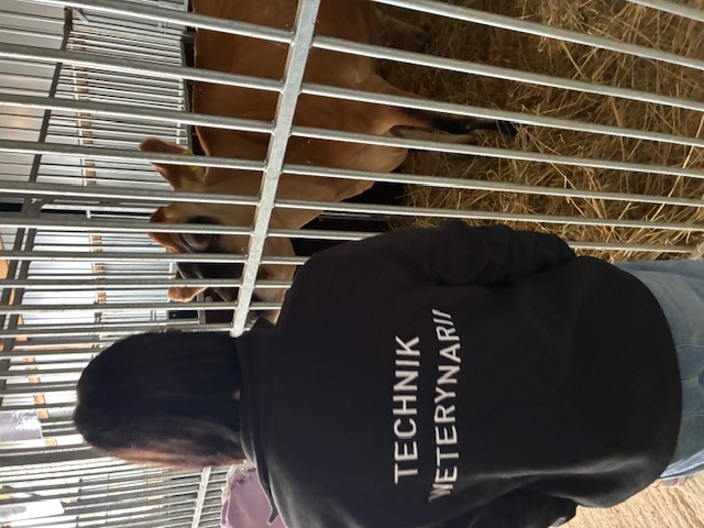 Na „Agro Stajni" nie mogło zabraknąć także uczniów kierunku technik weterynarii. Uczennica klasy III przygotowała kilka swoich zwierząt, by zaprezentować je obok innych hodowców. Wśród prezentowanych okazów znalazły się krowy ras mięsnych i mlecznych, małe przeżuwacze (owce i kozy), króliki rasowe, a największą atrakcją okazały się alpaki należące do naszej uczennicy oraz osiołek z Jodłowej.