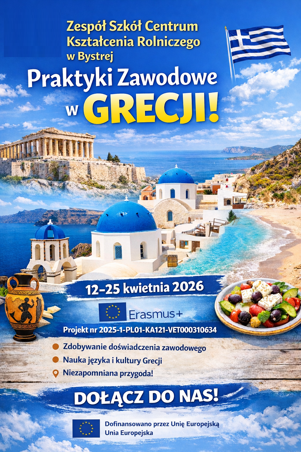 Z przyjemnością informujemy o rozpoczęciu rekrutacji na zagraniczną mobilność w ramach praktyk zawodowych, która odbędzie się w Grecji w terminie 12.04.–25.04.2026 r.