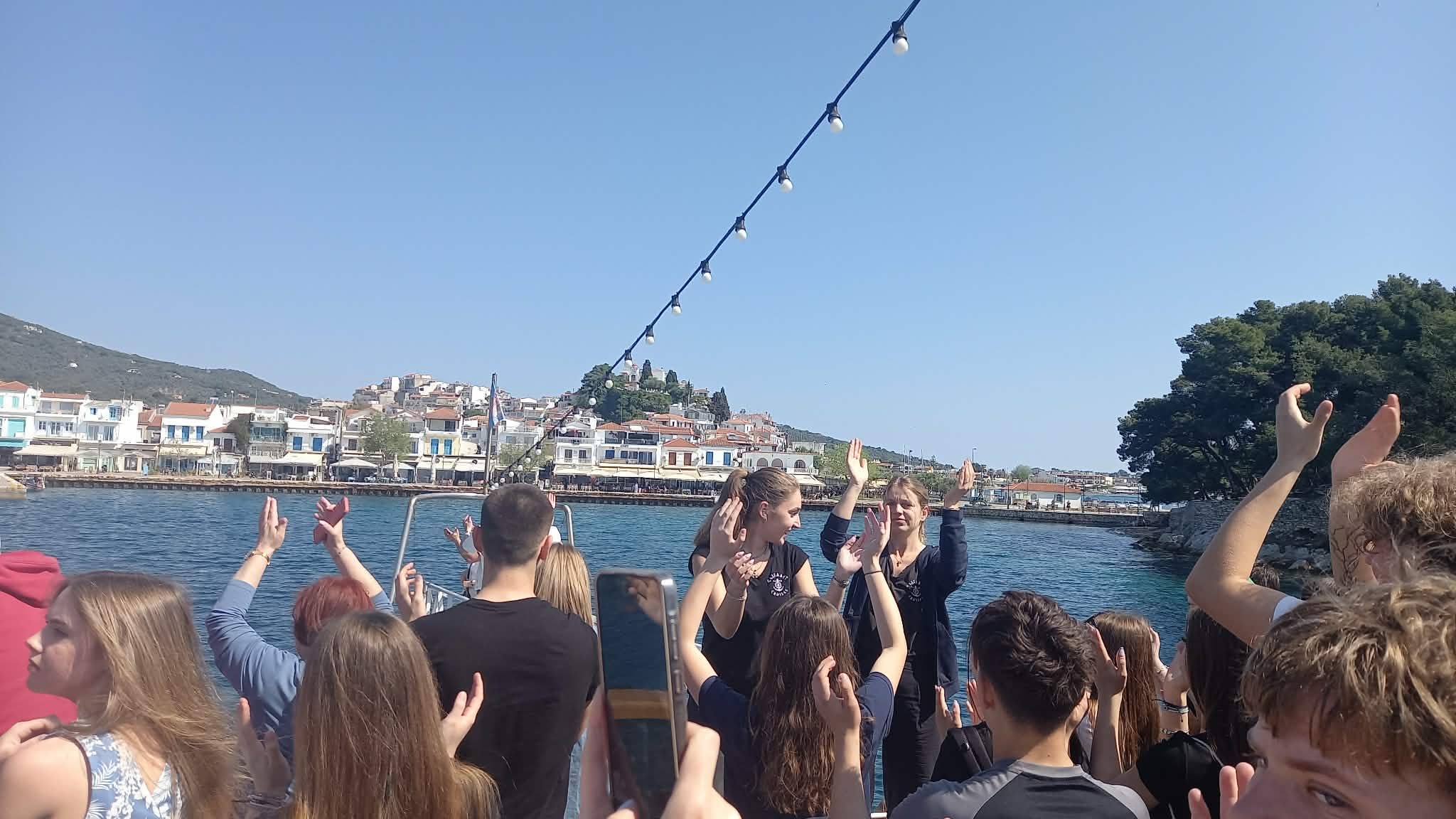 W drodze powrotnej czekało na nas jeszcze więcej atrakcji – na pokładzie statku mogliśmy się lepiej zintegrować, potańczyć, pośpiewać i poczuć rytmy greckiej muzyki. Niektórzy mieli nawet szczęście dostrzec delfiny! 🐬