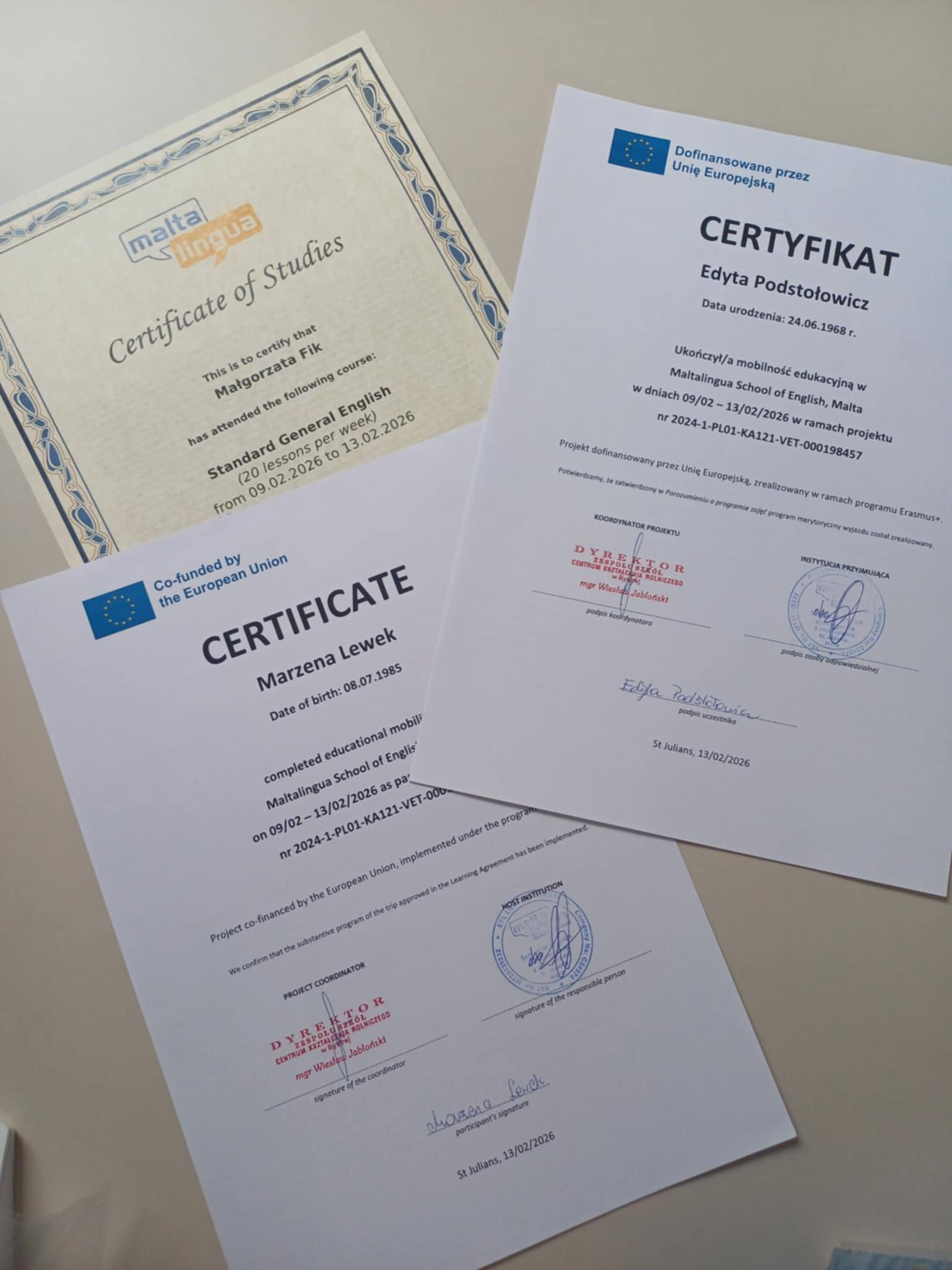 Celem mobilności było: podniesienie kompetencji językowych kadry pedagogicznej, rozwijanie umiejętności komunikacji w środowisku międzynarodowym, wymiana doświadczeń z nauczycielami z innych krajów. Udział w kursie to nie tylko nauka języka, ale również poznanie kultury, historii i systemu edukacji Malty. Zdobyte umiejętności i doświadczenia będą wykorzystywane w codziennej pracy z uczniami, podnosząc jakość kształcenia w naszej szkole. Mobilność kadry w ramach programu Erasmus+ przyczynią się do umiędzynarodowienia szkoły oraz wzmacniają jej potencjał edukacyjny. Dziękujemu uczestnikom za zaangażowanie i życzymy dalszych sukcesów w rozwijaniu kompetencji językowych !