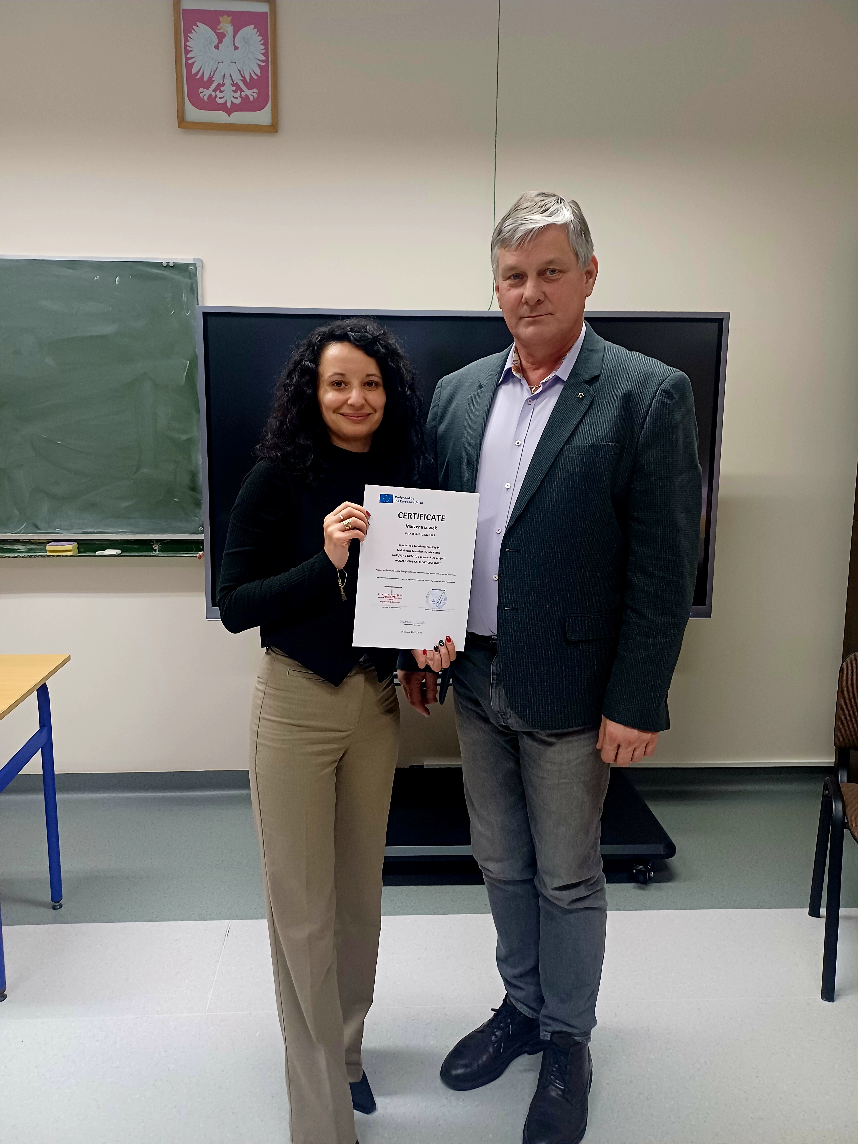 Podczas spotkania uczestnikom mobilności zostały również wręczone certyfikaty potwierdzające udział w programie Erasmus+ oraz zdobycie nowych kompetencji językowych.