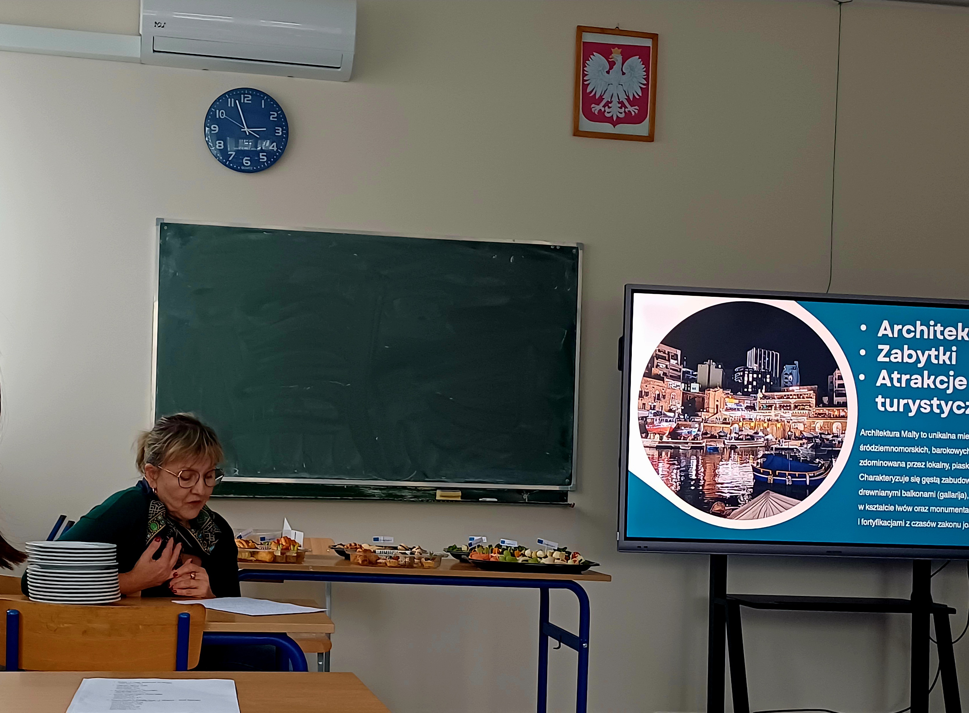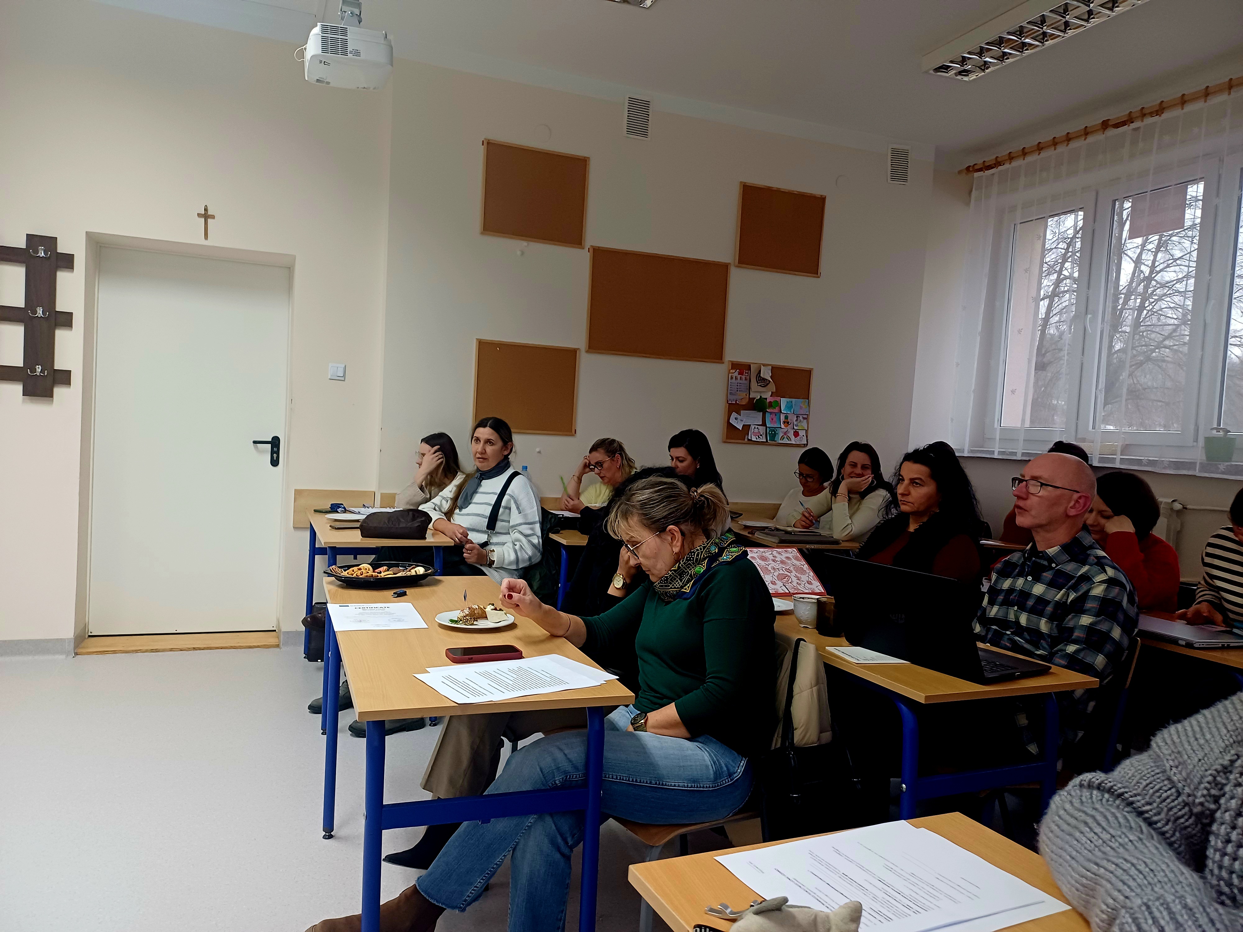 Podczas spotkania uczestnicy mobilności przedstawili przebieg kursu, zaprezentowali metody nauki języka wykorzystywane podczas zajęć oraz omówili materiały dydaktyczne stosowane w trakcie szkolenia. Nauczyciele podzielili się również refleksjami dotyczącymi rozwijania kompetencji językowych oraz możliwości wykorzystania zdobytych umiejętności w codziennej pracy dydaktycznej.