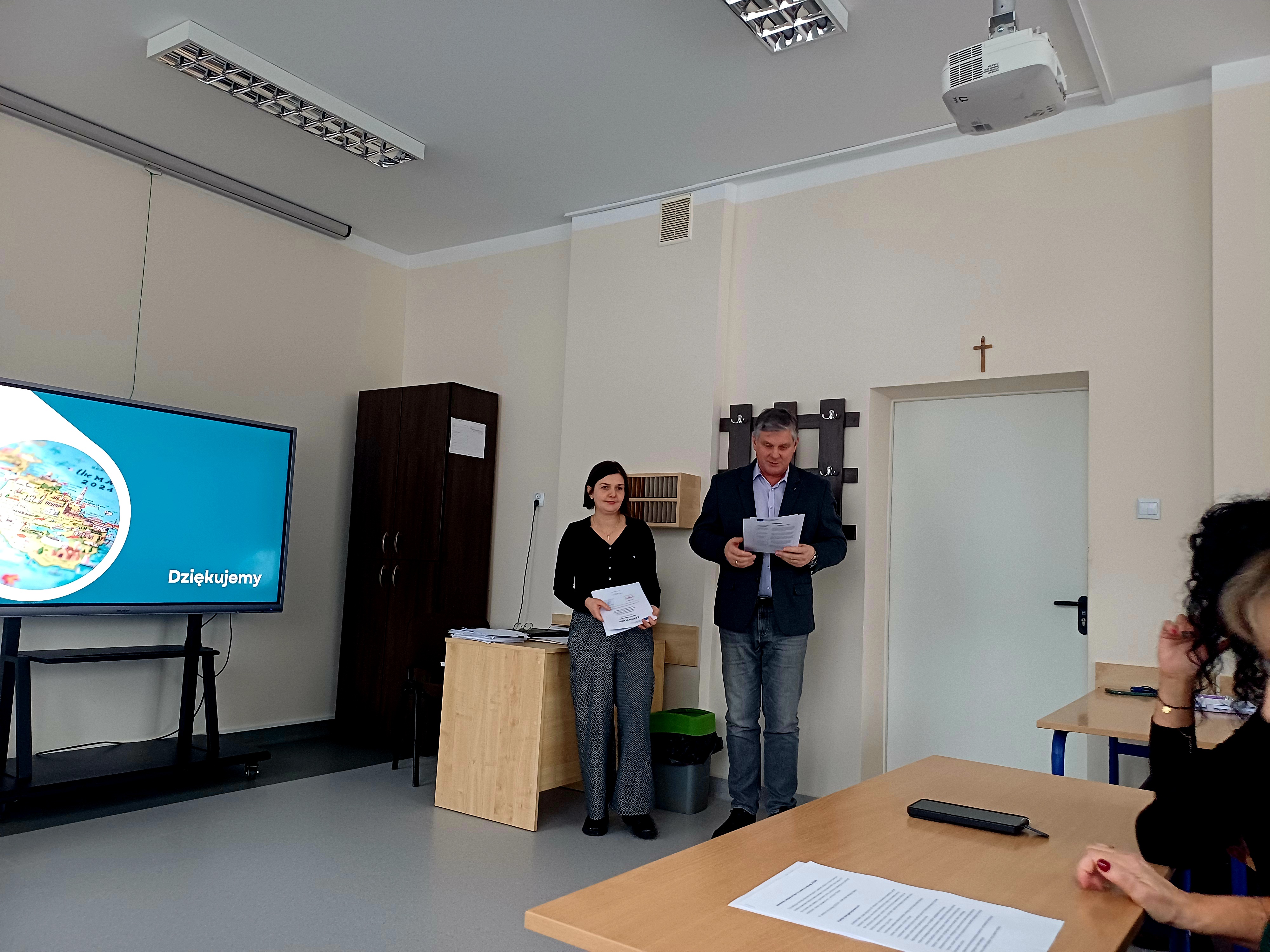 W naszej szkole odbyło się spotkanie podsumowujące mobilność nauczycieli zrealizowaną w ramach programu Erasmus+. Nauczyciele, którzy uczestniczyli w zagranicznym kursie językowym, zaprezentowali kadrze pedagogicznej zdobytą wiedzę oraz doświadczenia związane z udziałem w szkoleniu.