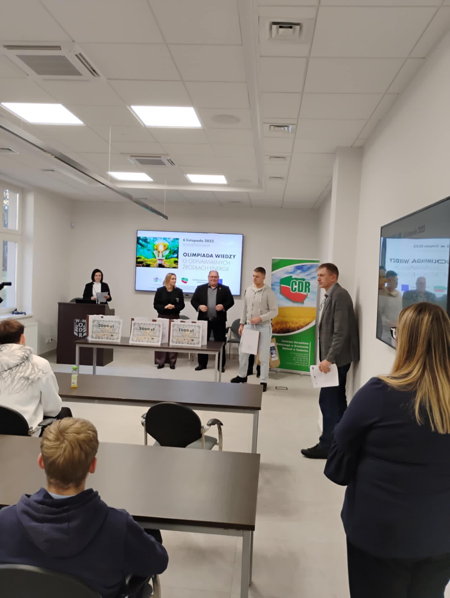 6 listopada br. w Warmińsko-Mazurskim Ośrodku Doradztwa Rolniczego w Olsztynie odbył się Regionalny Finał Olimpiady Wiedzy o Odnawialnych Źródłach Energii pn. „Olimpiada wiedzy o odnawialnych źródłach energii”. W wydarzeniu brali udział najlepsi uczniowie z naszego regionu. Wśród nich m.in.: trzech reprezentantów naszej szkoły, laureatów szkolnego etapu konkursu: Ignacy Ostojski, Wojciech Dudziński oraz Maciej Brejnak.