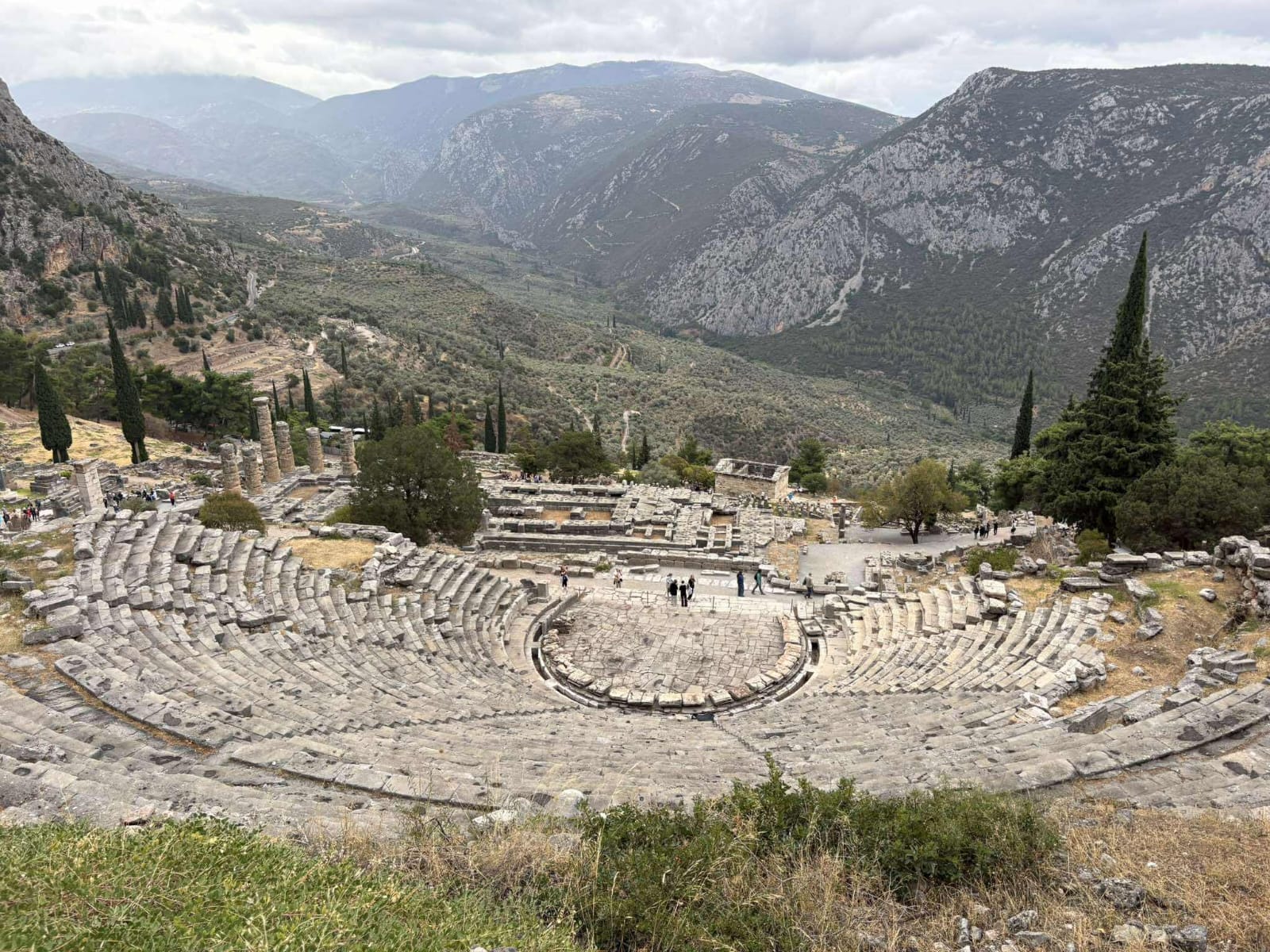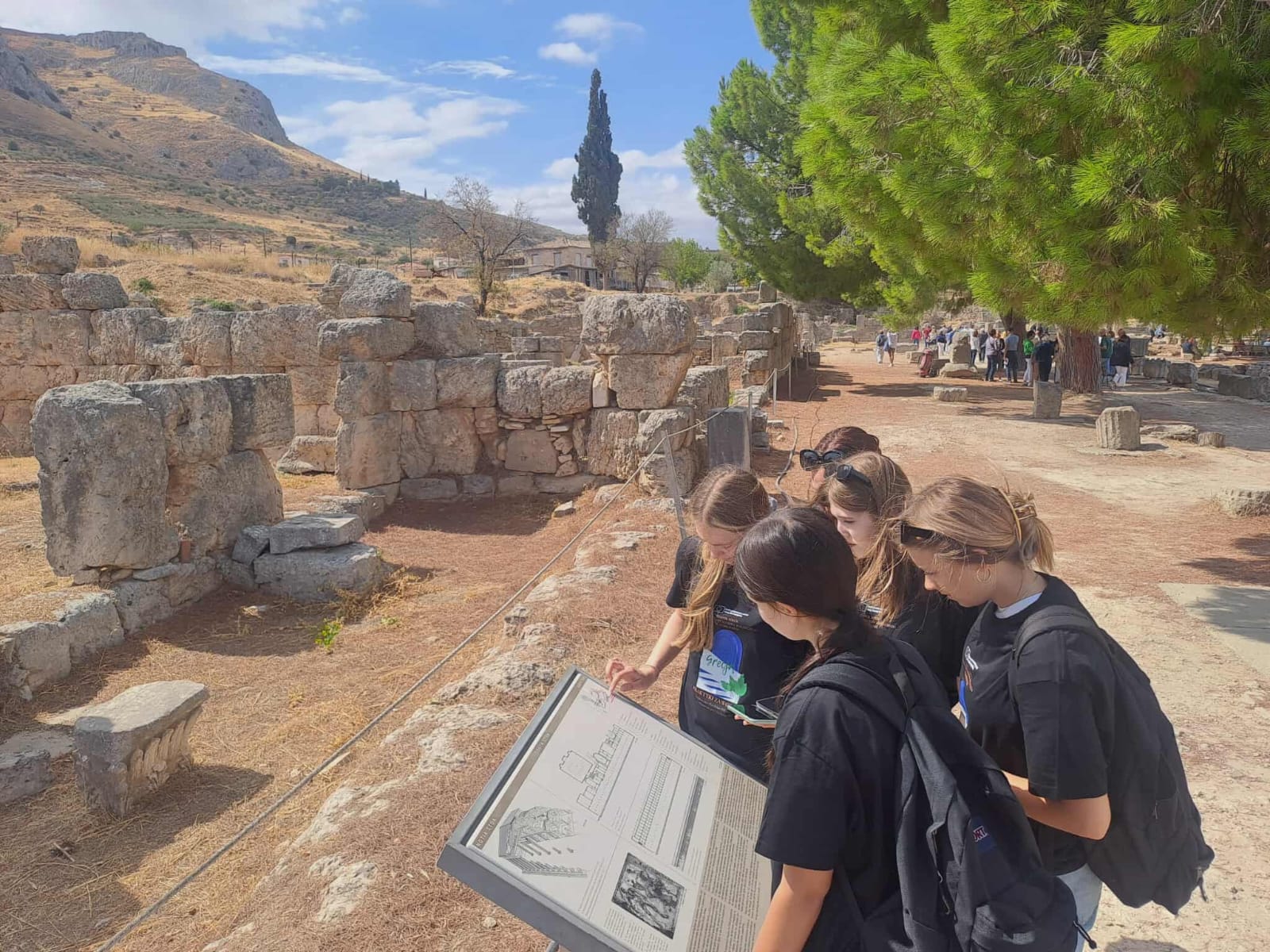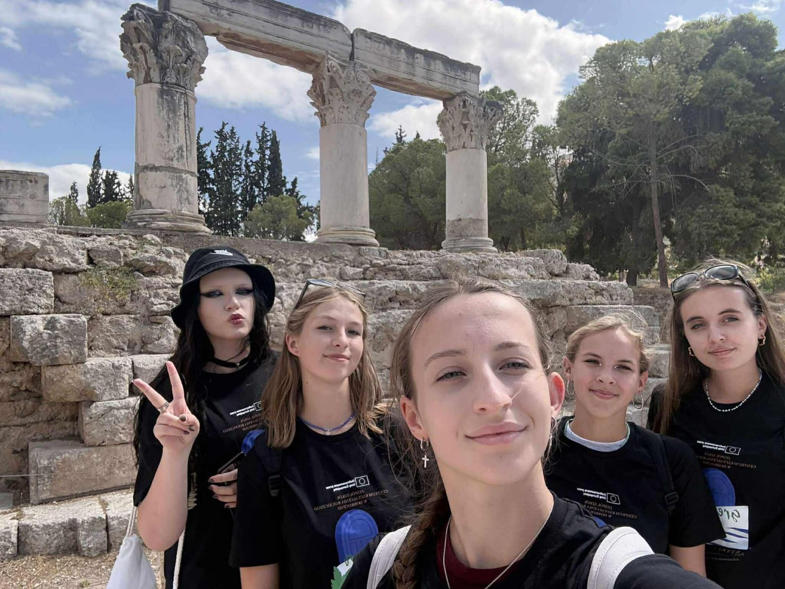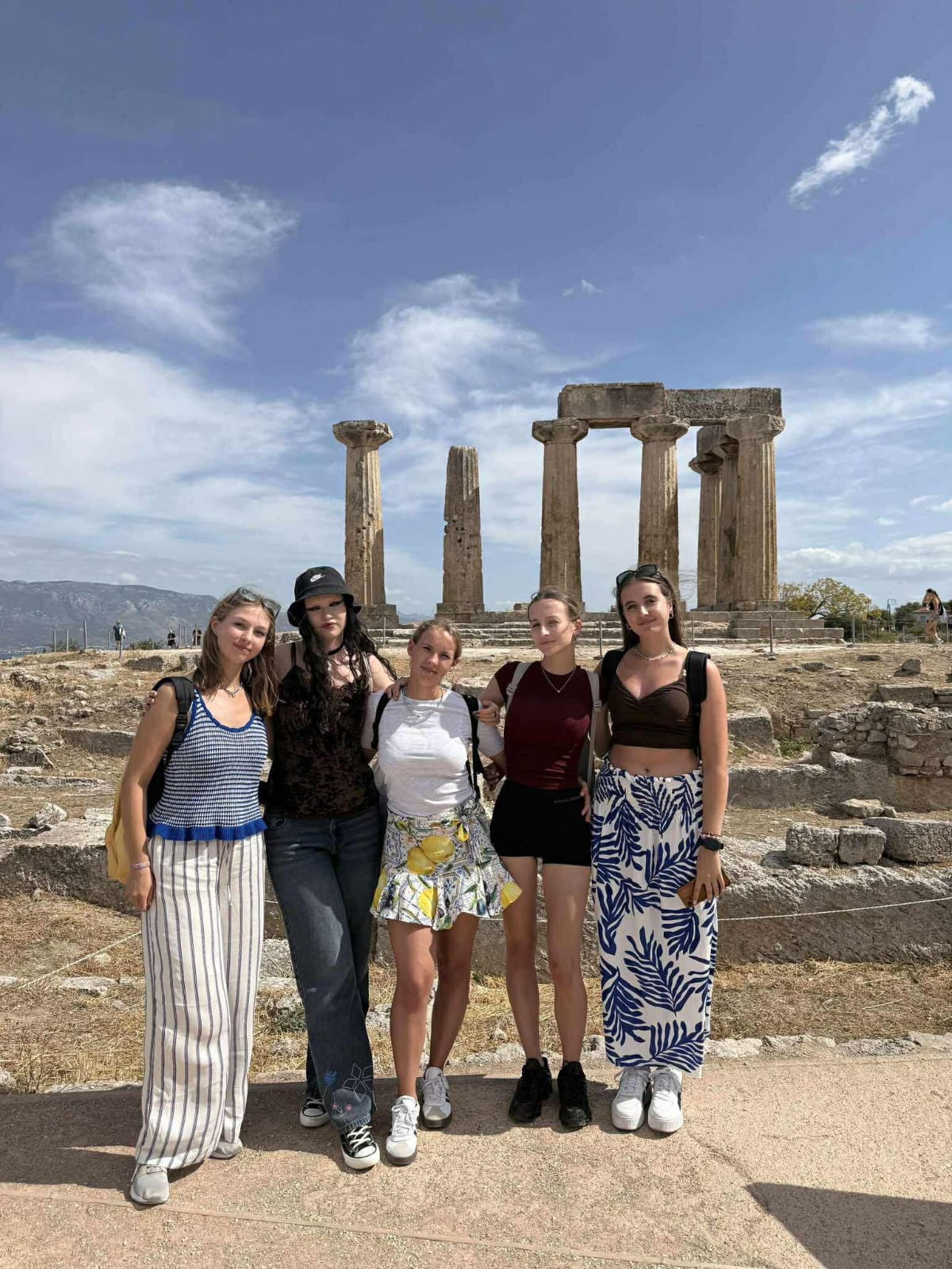 Dzień 6 i 7.Weekend spędziliśmy pod znakiem wycieczek kulturowych. W sobotę wybraliśmy się do parku archeologicznego w Koryncie, gdzie widzieliśmy pozostałości między innymi po świątyniach, rzymskich łaźniach, domach i Agorze. W drodze powrotnej odwiedziliśmy punkt widokowy nad Kanałem Korynckim. W niedzielę w Delfach podziwialiśmy ruiny po antycznym sanktuarium poświęconym Apollinowi, gdzie funkcjonowała wyrocznia delficka. Na koniec intensywnego weekendu wszyscy uczniowie przygotowali filmiki podsumowujące wyprawy archeologiczne śladem mitologicznych bogów.