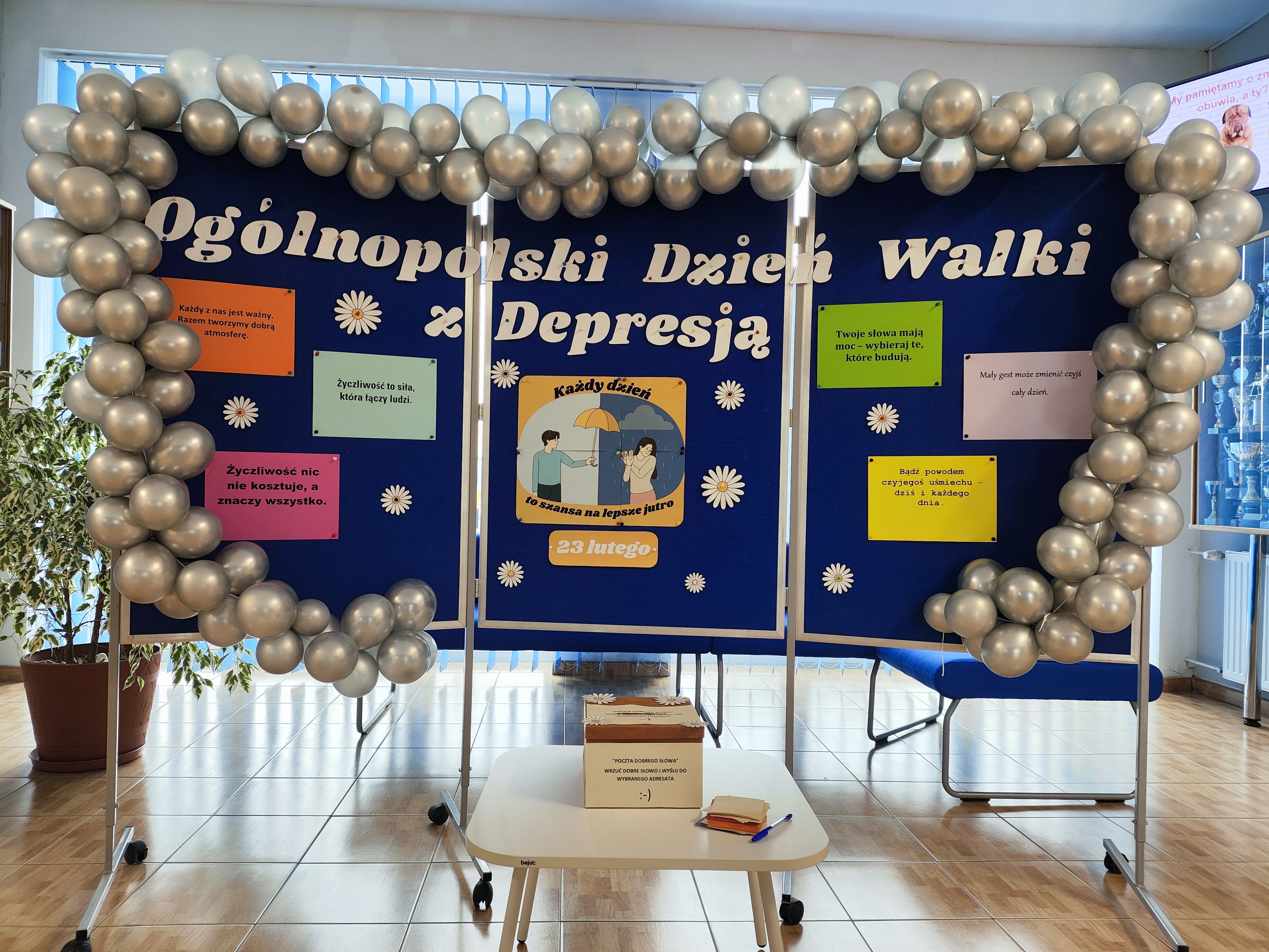 W naszej szkole obchodziliśmy Światowy Dzień Walki z Depresją – dzień szczególny, którego celem jest zwiększanie świadomości na temat zdrowia psychicznego, przełamywanie stereotypów oraz przypominanie, jak ważne jest wzajemne wsparcie i życzliwość wobec innych. Tegoroczne szkolne obchody miały pokazać, że nawet drobne gesty mogą mieć ogromne znaczenie. Jednym z symbolicznych elementów tego dnia było ubranie się na kolorowo przez uczniów, nauczycieli oraz pracowników szkoły. Barwne stroje stały się wyrazem solidarności z osobami zmagającymi się z trudnościami psychicznymi oraz przypomnieniem, że wspólnie możemy wnosić więcej światła i pozytywnej energii do codzienności. Zainteresowaniem cieszyła się również szkolna Poczta Dobrego Słowa. Uczniowie i pracownicy szkoły mieli możliwość przygotować wiadomości, pełne życzliwości, wsparcia i motywacji, które następnie trafiały do adresatów. Małe karteczki z miłymi słowami, podziękowaniami czy wyrazami sympatii przypomniały nam wszystkim, że czasem jedno zdanie potrafi poprawić komuś dzień, a nawet dodać sił w trudnym momencie. Dziękujemy całej społeczności szkolnej za zaangażowanie, otwartość i stworzenie atmosfery pełnej życzliwości. Mamy nadzieję, że przesłanie tego dnia pozostanie z nami na długo – nie tylko od święta, ale każdego dnia. Pamiętajmy: dobre słowo nic nie kosztuje, a może zmienić bardzo wiele.