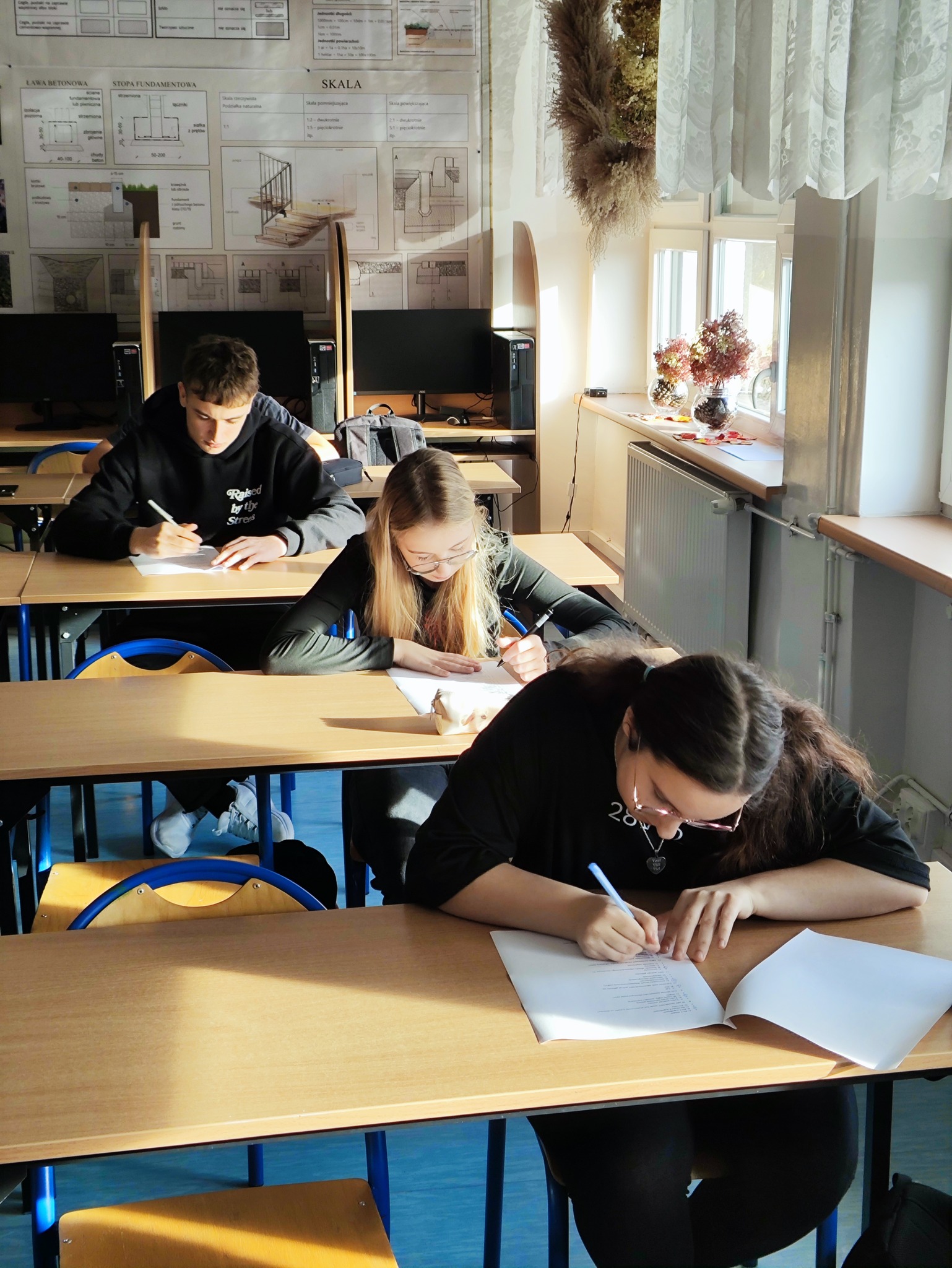 Uczniowie rozwiązywali test wiedzy obejmujący m.in.: