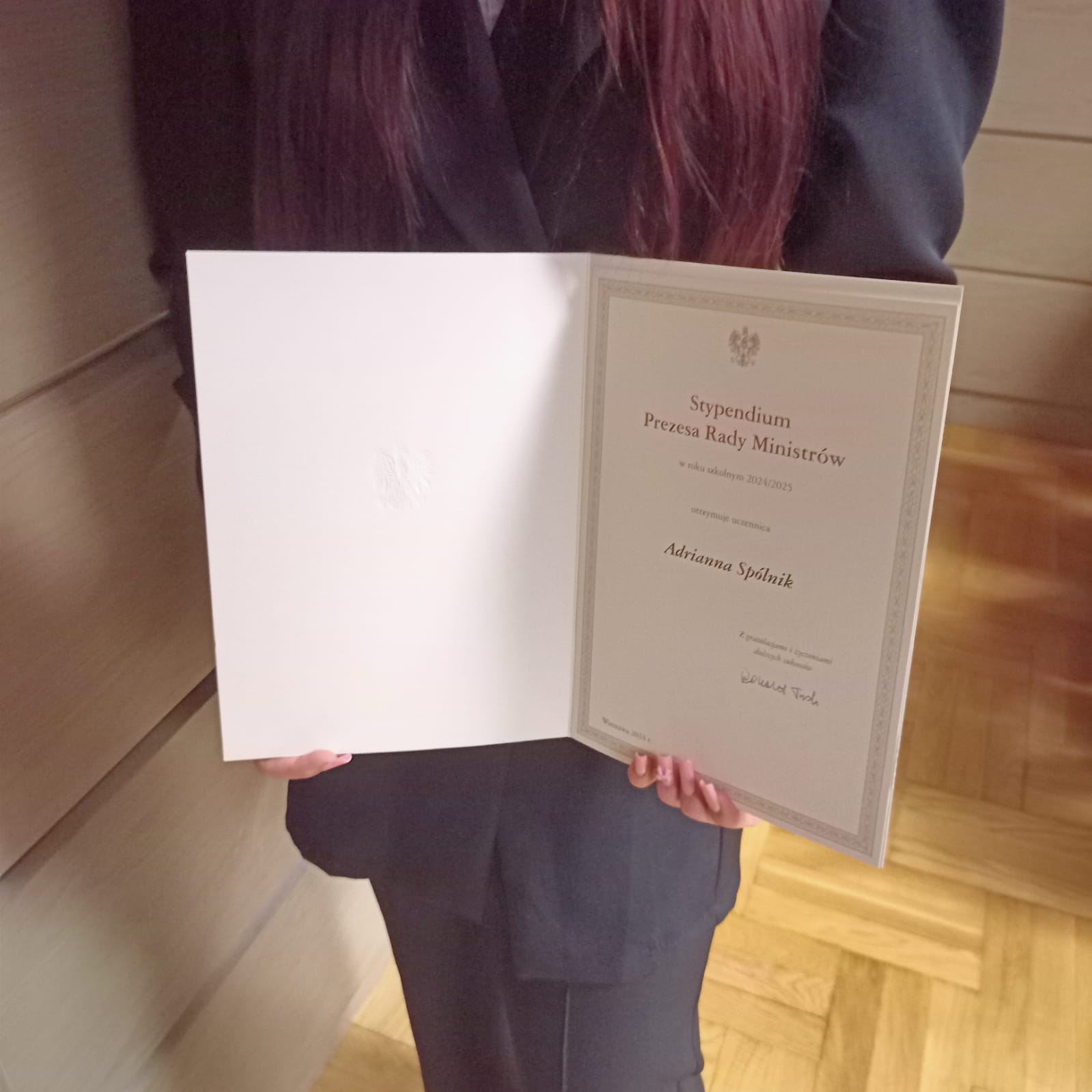 ADRIANNA SPÓLNIK STYPENDYSTKĄ PREZESA RADY MINISTRÓW