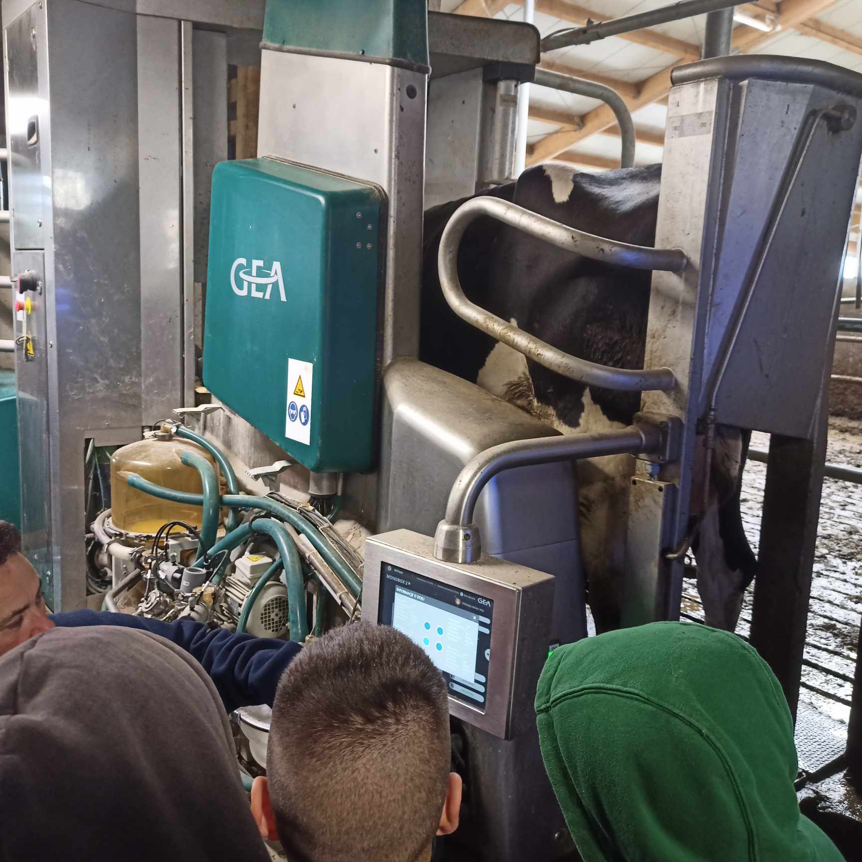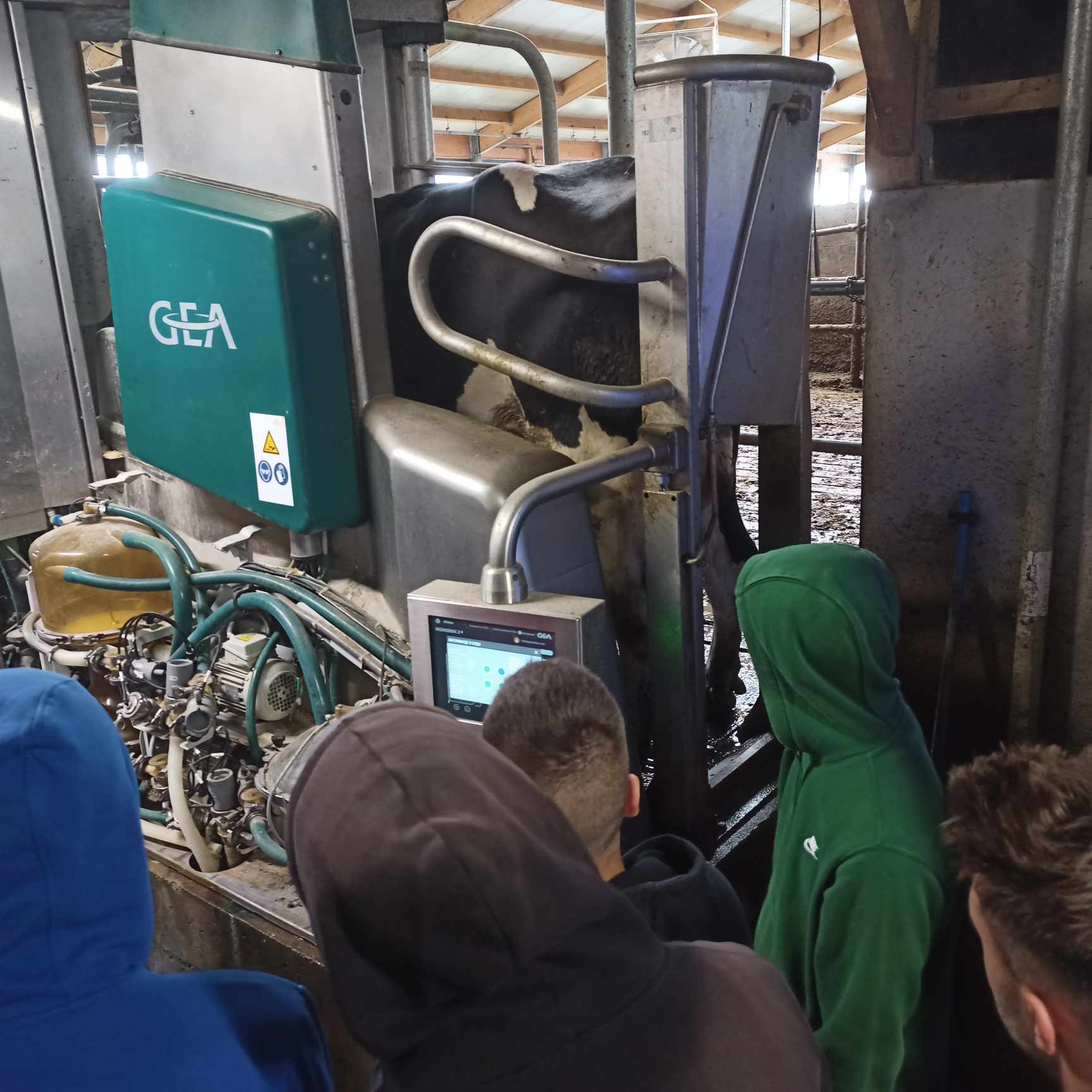 Eksploatacja systemów mechatronicznych w produkcji zwierzęcej to temat zajęć praktycznych wyjazdowych klasy V technikum mechanizacji rolnictwa i agrotroniki w dniu 16 października. Dzięki uprzejmości Pana Franciszka Grybosia właściciela gospodarstwa rolnego w Kwiatonowicach specjalizującego się w produkcji mleka, mogliśmy podczas zajęć zobaczyć w pracy roboty udojowe, robota sprzątającego oraz zgłębić tajniki programu do zarządzania stadem. Szczególne podziękowania dla Pani Katarzyny Słowik za merytoryczne przeprowadzenie zajęć.