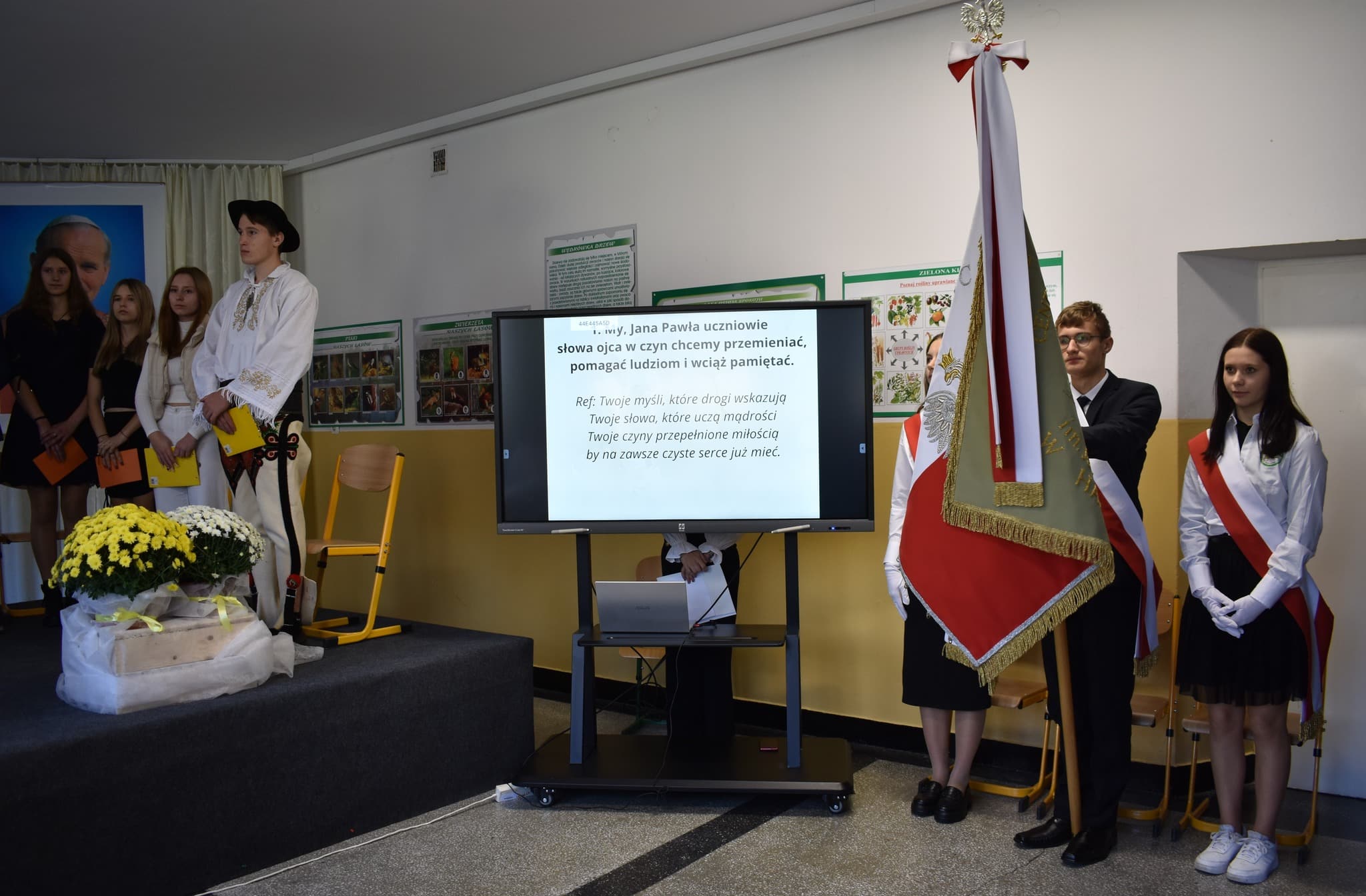 To zaszczyt dla naszej szkoły mieć za patrona największego z Polaków. Jest to też wielkie wyzwanie, by w swoim życiu kierować się wartościami, którym służył i które niezmordowanie głosił nasz wielki Rodak.