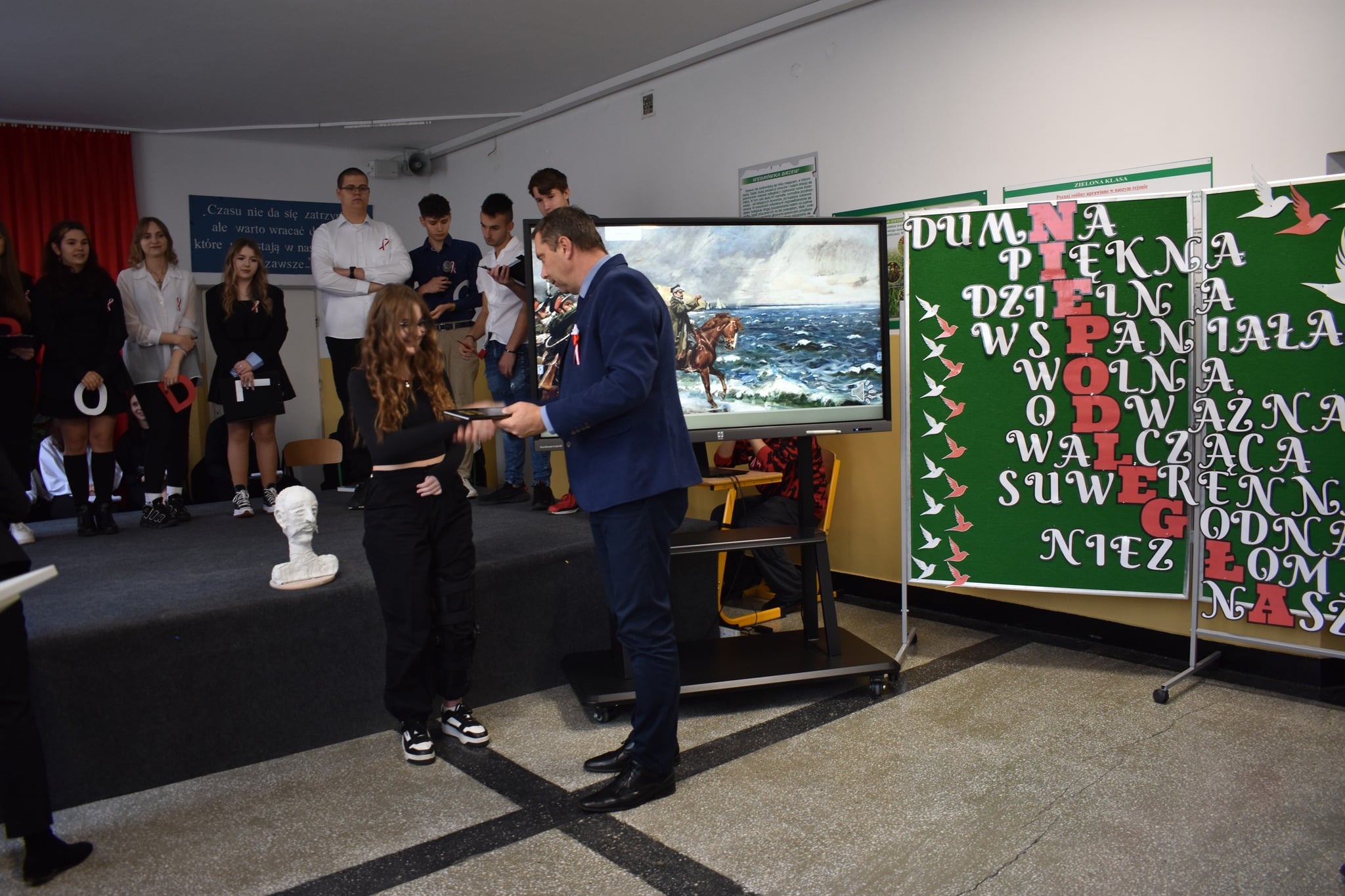 W trakcie akademii Pan Dyrektor wręczył również nagrody zwycięzcom konkursu plastycznego "Twórcy Niepodległości".