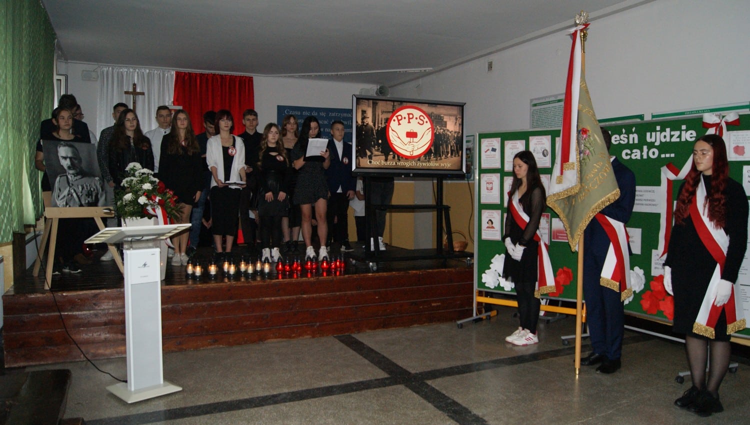 UROCZYSTA AKADEMIA, BIEG NIEPODLEGŁOŚCI ORAZ WSPÓLNIE ZAŚPIEWANY " MAZUREK DĄBROWSKIEGO".